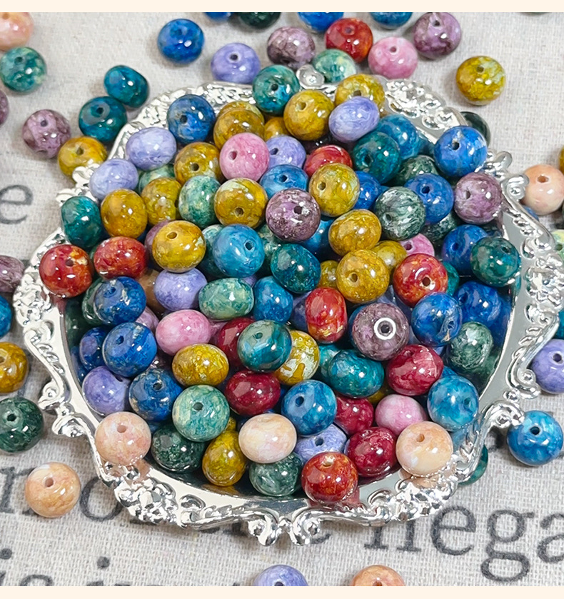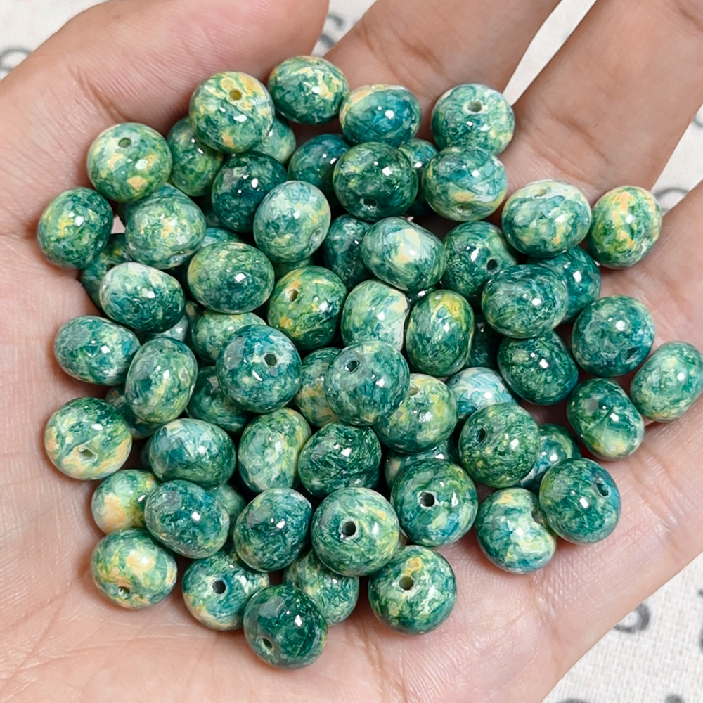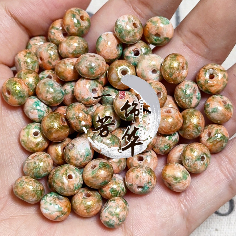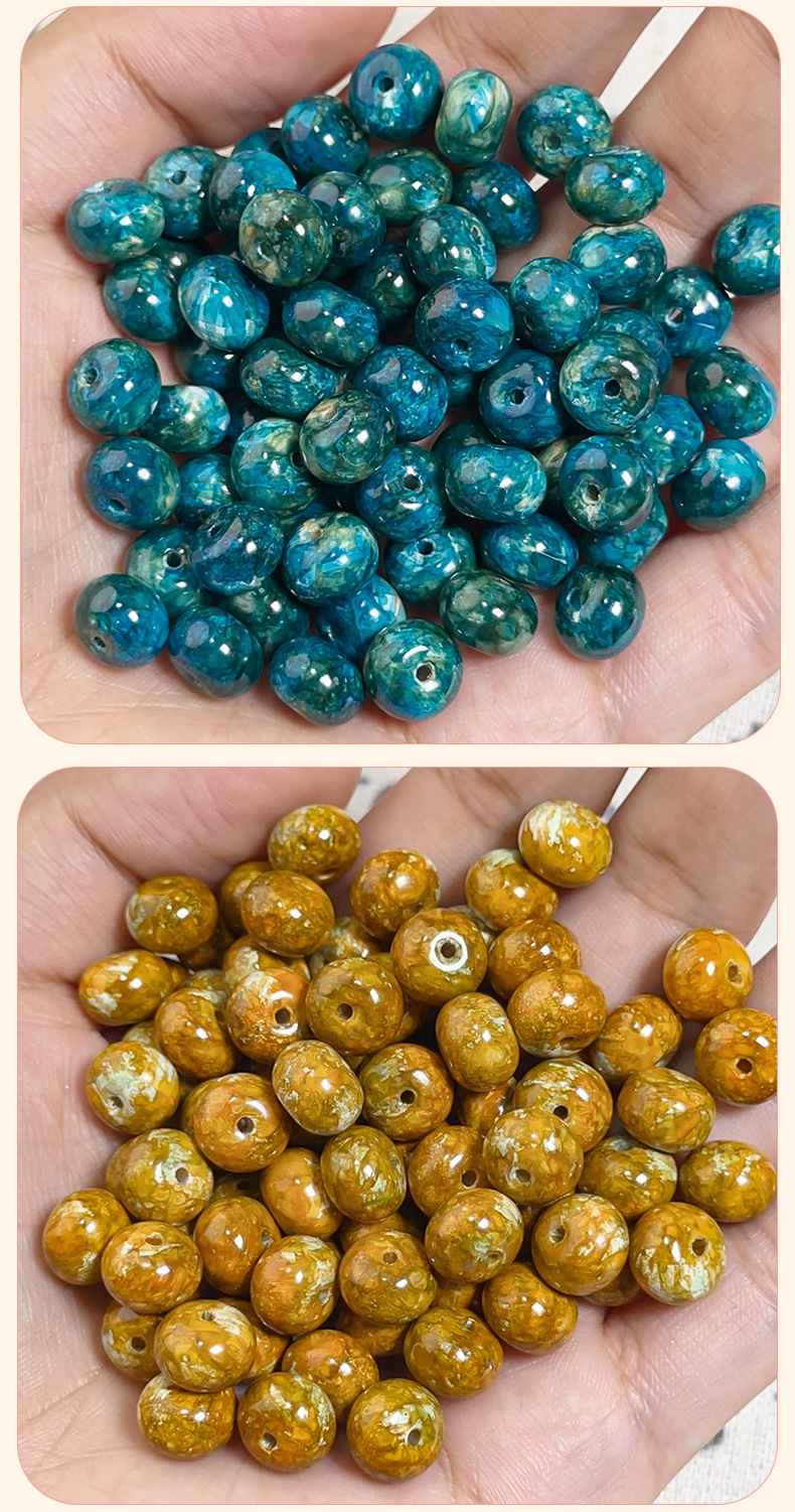 琉璃油画仿陶瓷珠散珠手工串珠diy材料手链项链算盘珠古法宫廷珠