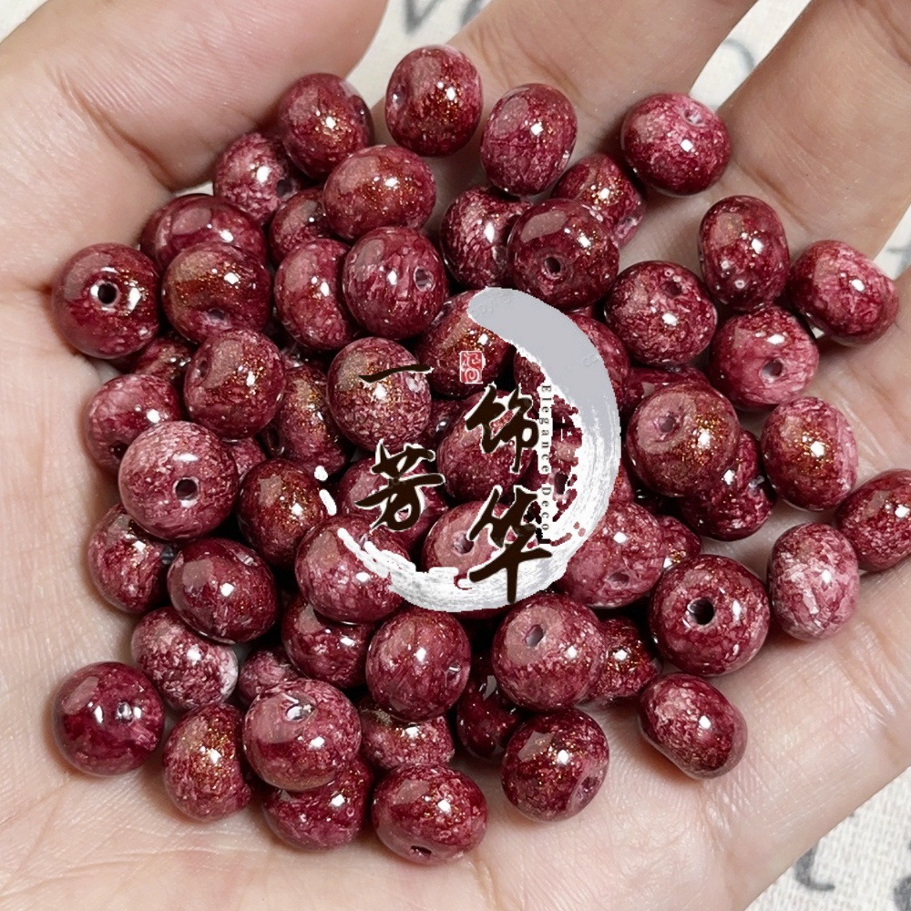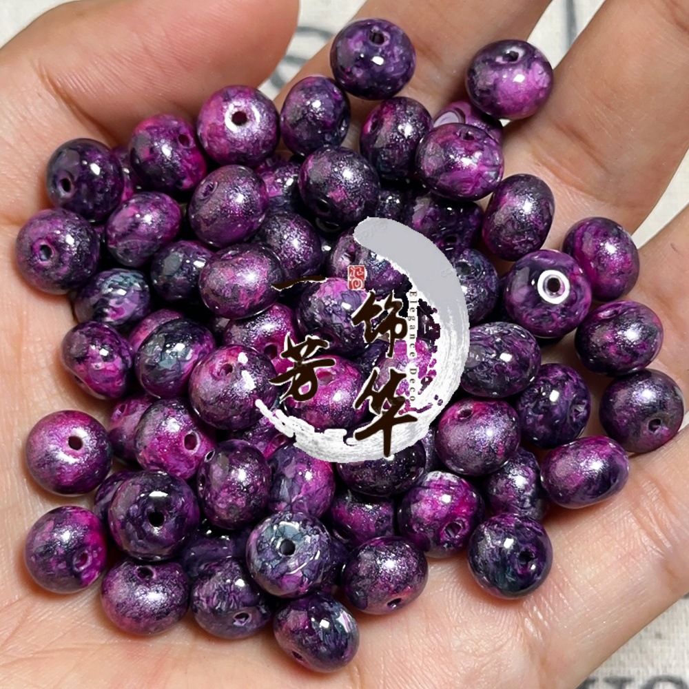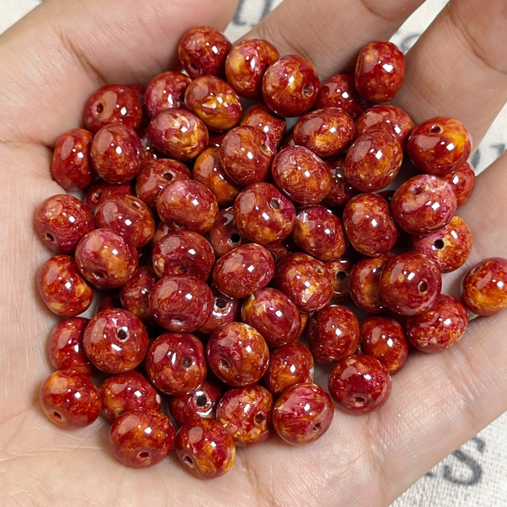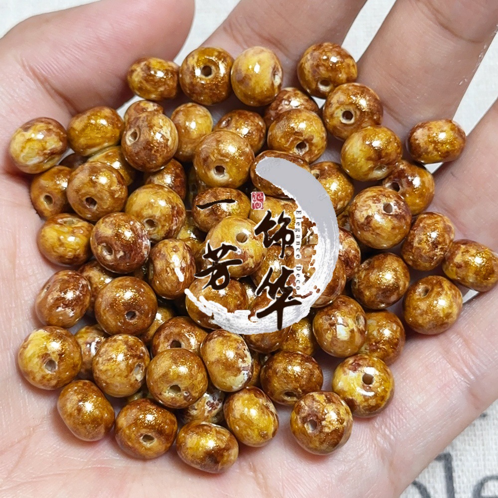 琉璃油画仿陶瓷珠散珠手工串珠diy材料手链项链算盘珠古法宫廷珠