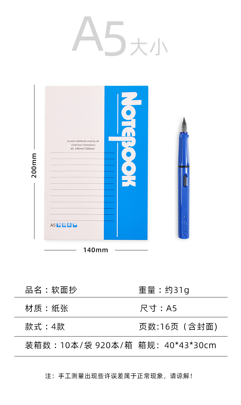 办公用品笔记本A5小学生记事本软面抄本子会议加厚横线日记本批发