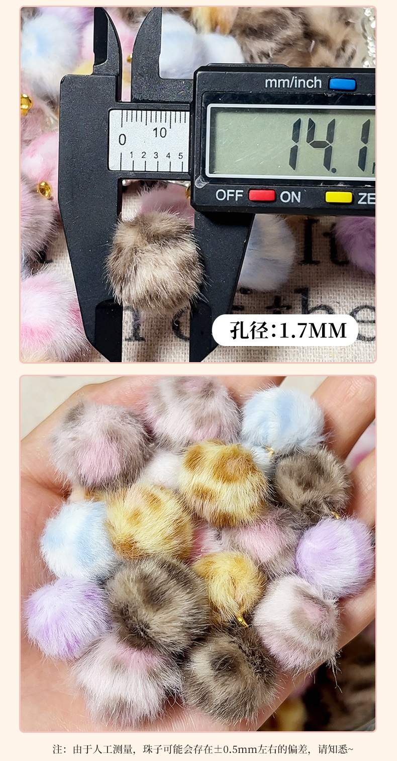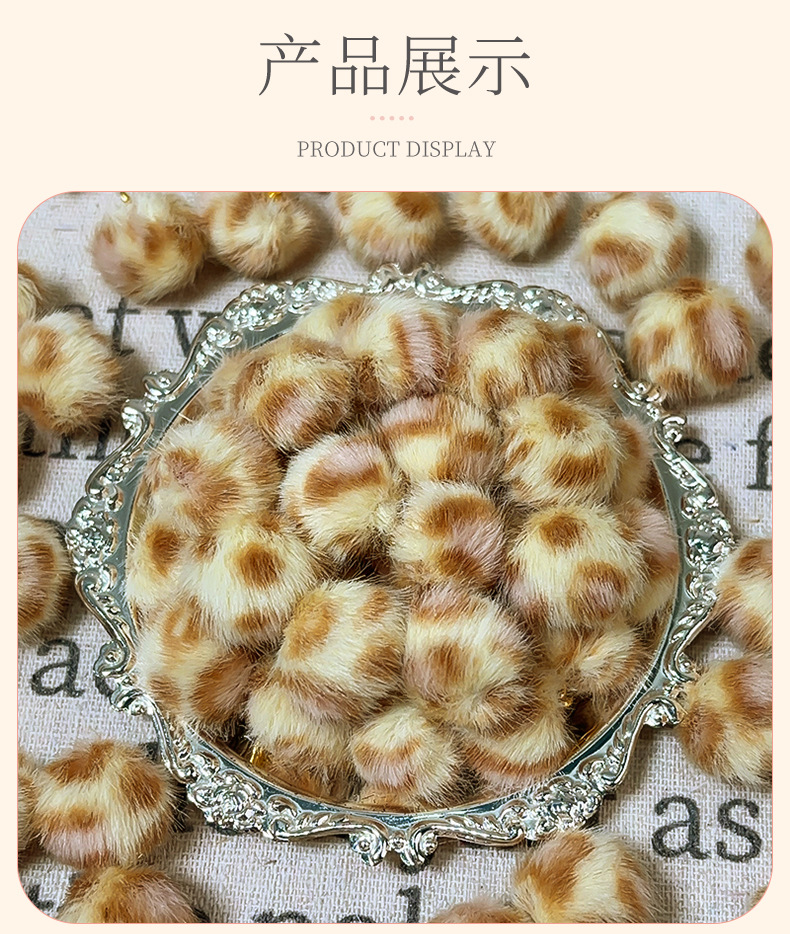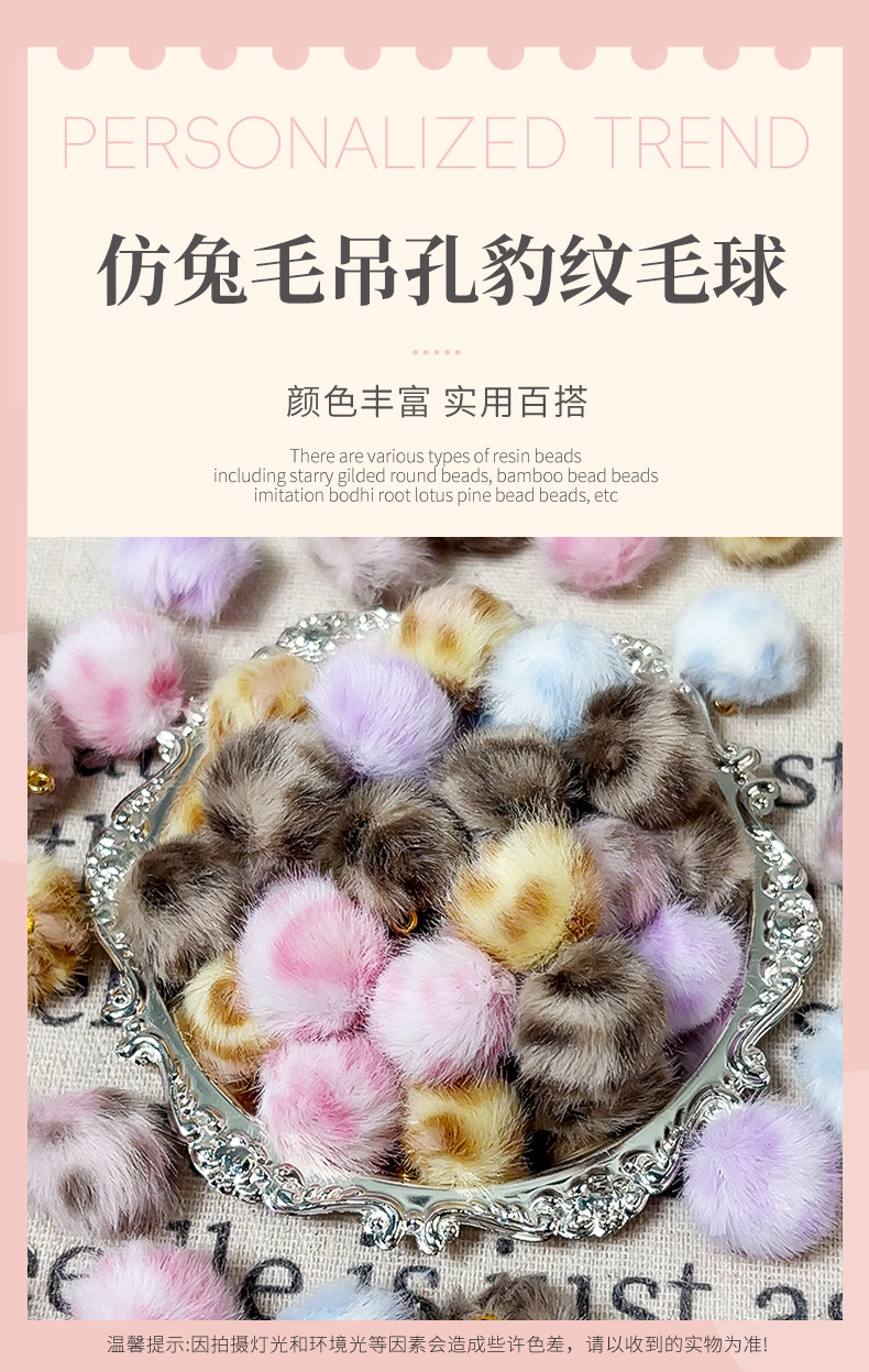 14mm仿真豹纹纯色吊孔毛球柔软头饰配件服装鞋包帽子辅料手工材料