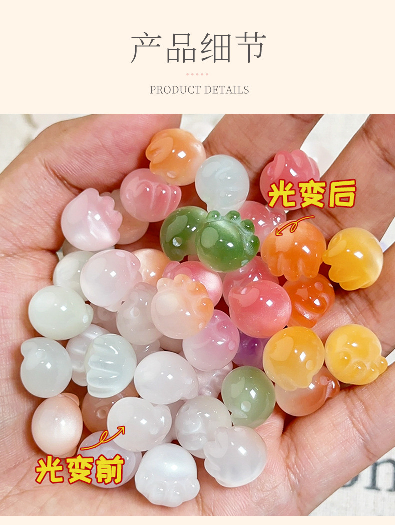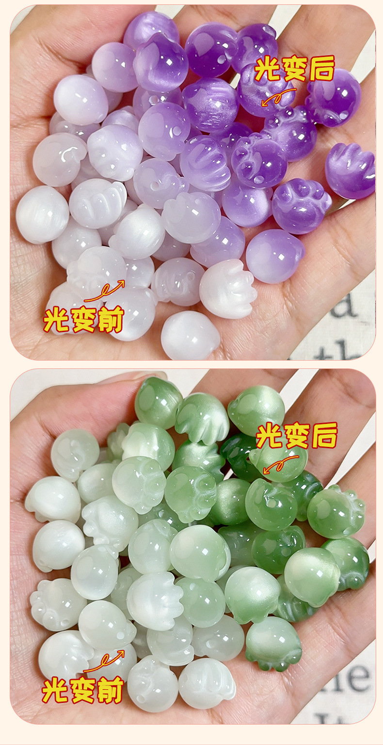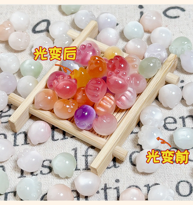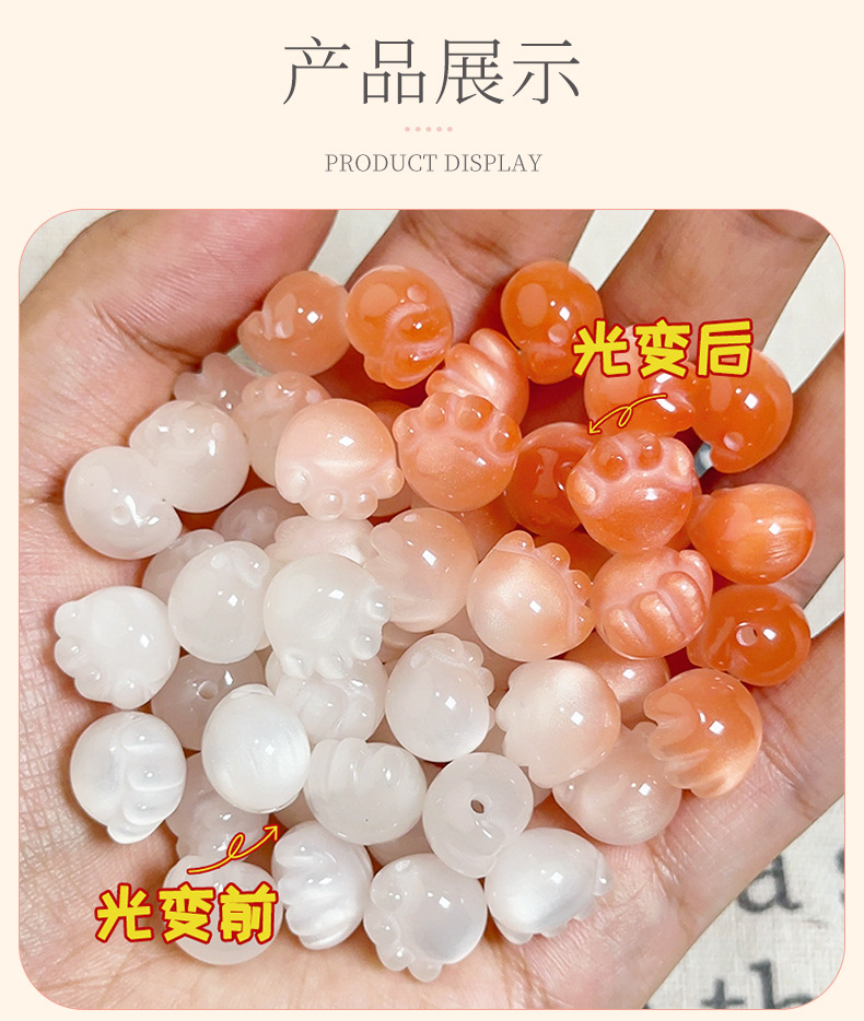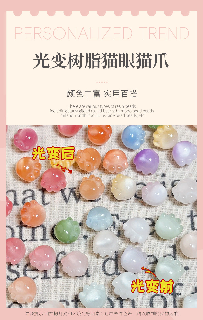 紫外线光变精雕13mm猫爪雕刻吊坠挂件DIY手链配件高透抓米彩虹爪