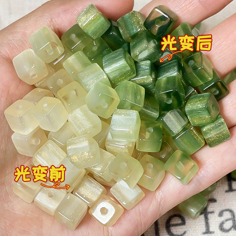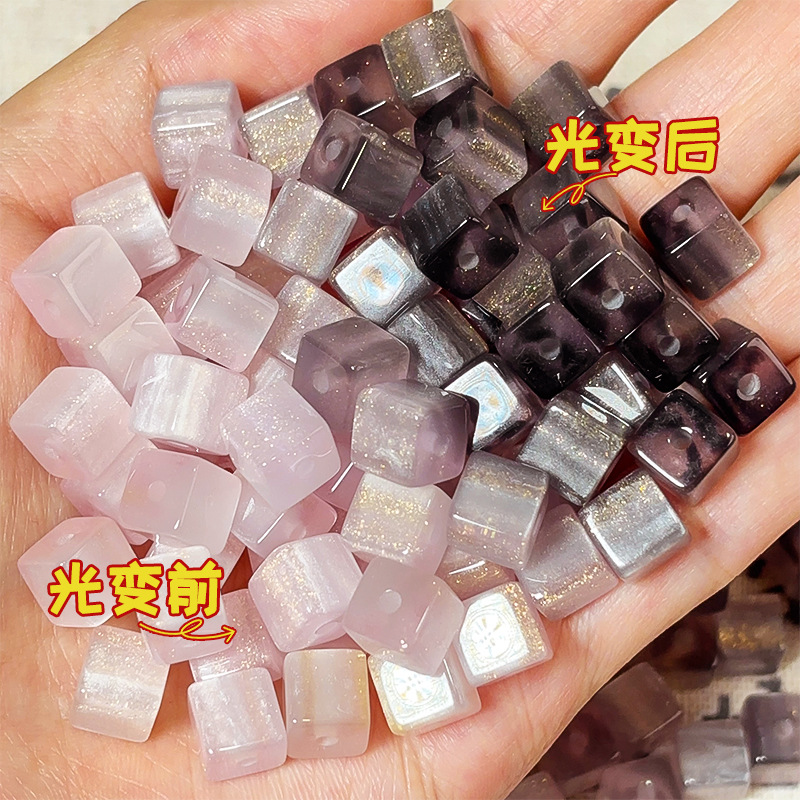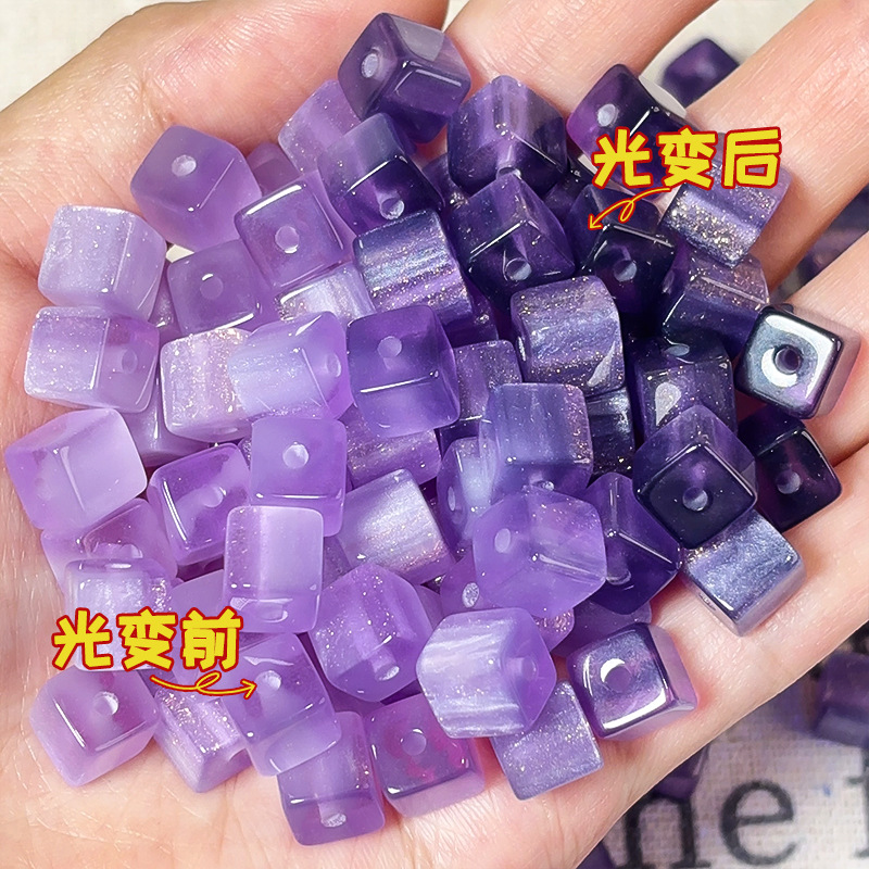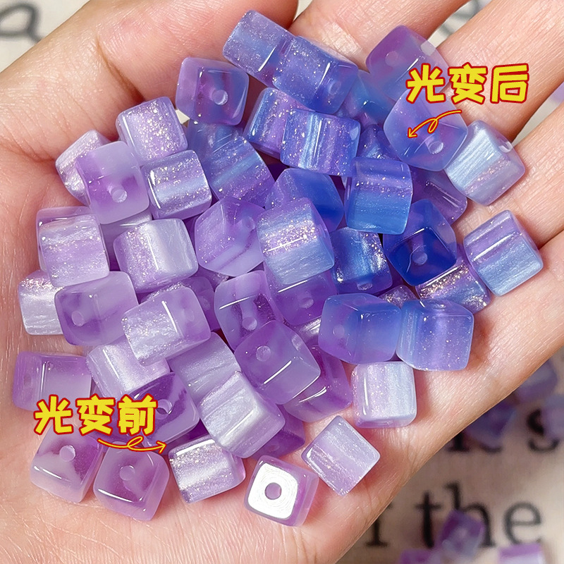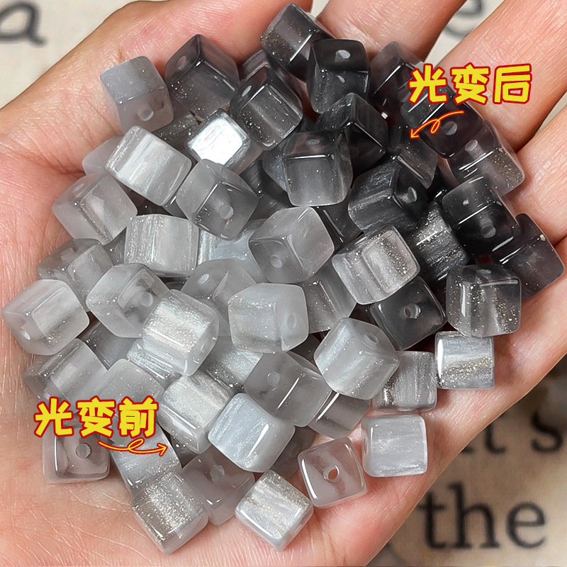 紫外线光变8*8mm树脂方糖手链串珠散珠方形直孔手工diy饰品配件珠
