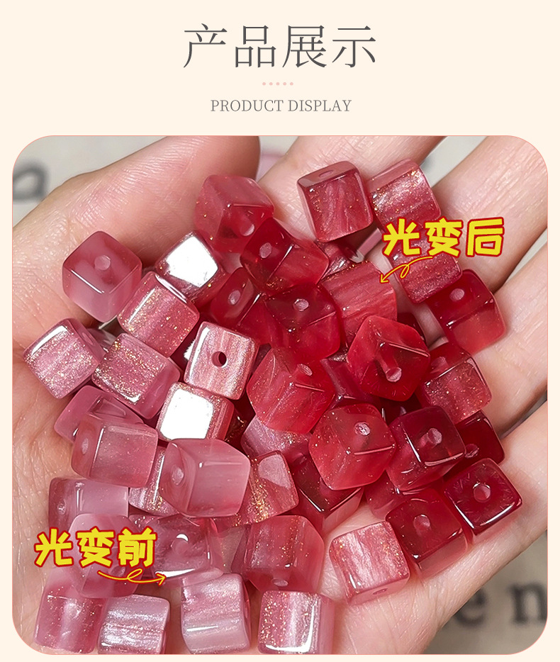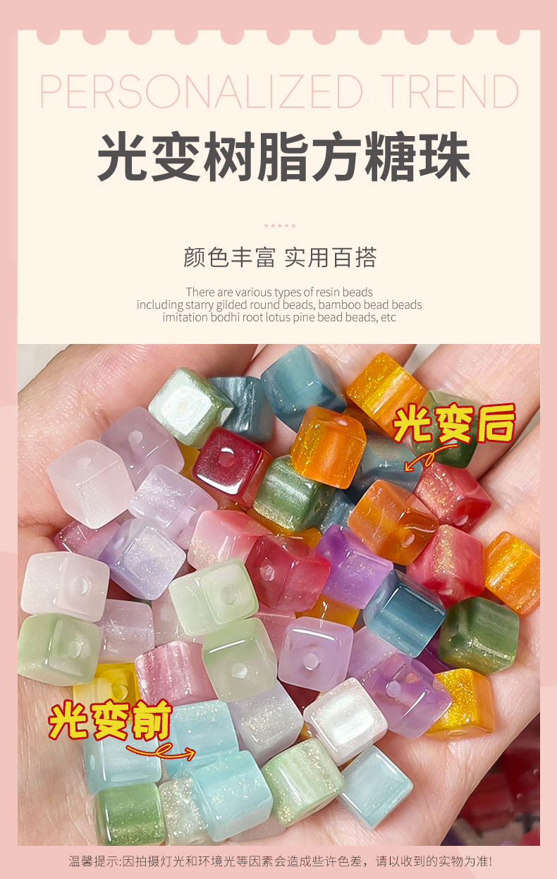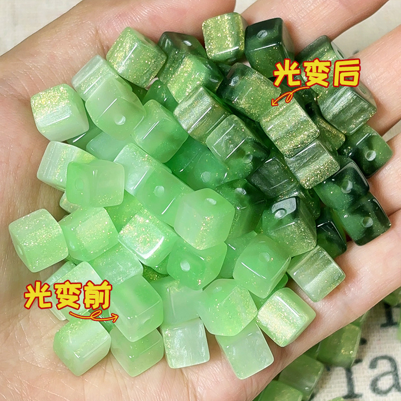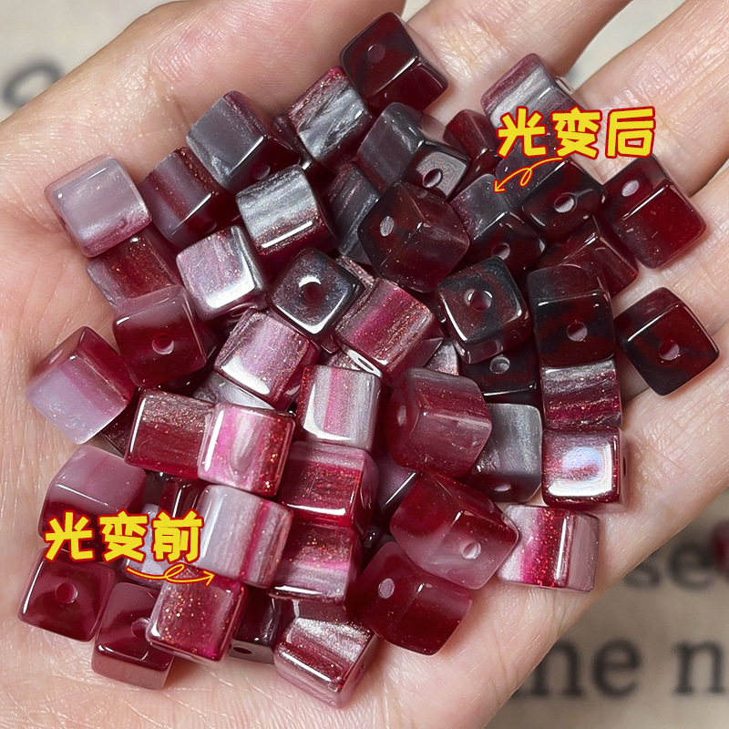 紫外线光变8*8mm树脂方糖手链串珠散珠方形直孔手工diy饰品配件珠