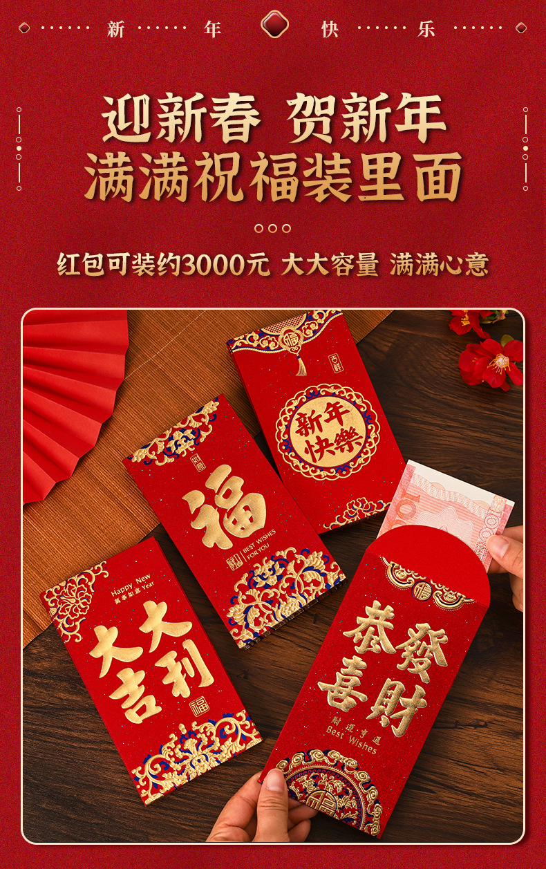金葱磨砂红包加厚硬纸千元大号红包袋高档大吉大利烫金福字利是封