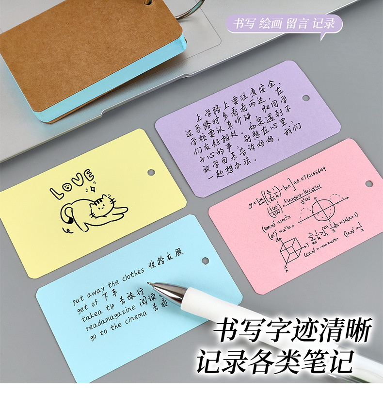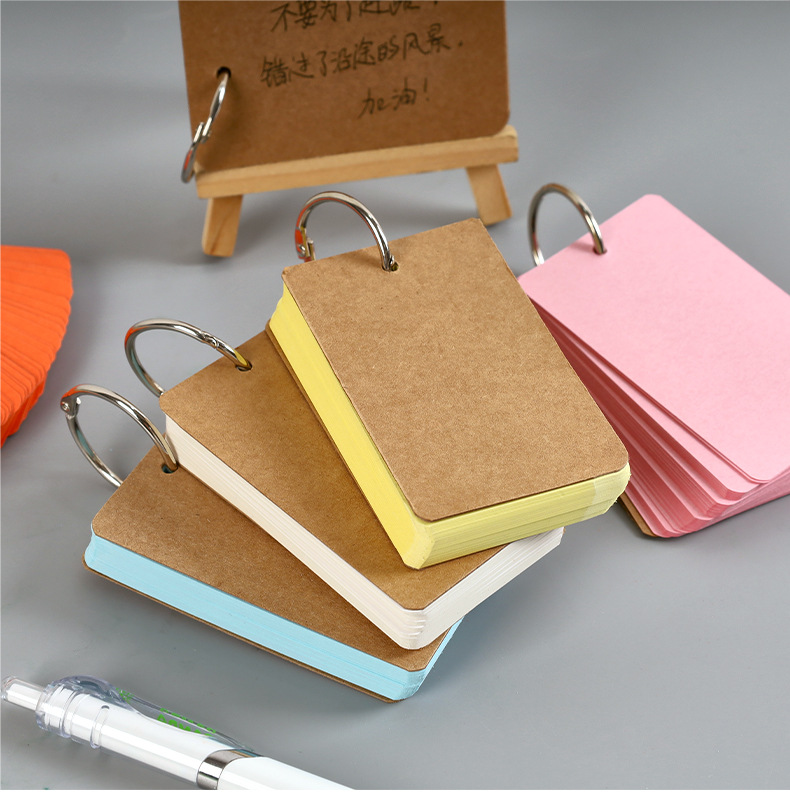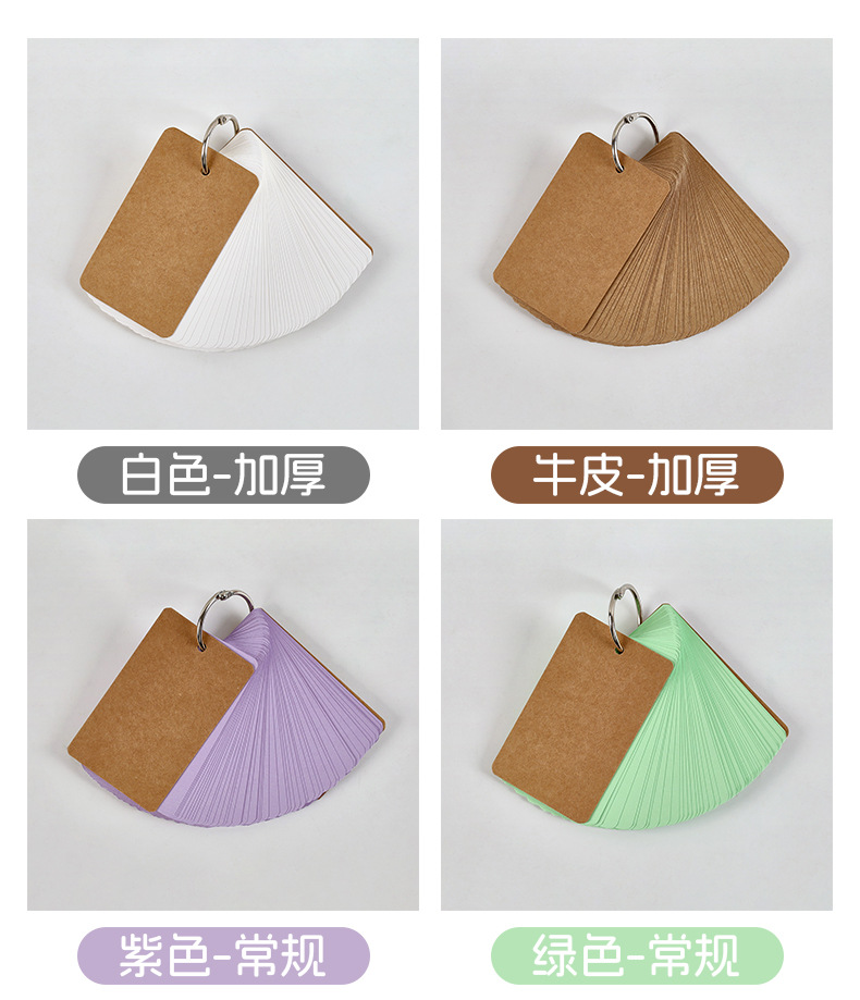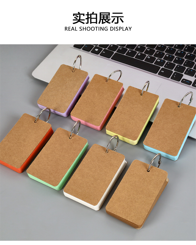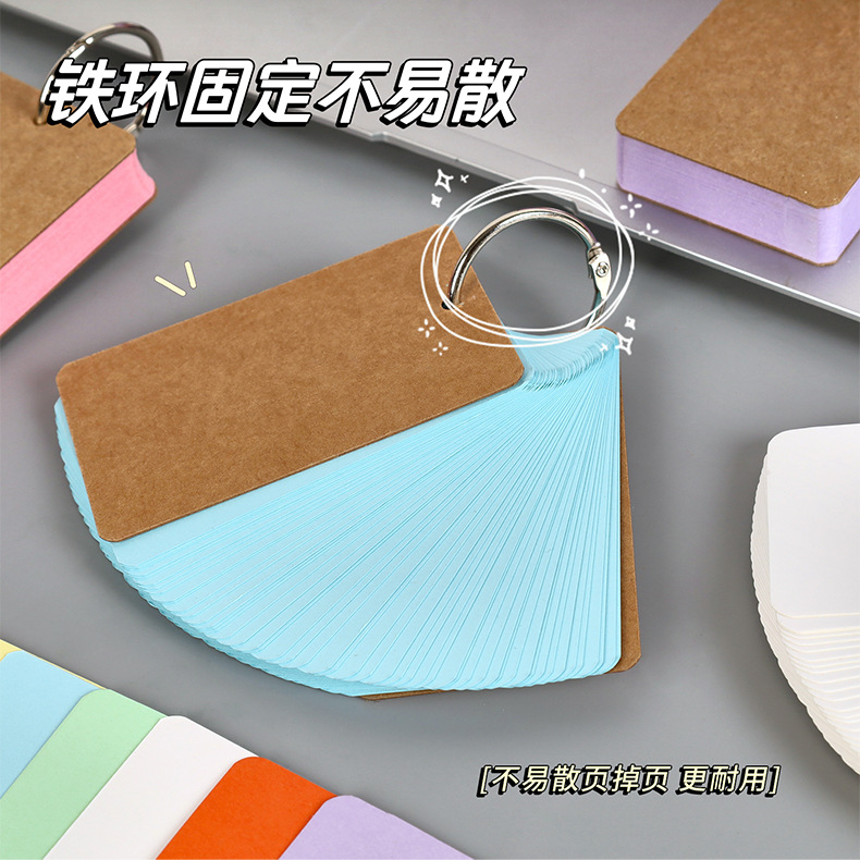 环扣式牛皮小本子长方形空白英语单词卡纸彩色硬质手写口袋活页本