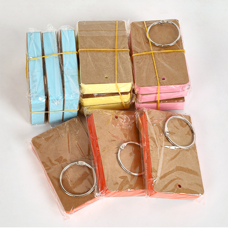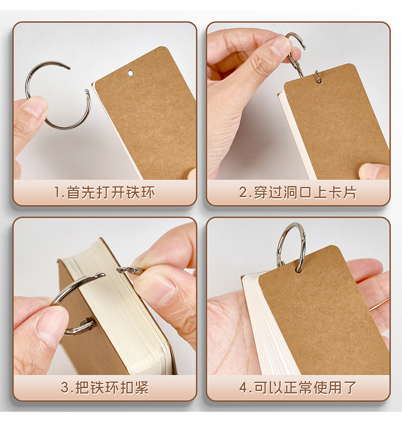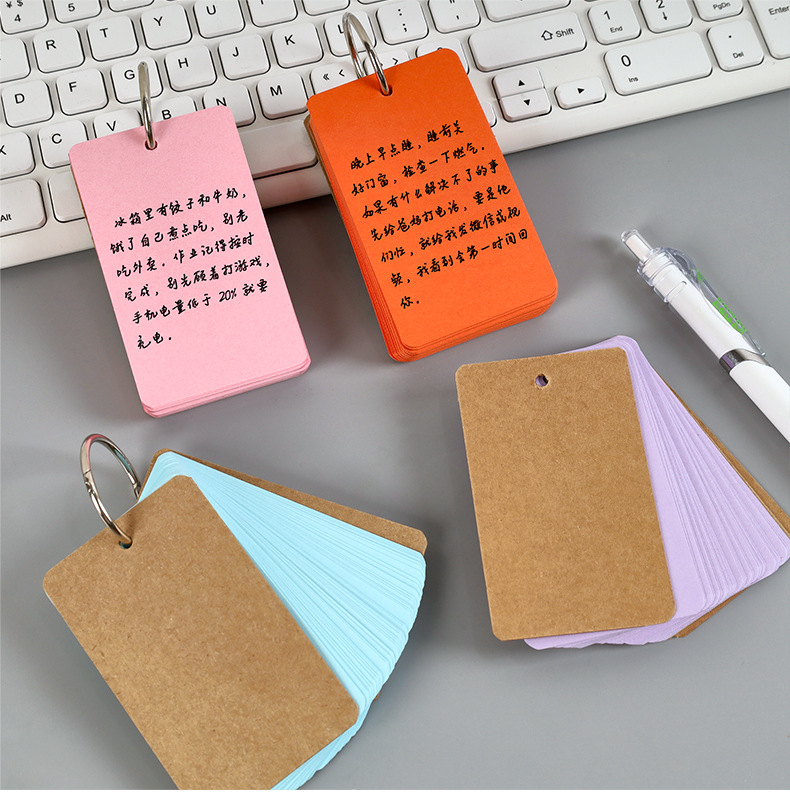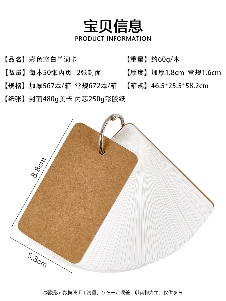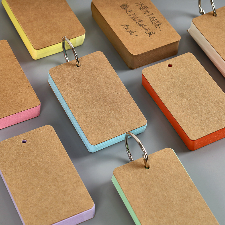 环扣式牛皮小本子长方形空白英语单词卡纸彩色硬质手写口袋活页本
