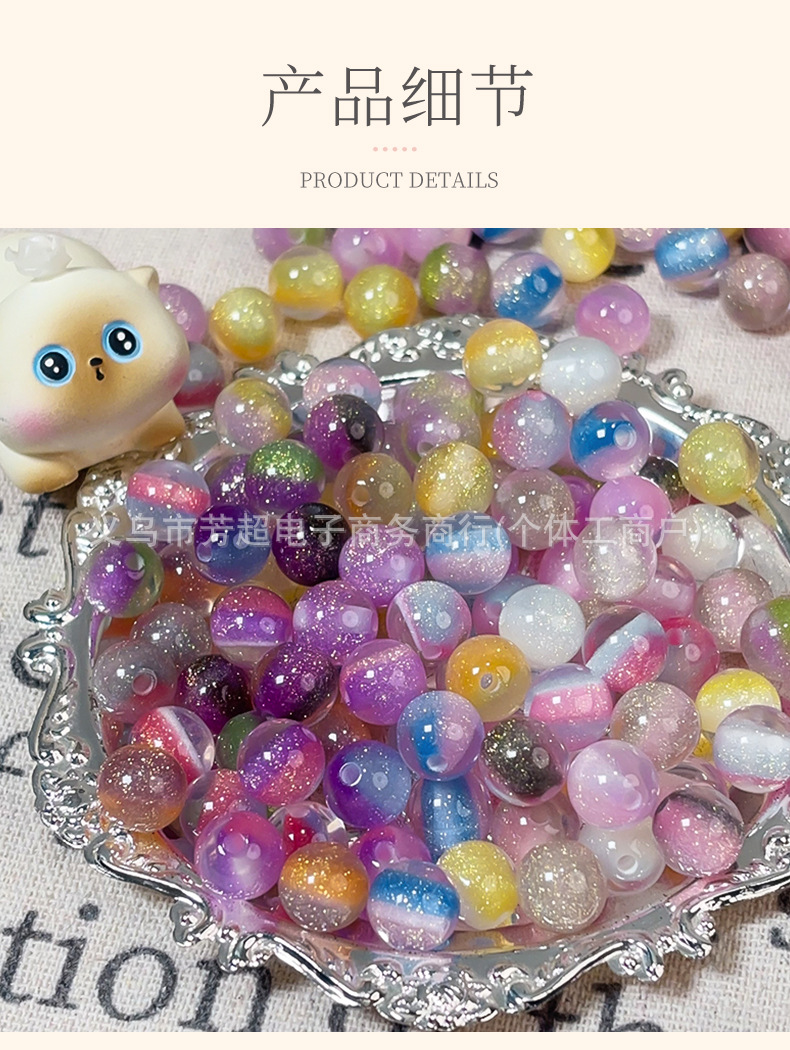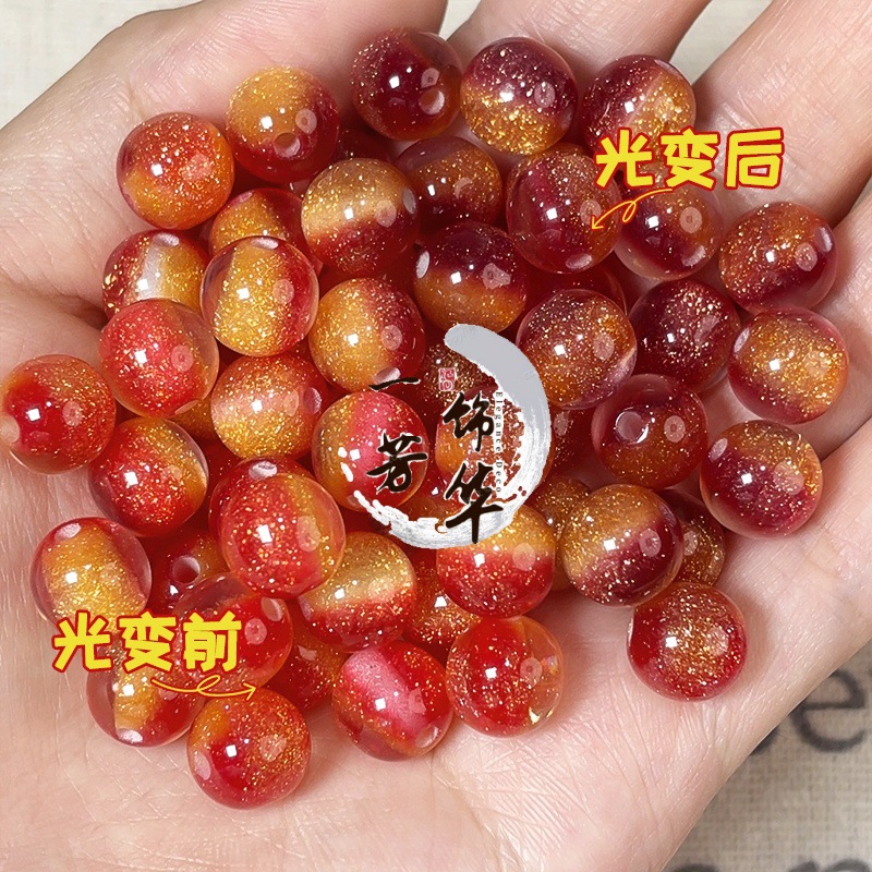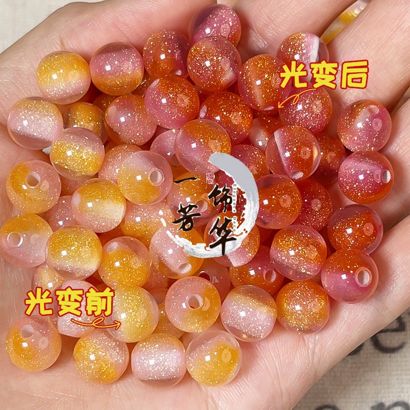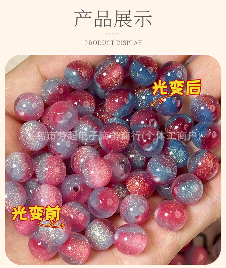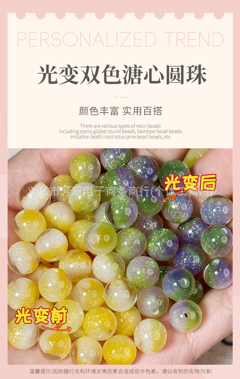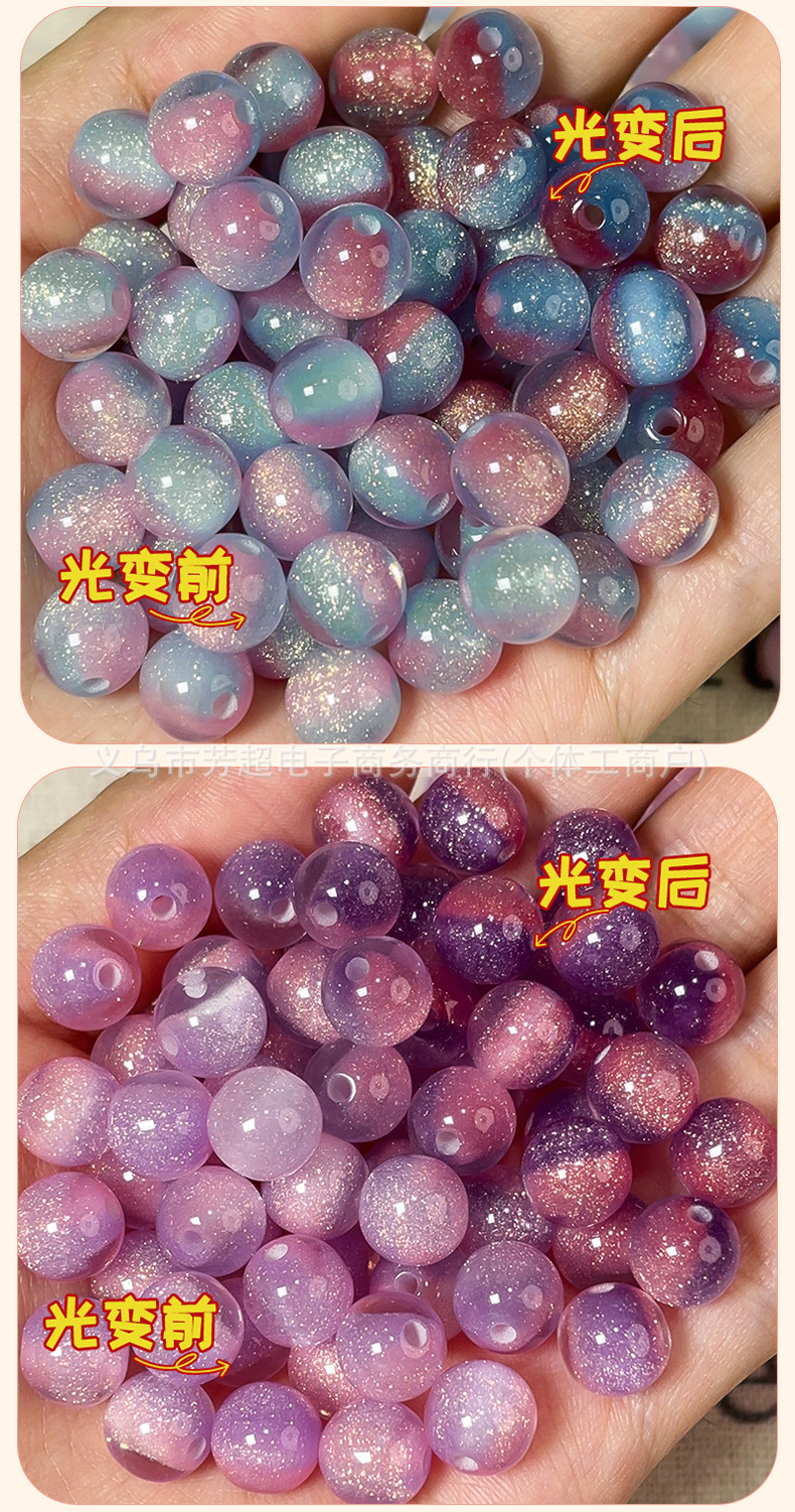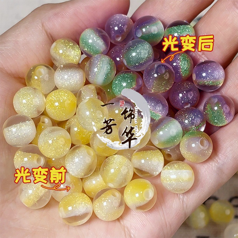 10mm夜光紫外线光变双色树脂珠子散珠diy手工手链串珠首饰手机链