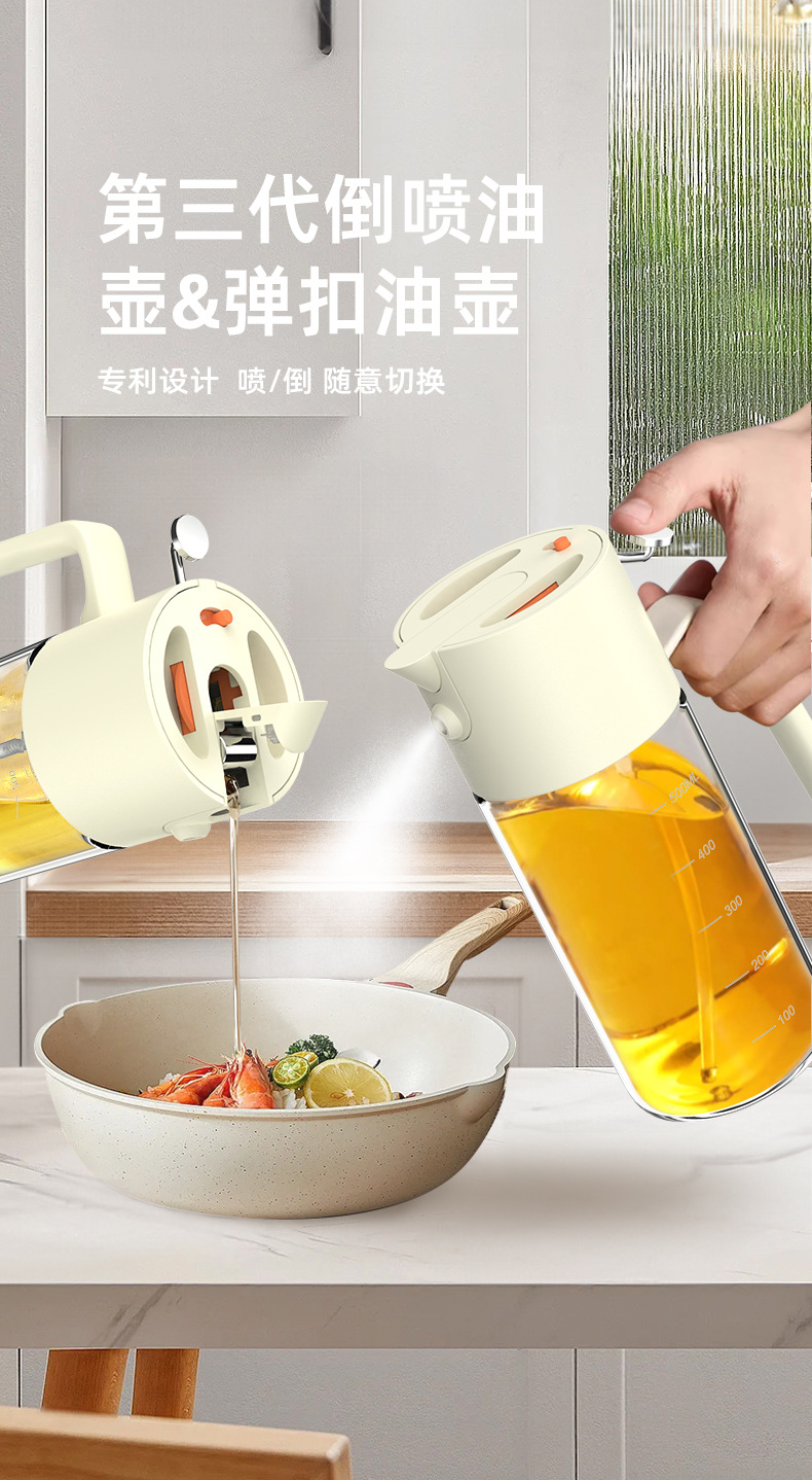 油壶高硼硅玻璃油壶喷倒两用喷油壶厨房家用油罐壶自动开合喷油瓶