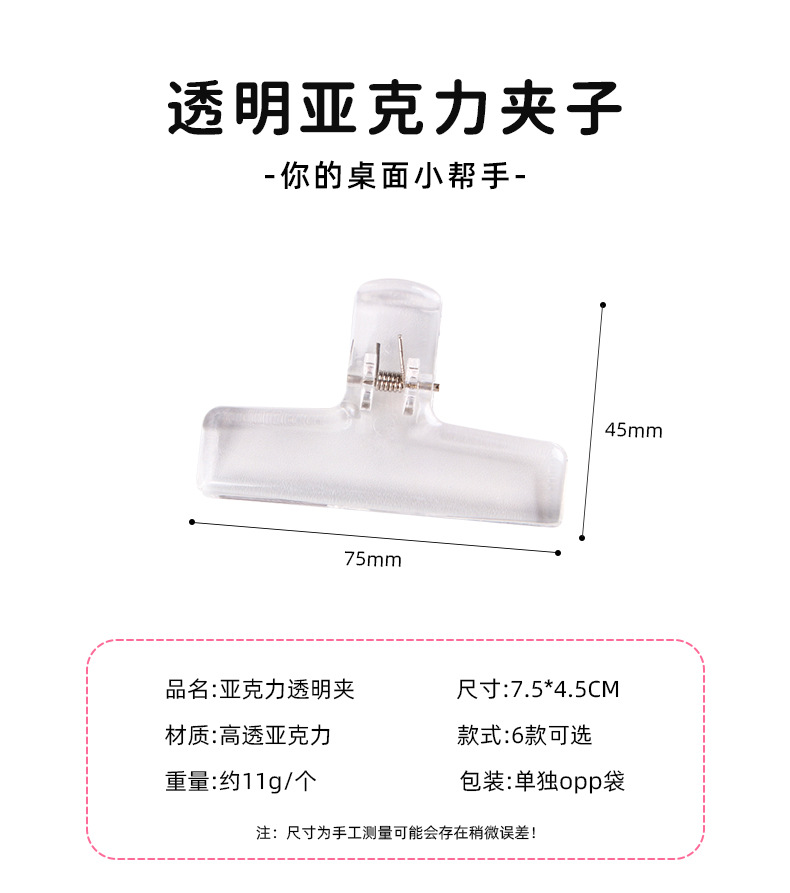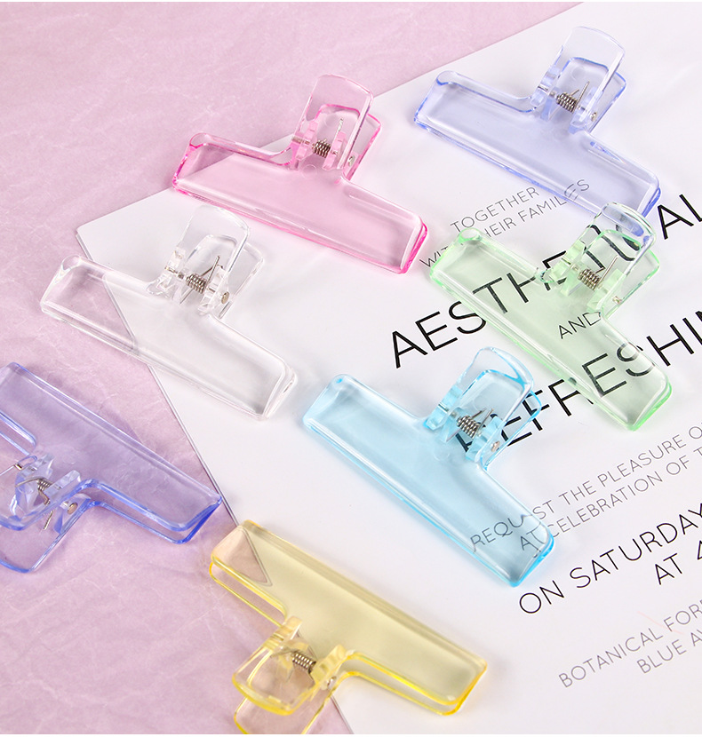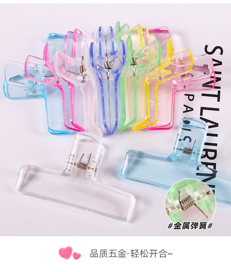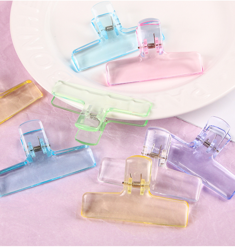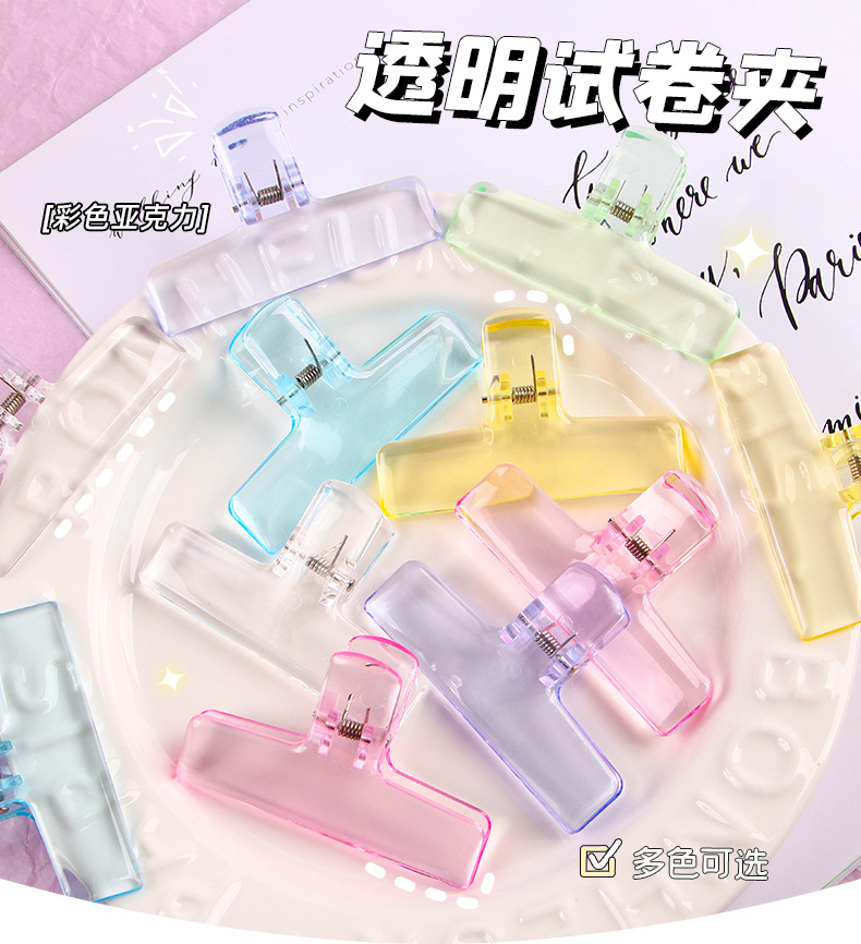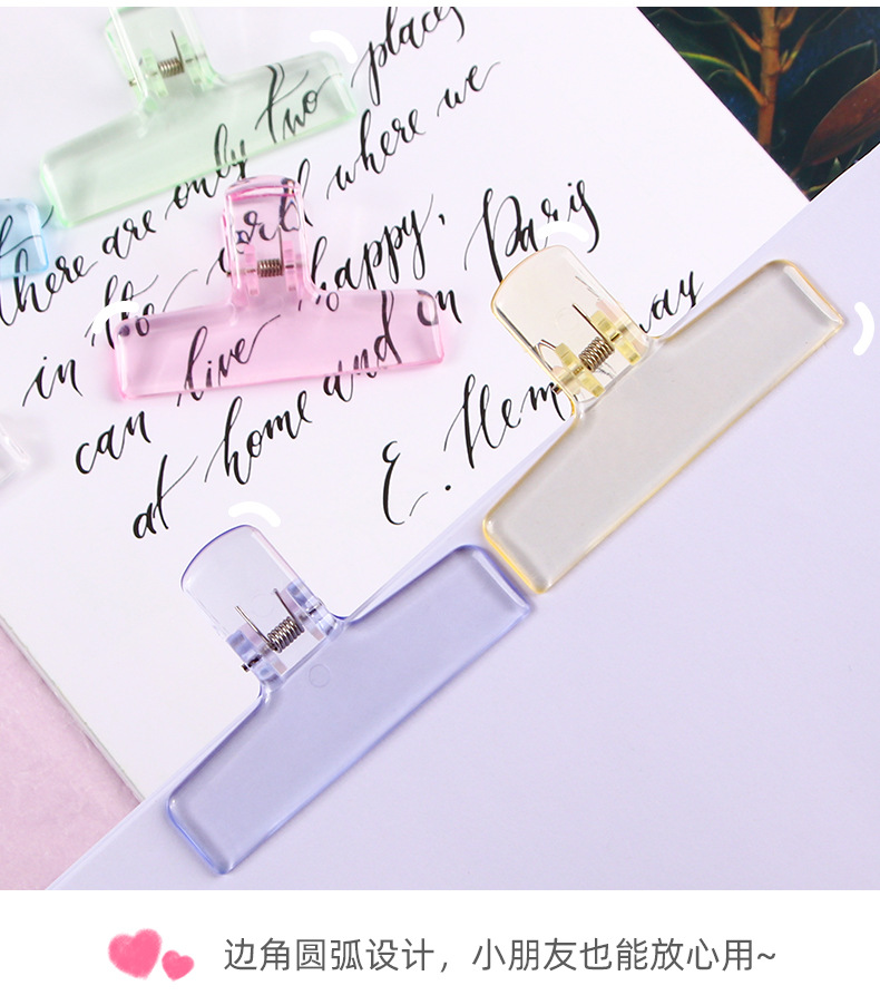 透明亚力克夹子学生ins可爱果冻夹试卷收纳长尾夹票据资料手账夹
