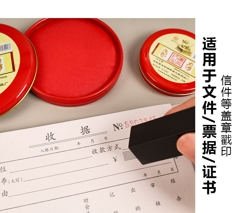 铁盒装快干红色印泥办公专用3#6#12#布面工艺按手印盖章印台批发