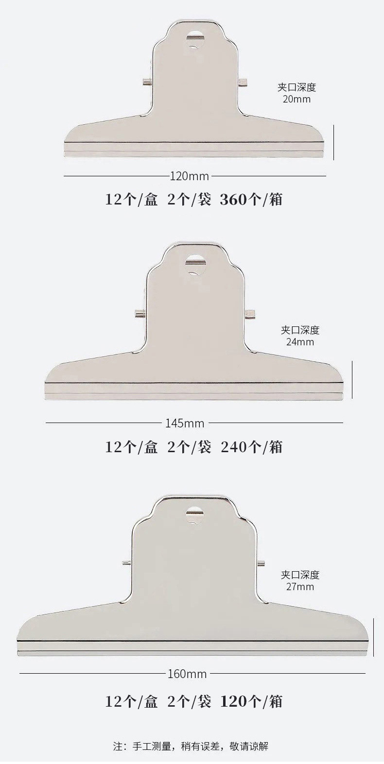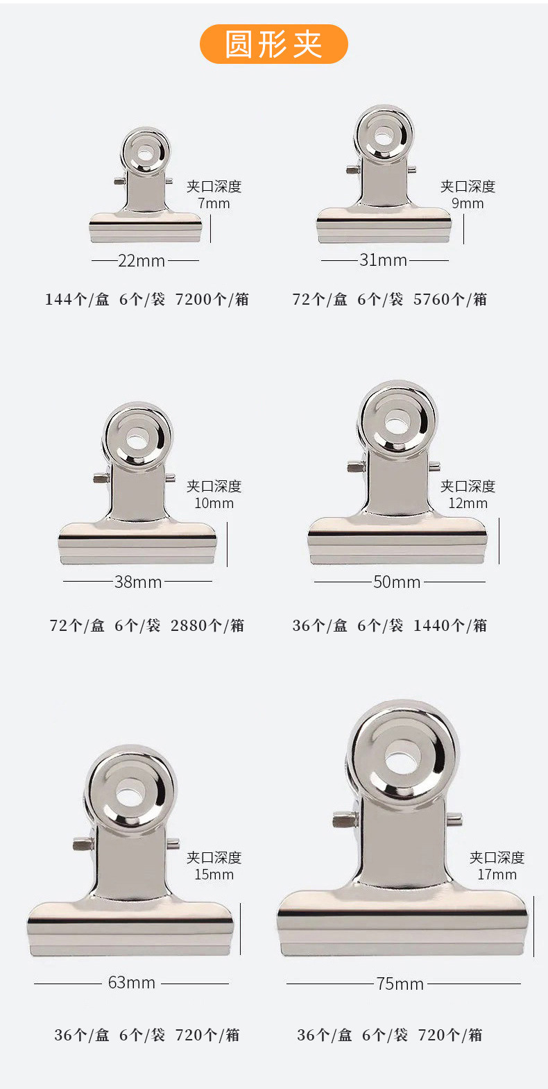 不锈钢圆形钢夹 强力多规格大小号山形夹 文具夹金属票据文件夹子