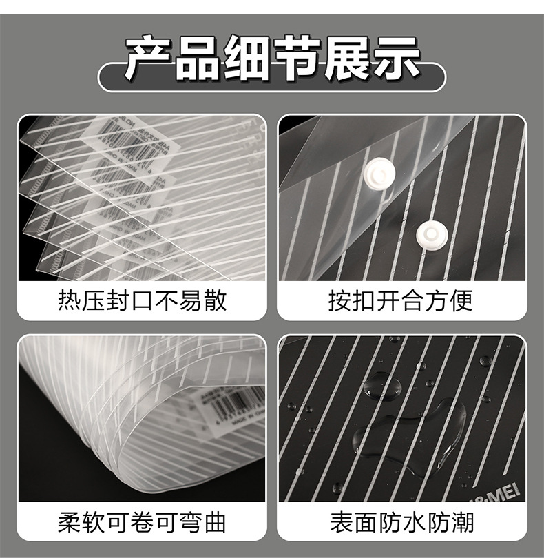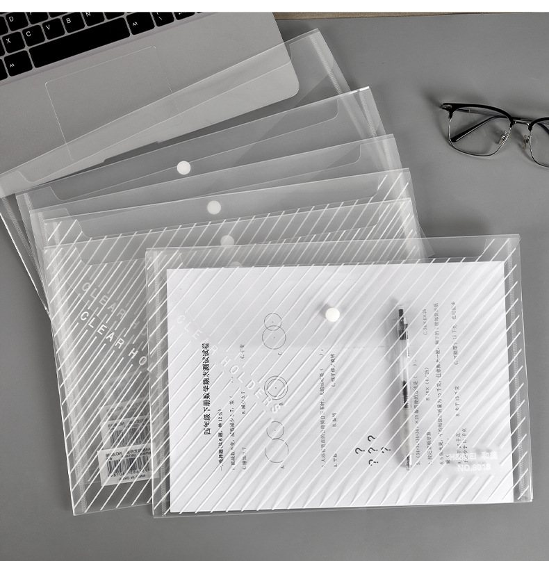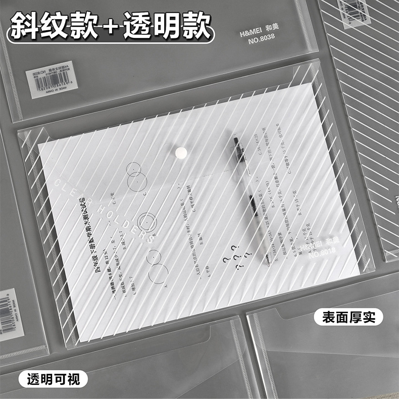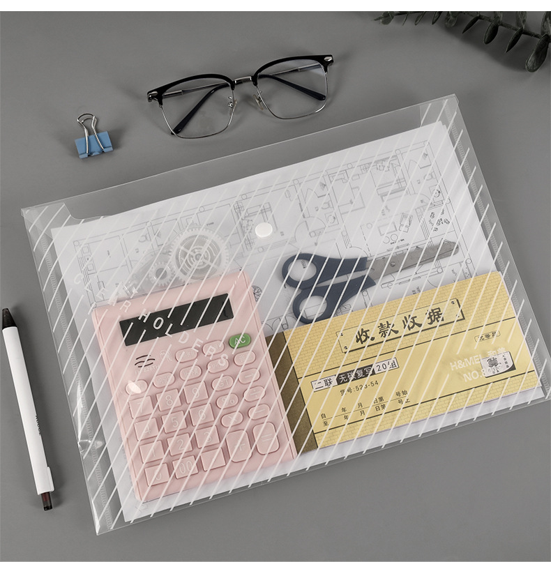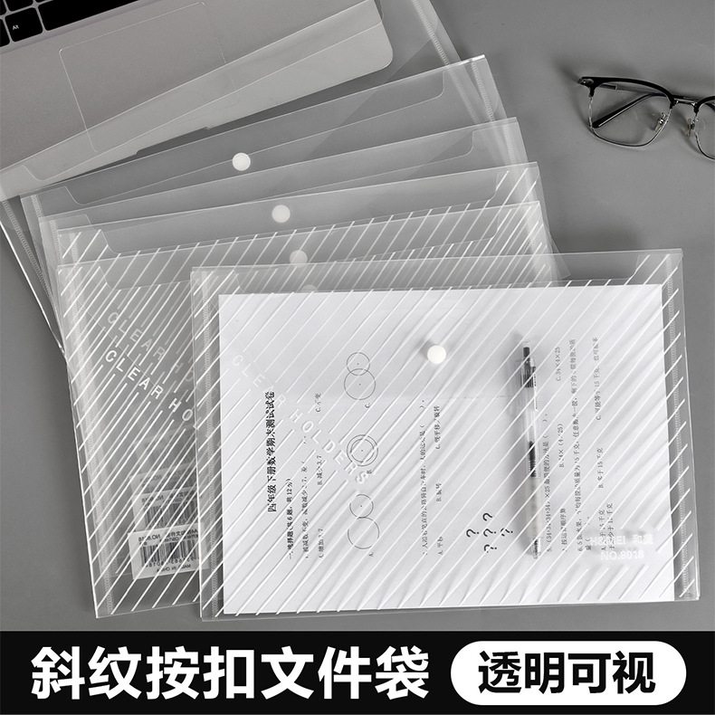 办公用品按扣文件袋学生斜纹防水试卷收纳袋透明A4加厚资料袋批发
