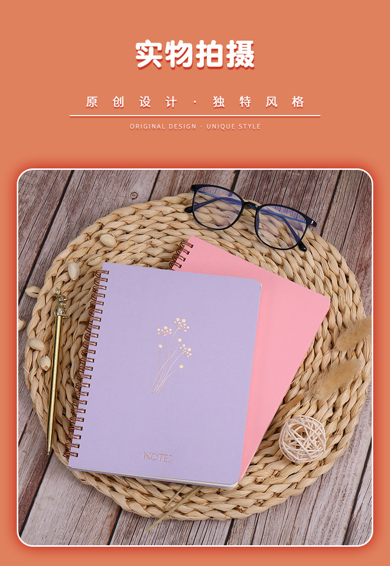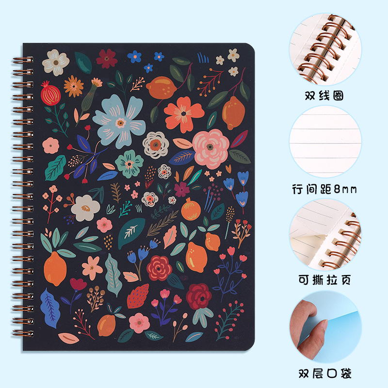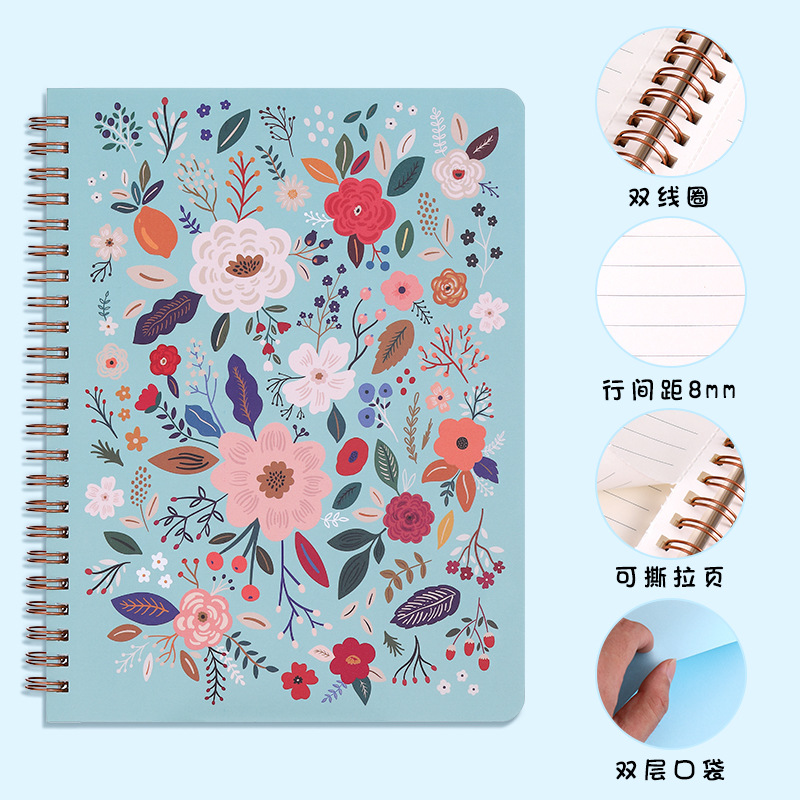可爱花卉笔记本A5学生作业本线圈本记事本批发便携办公文具本子