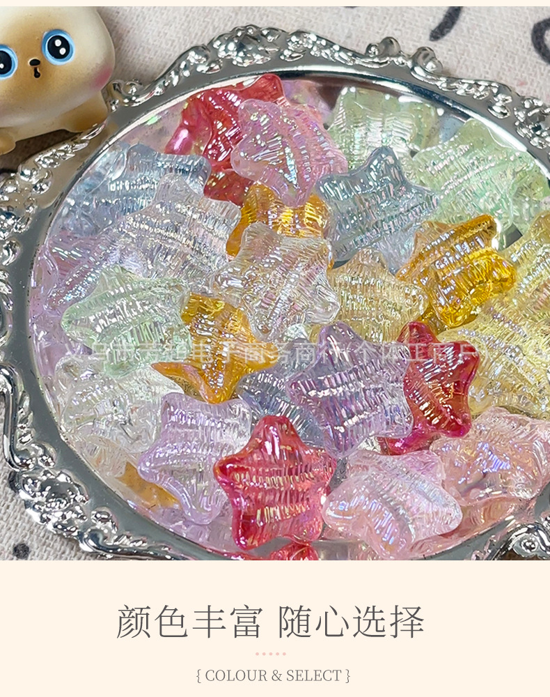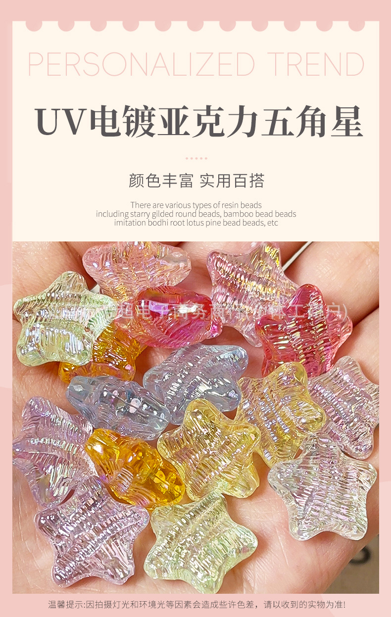 电镀高透AB彩螺纹亚克力五角星通孔挂饰配件diy手工饰品配件五角