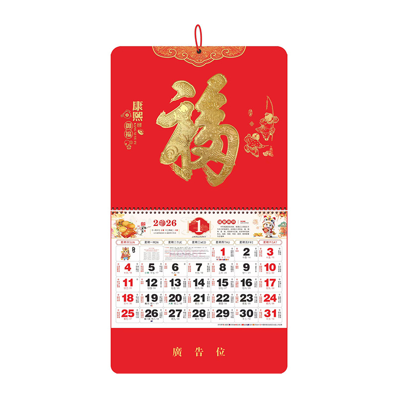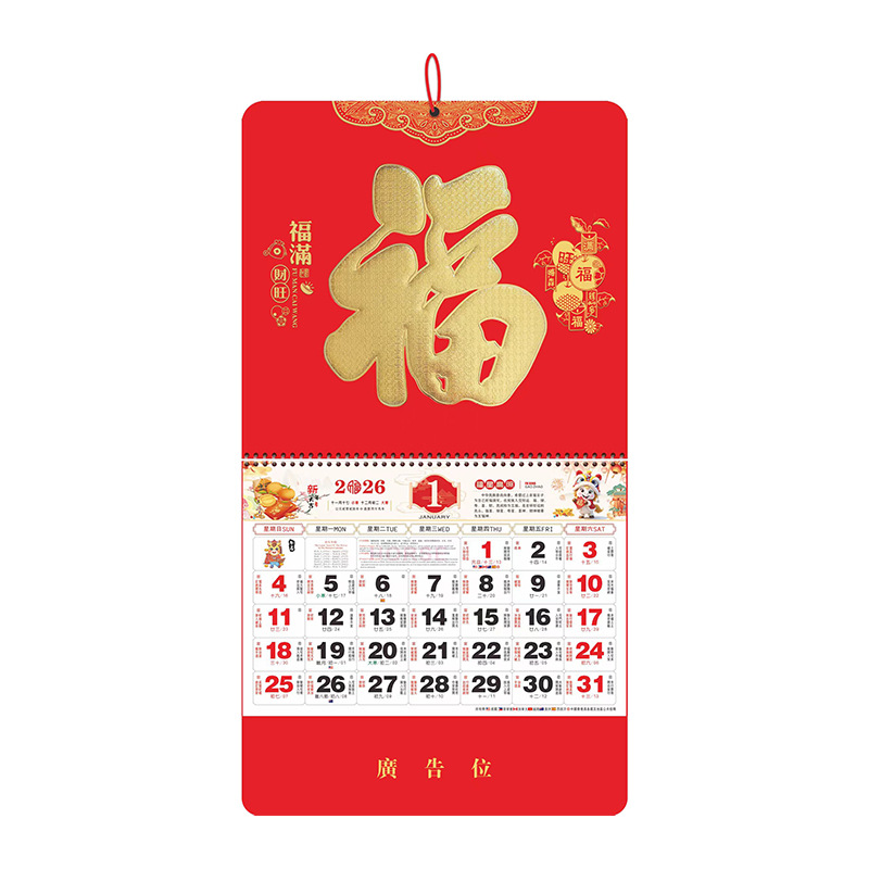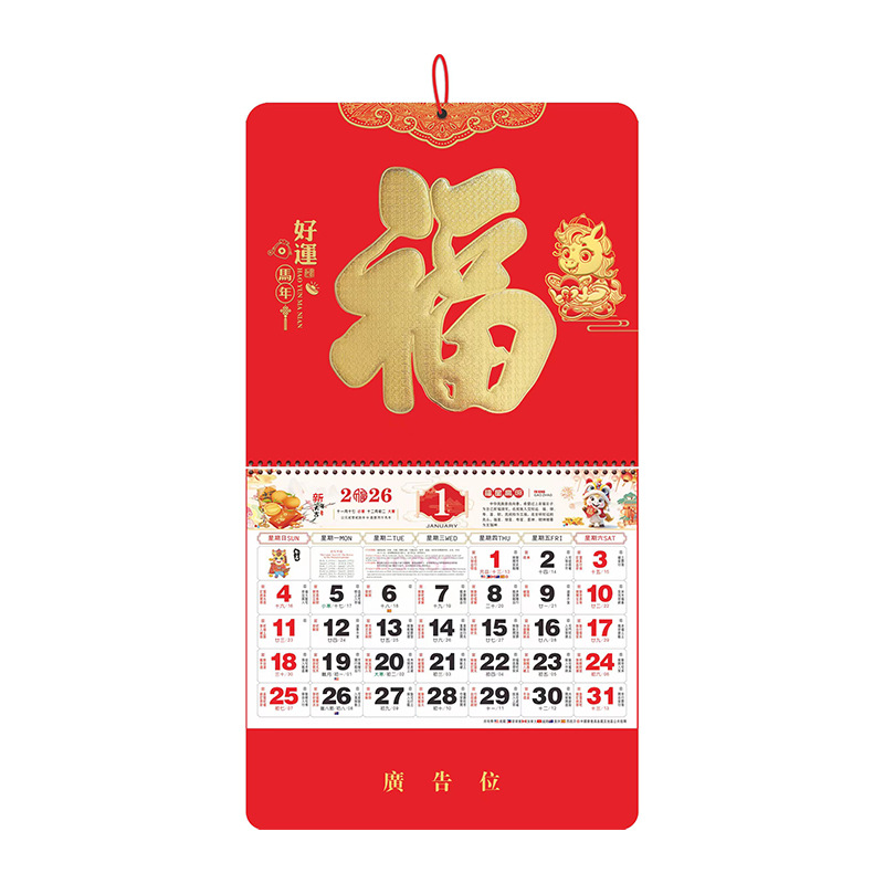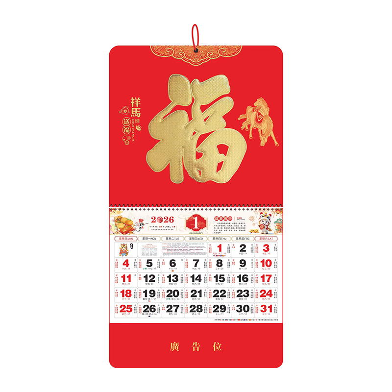 2026挂历马年正六开单色金荧光红福牌广告烫金logo定制厂家直销