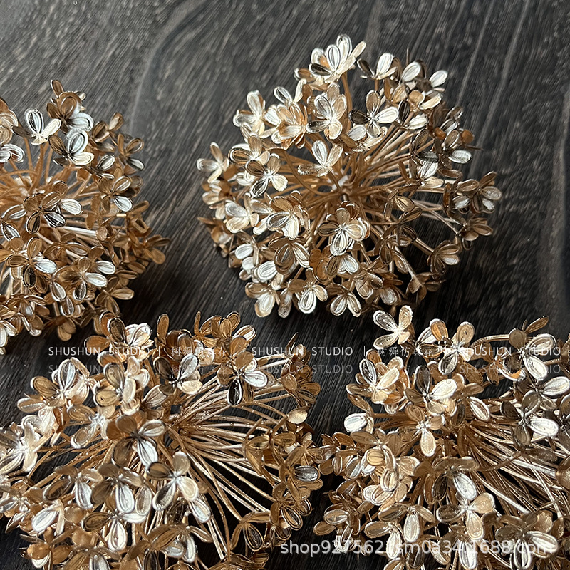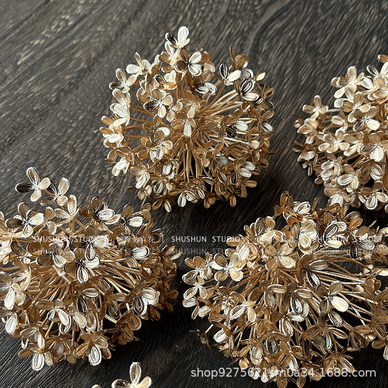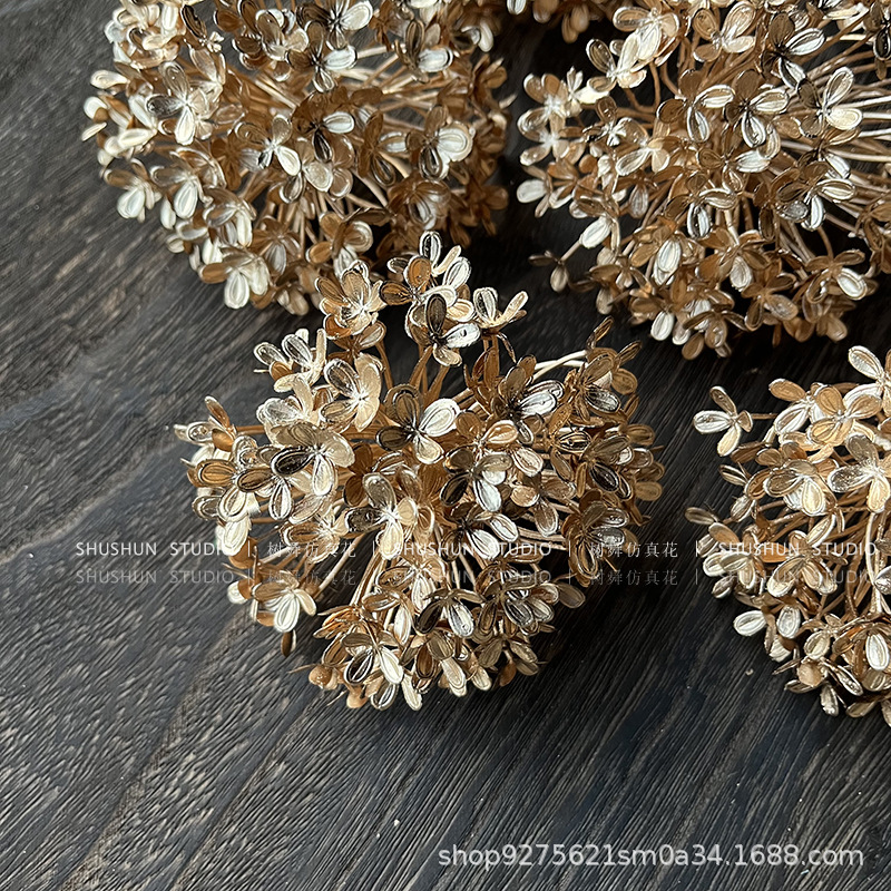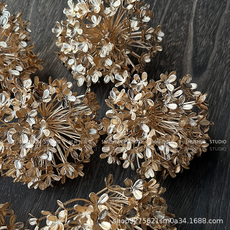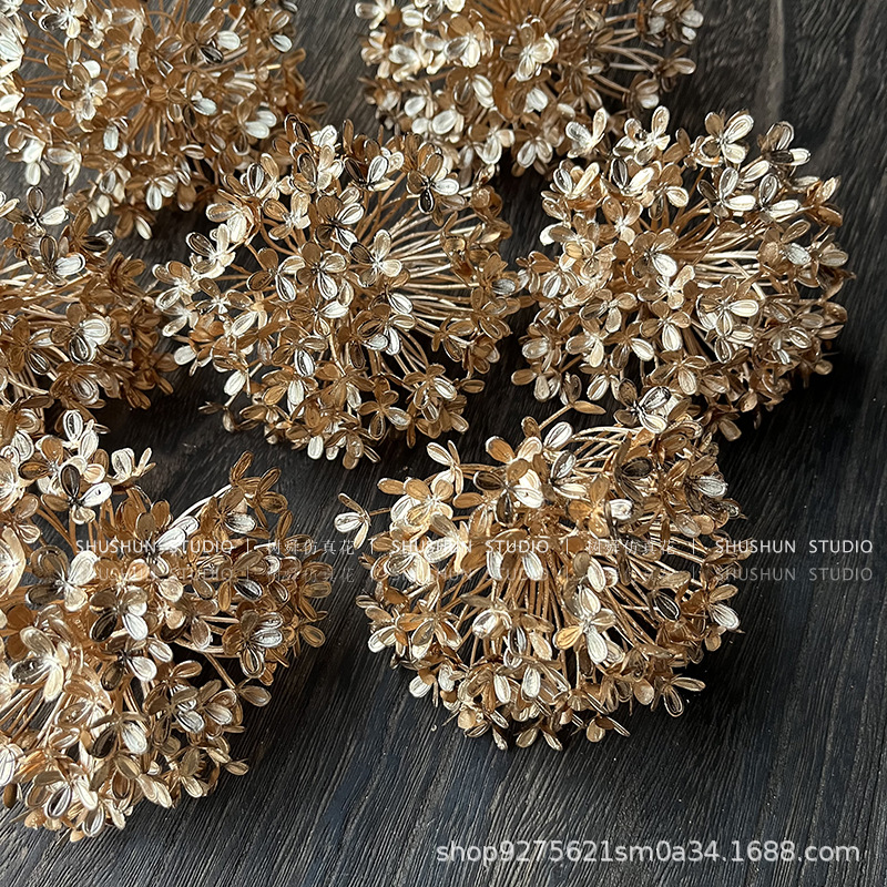 年宵花金色花材木绣球花头绣球花头金色花尤加利银杏叶金扇子