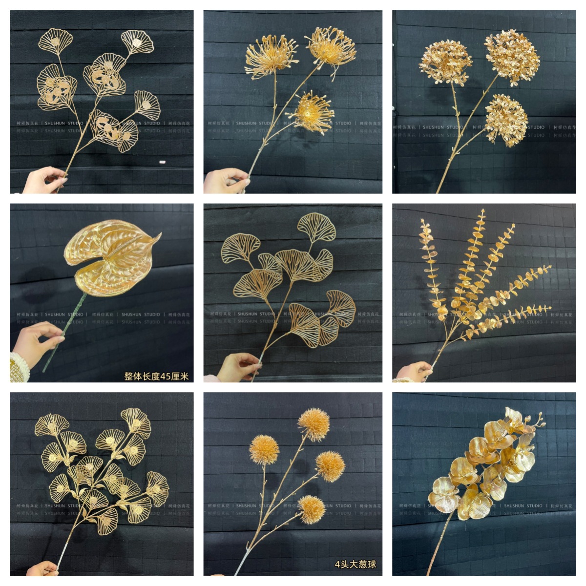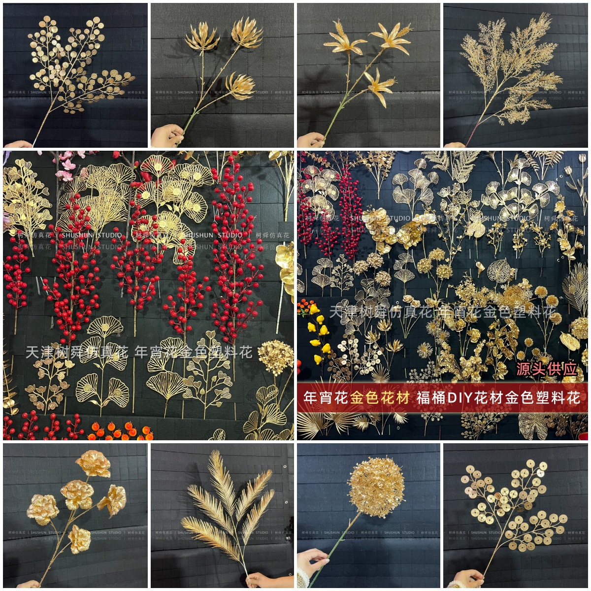 金色仿真花福桶材料金叶子年宵花绣球花金色银杏叶福桶金色花材