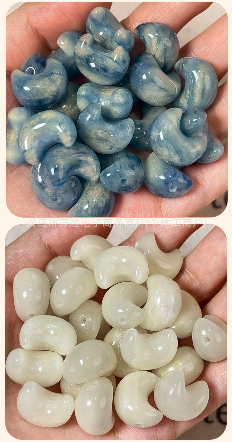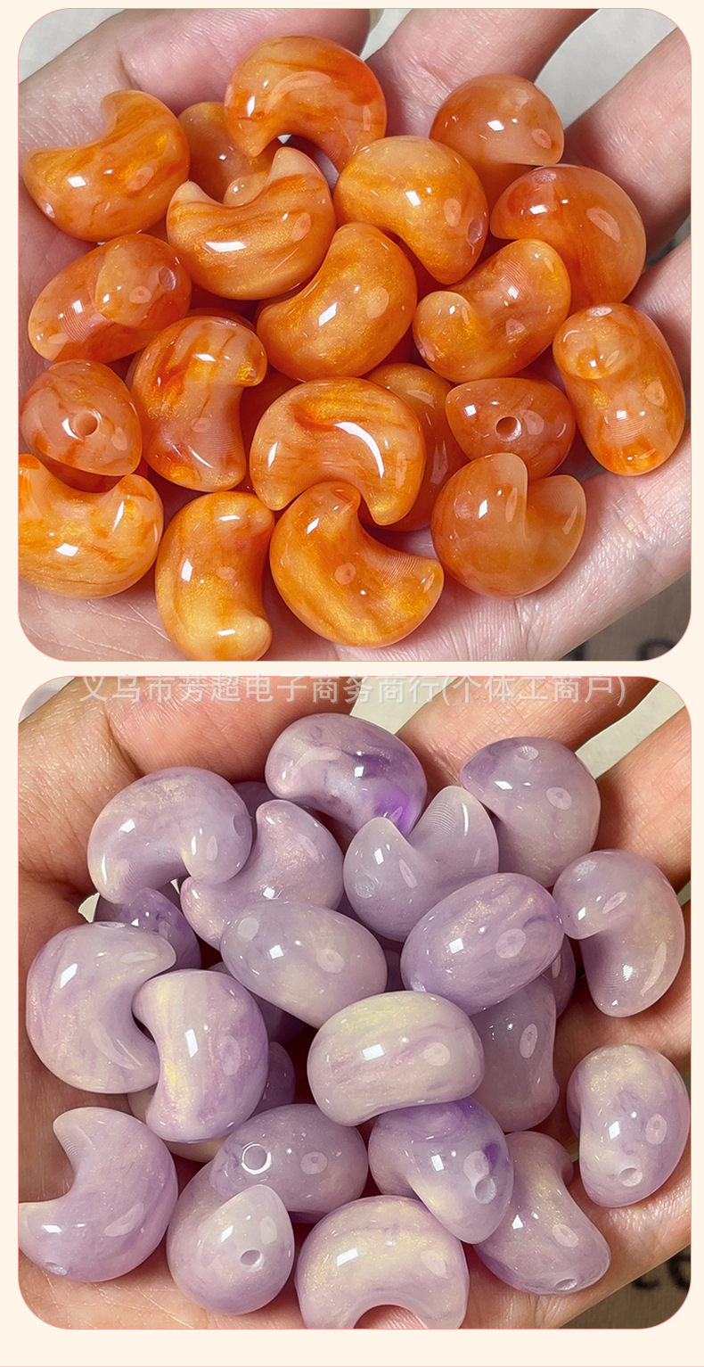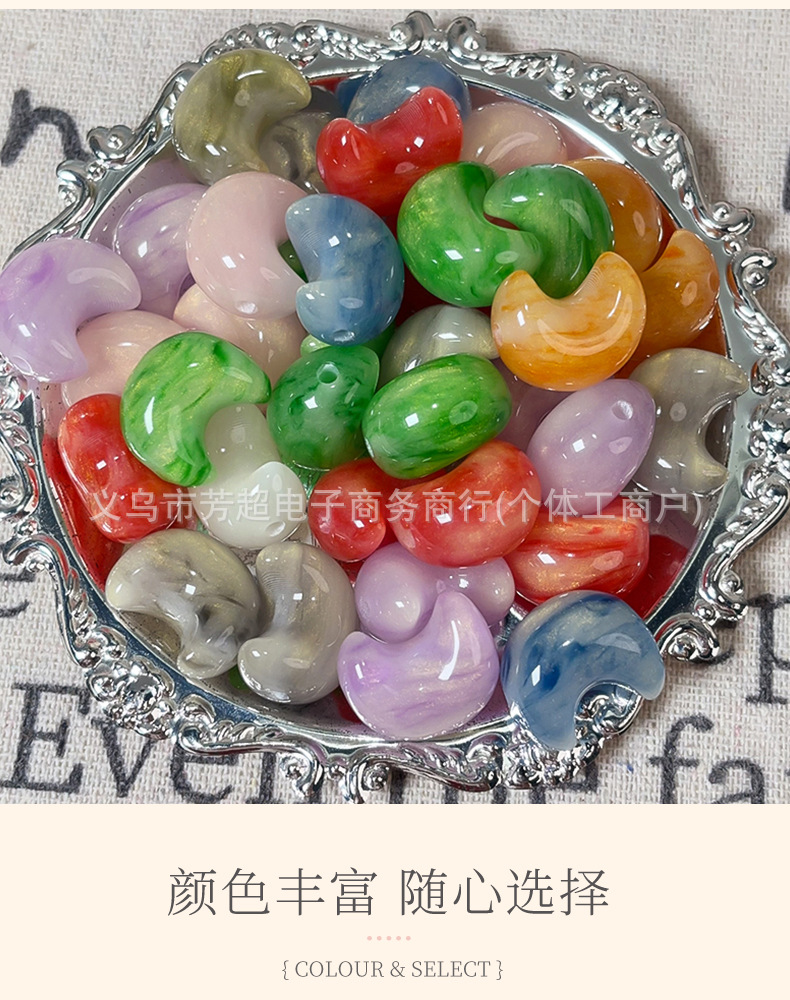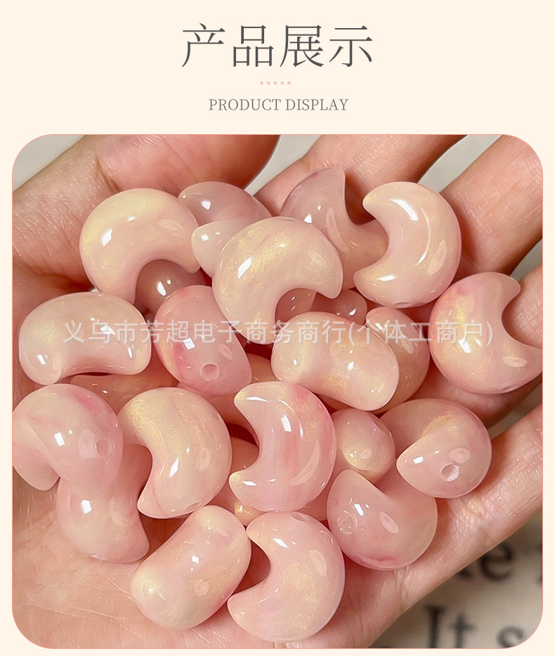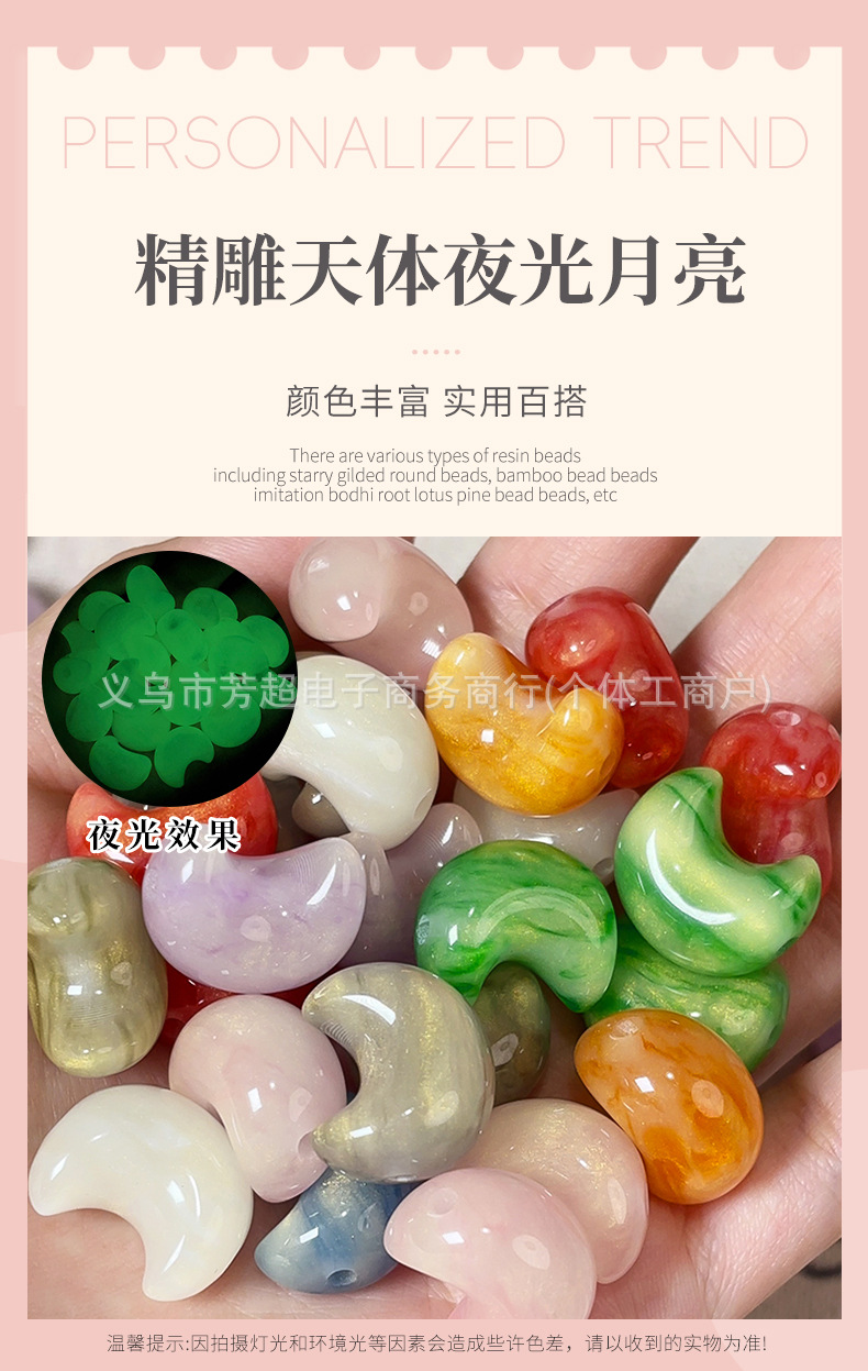 夜光月亮树脂diy手机壳发饰耳钉配件光变头饰精雕鎏金夜光月亮珠