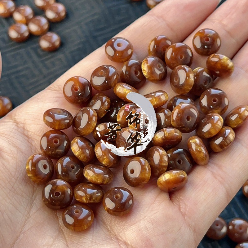星月实色算盘鎏金油画珠手工DIY树脂8*11mm串珠饰品材料配件散珠