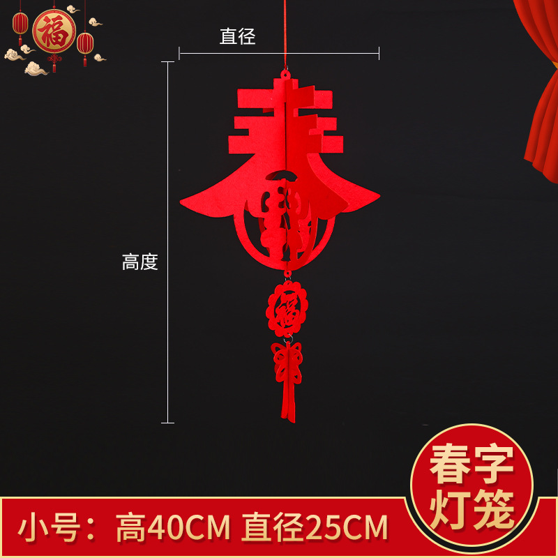 大红灯笼批发小挂件无纺布diy手工福字宫灯绣球过年商场装饰用品