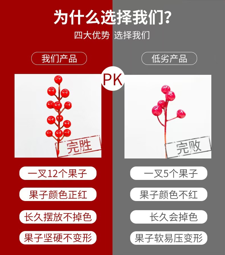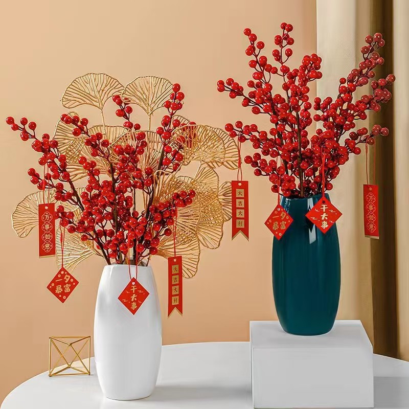 发财果冬青果浆果红果子年宵花材料福桶春节装饰仿真花假花批发