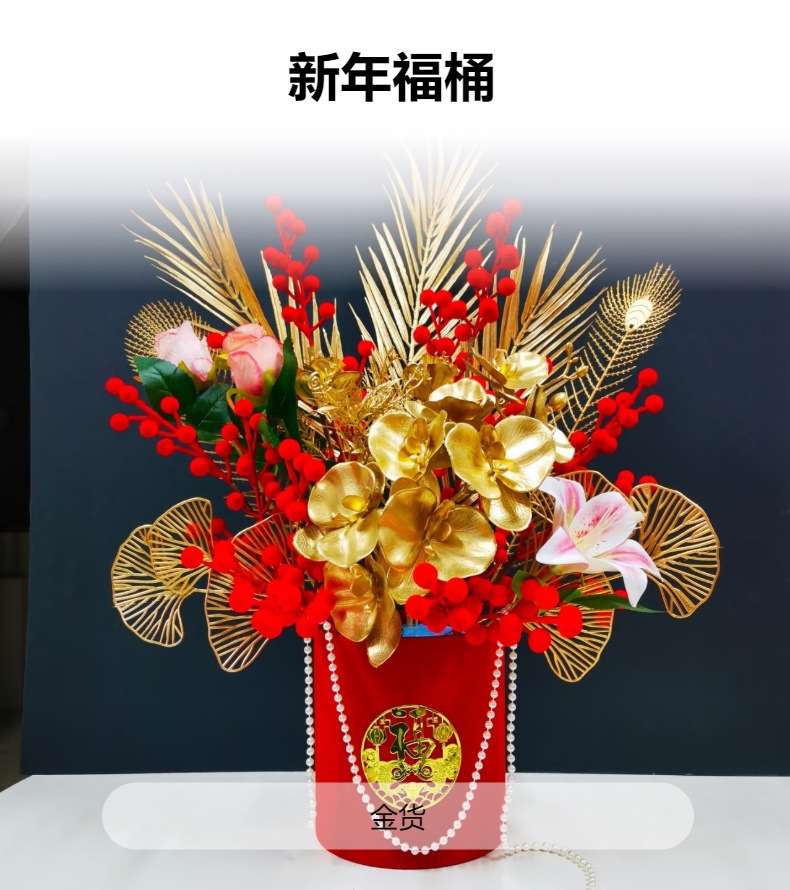蛇年福桶抱抱桶2025新款年宵花春节发财果红果过年装饰花厂家直销