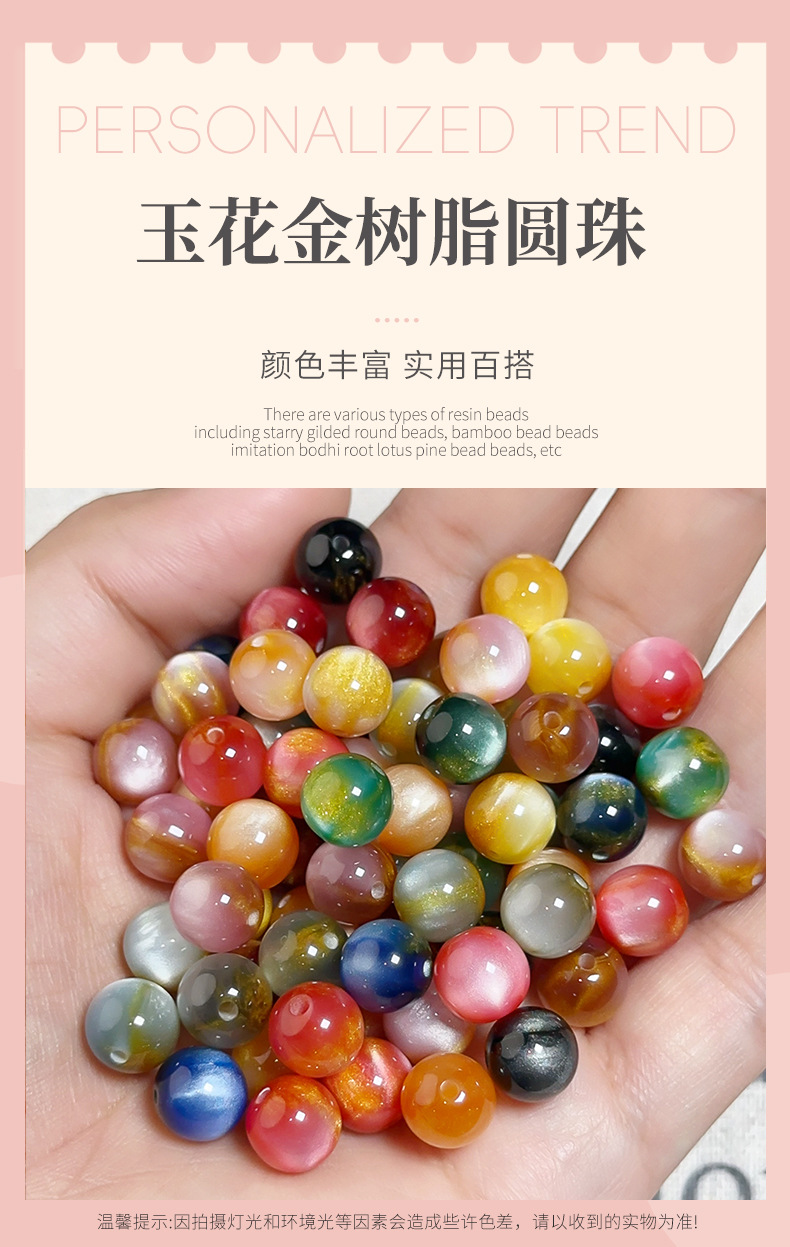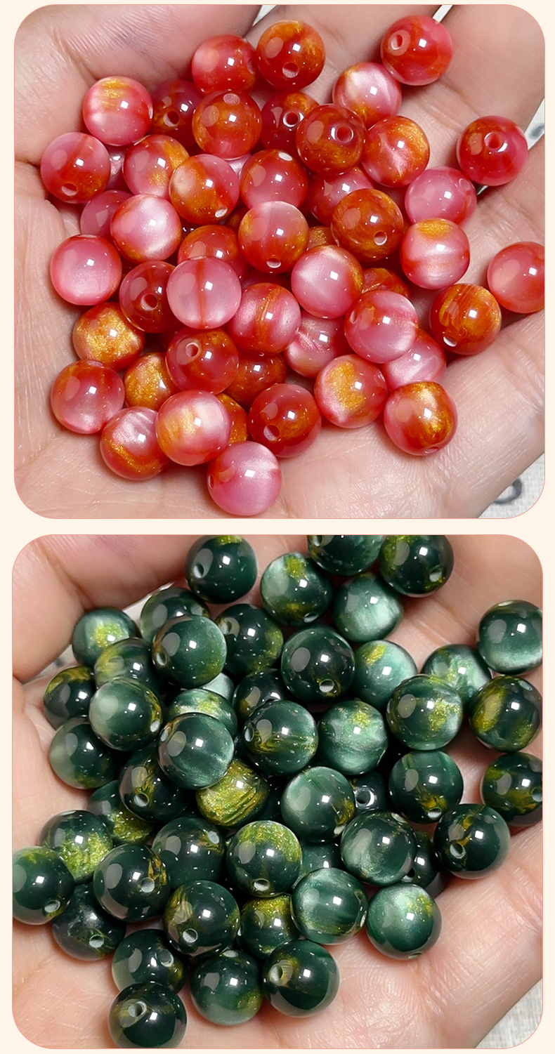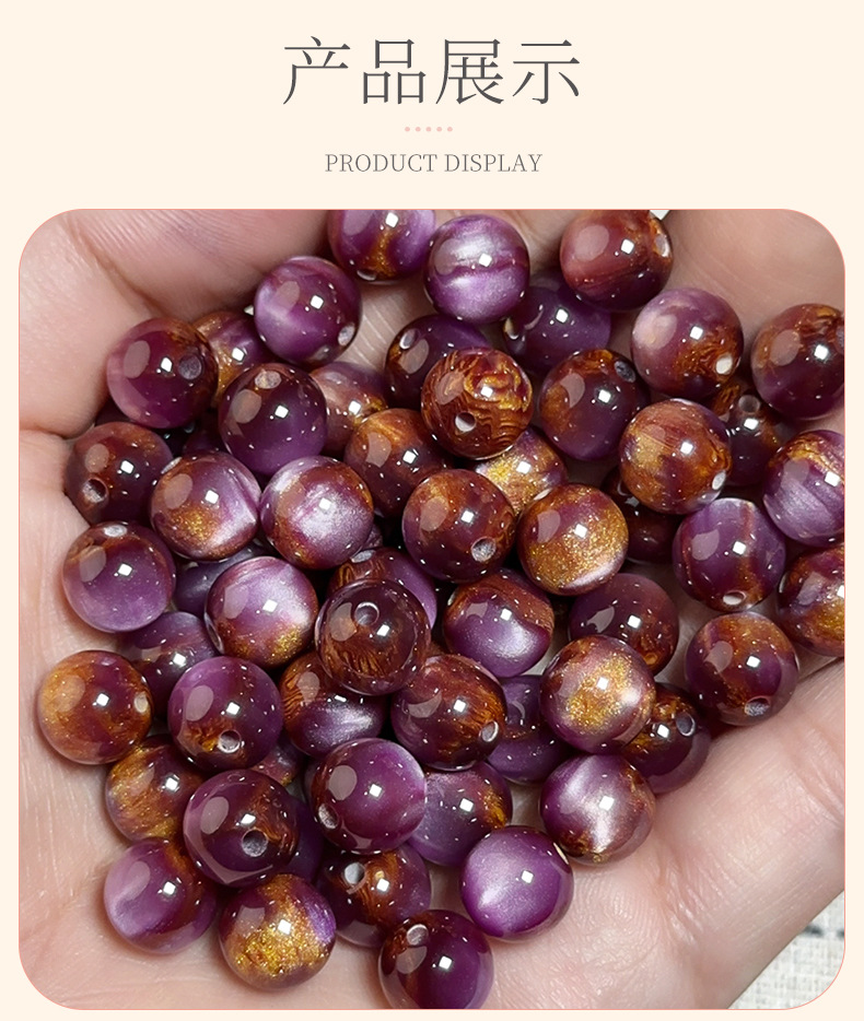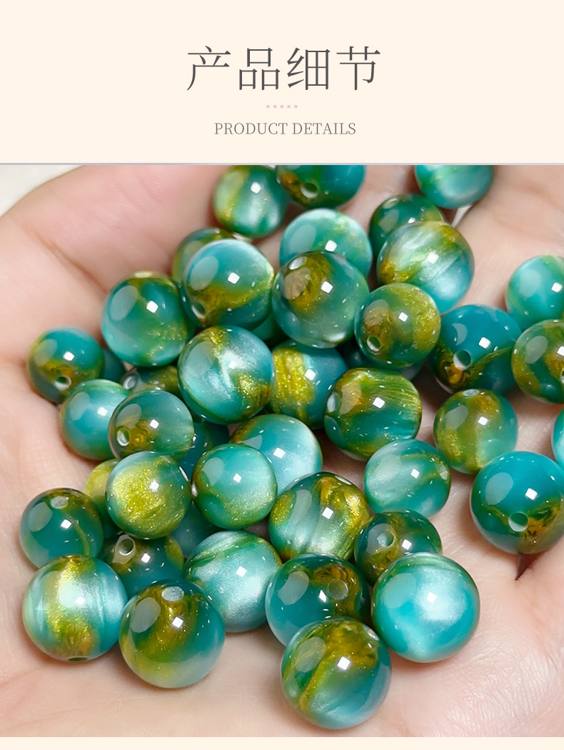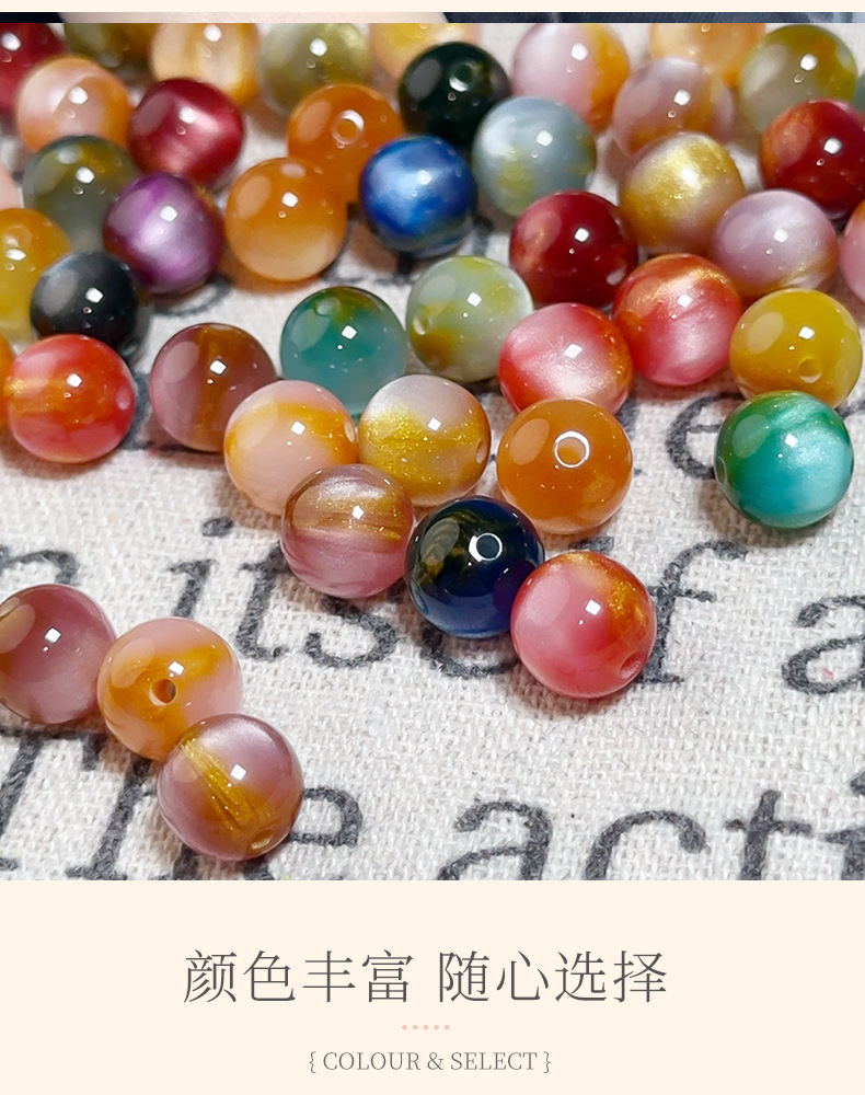 新中式旗袍盘扣鎏金树脂猫眼散珠圆珠手作改良手链项链配件串珠