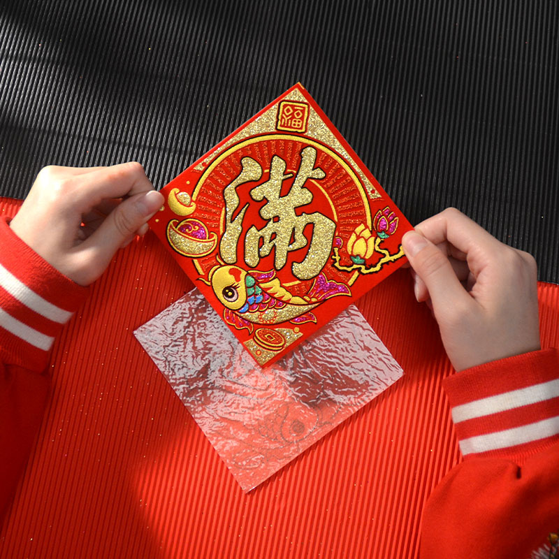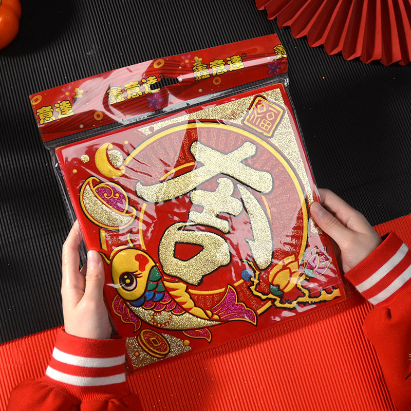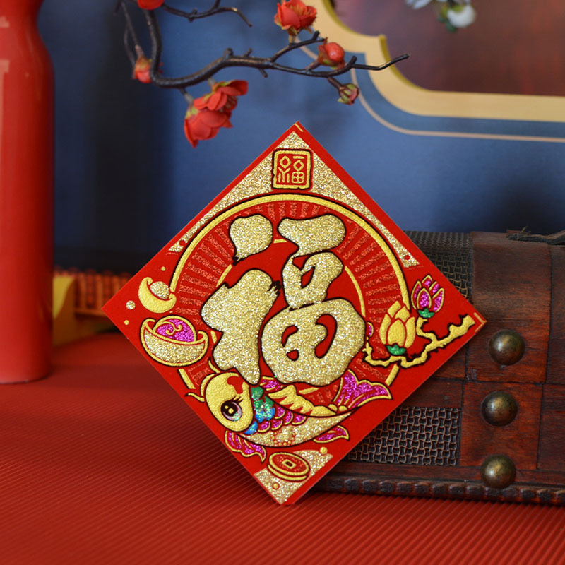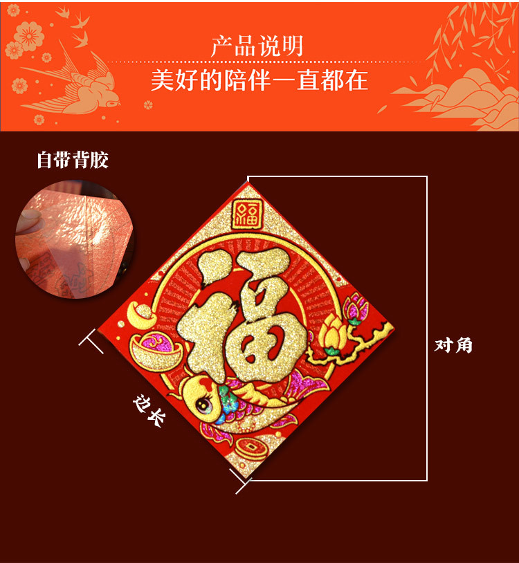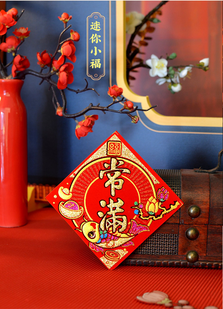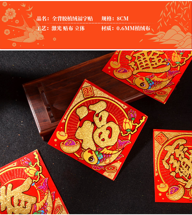 新年春节烫金鱼款迷你小福字贴米缸米桶花盆装饰春发满宝大吉