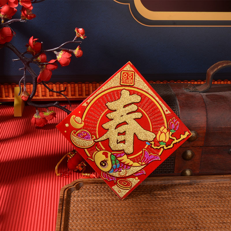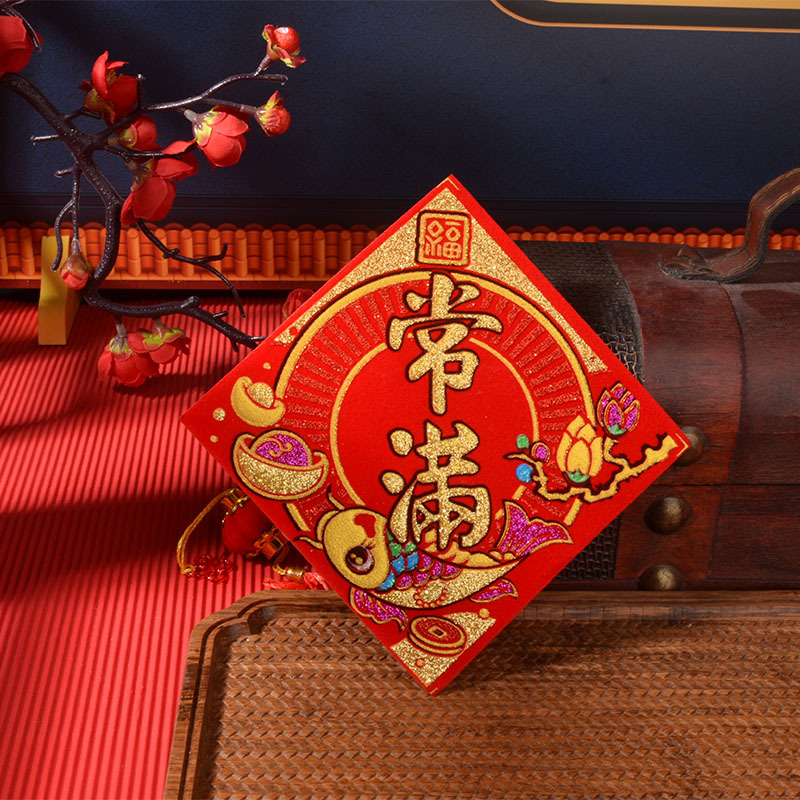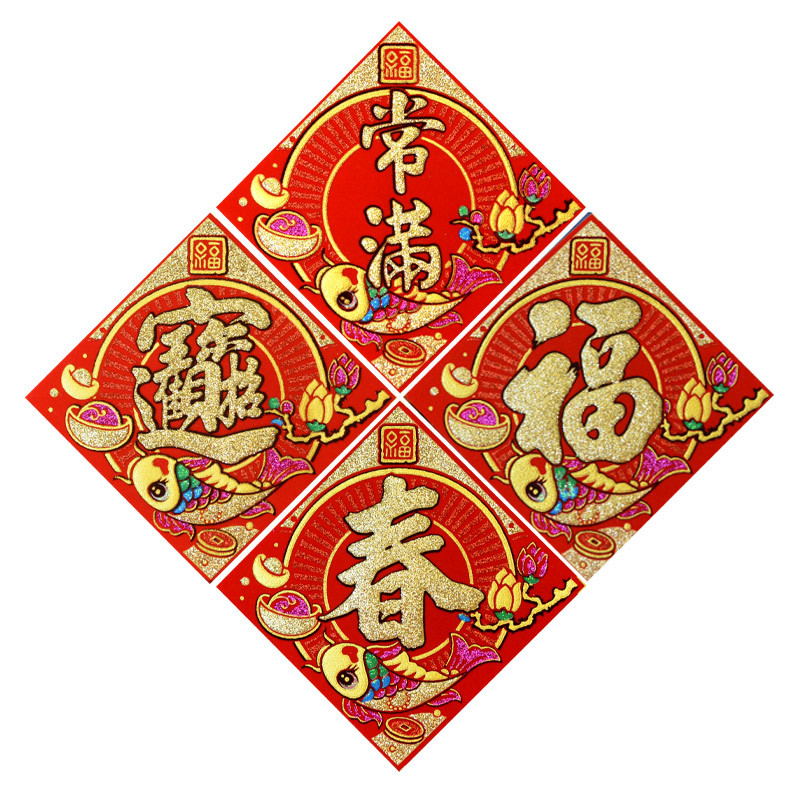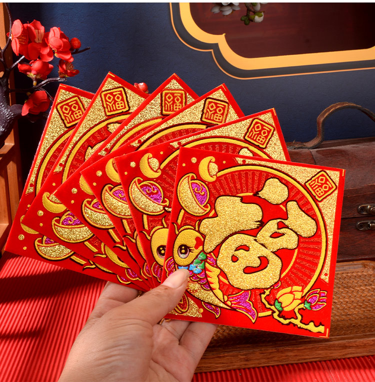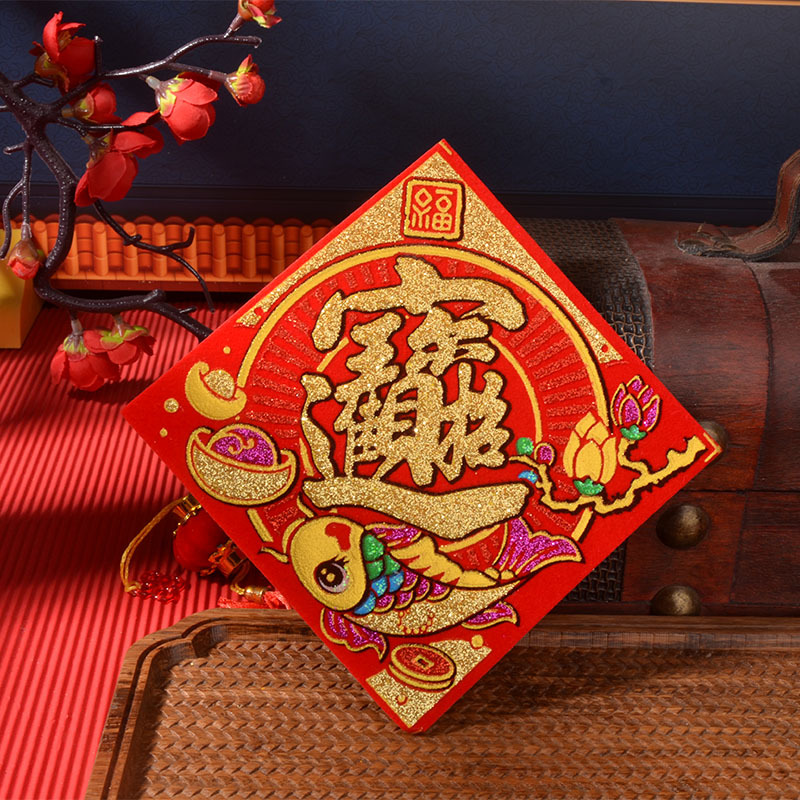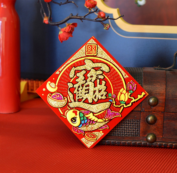 新年春节烫金鱼款迷你小福字贴米缸米桶花盆装饰春发满宝大吉