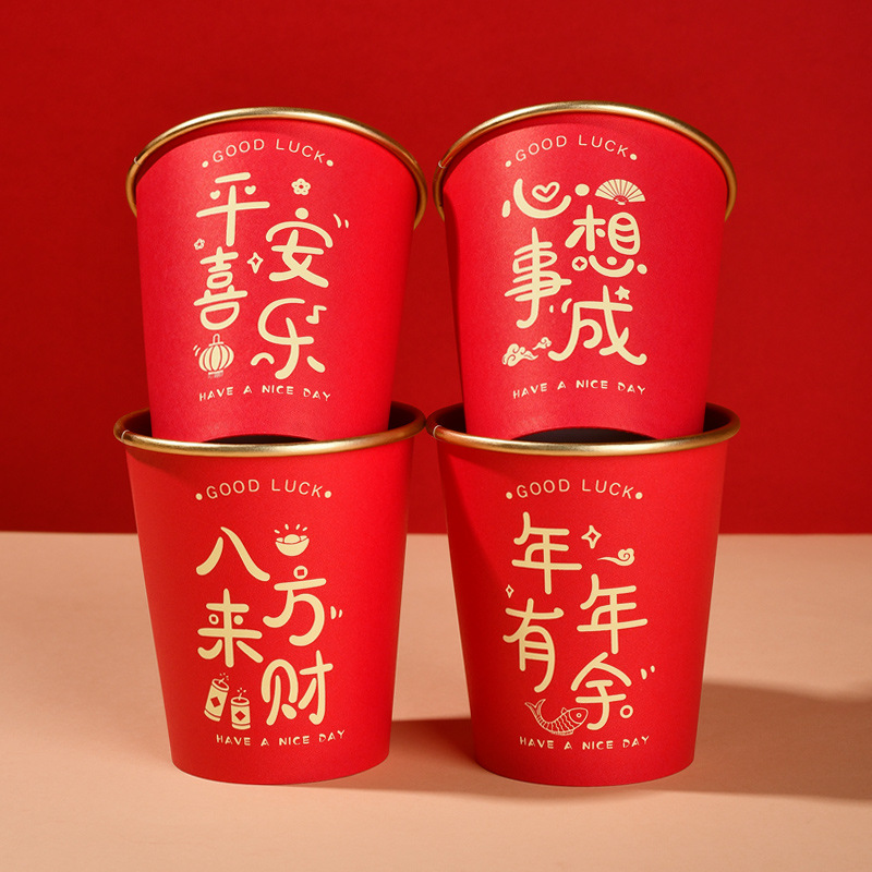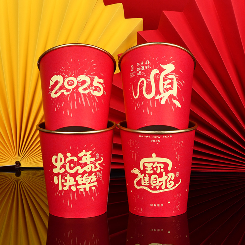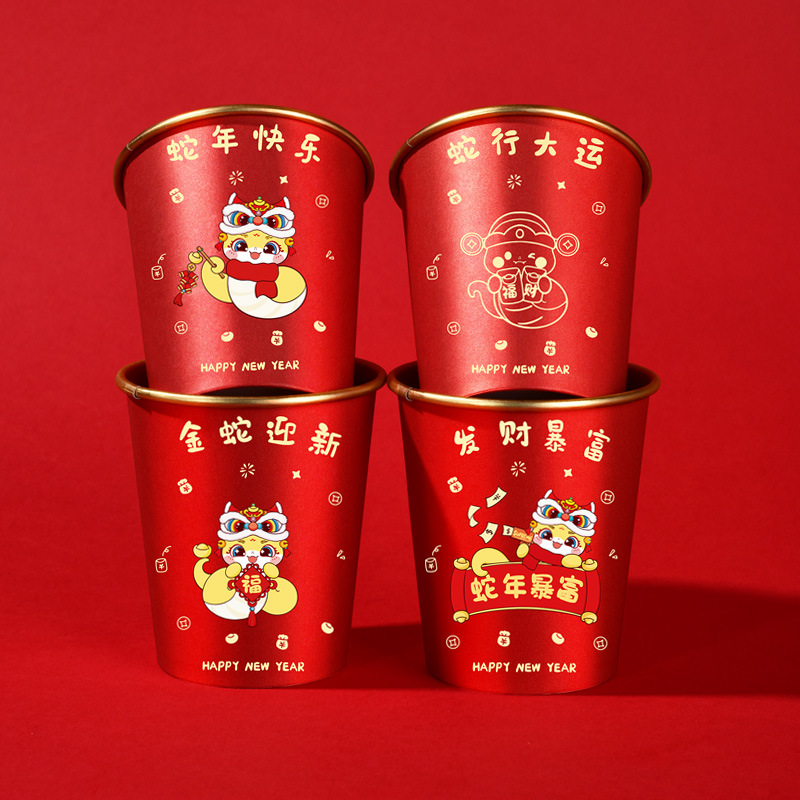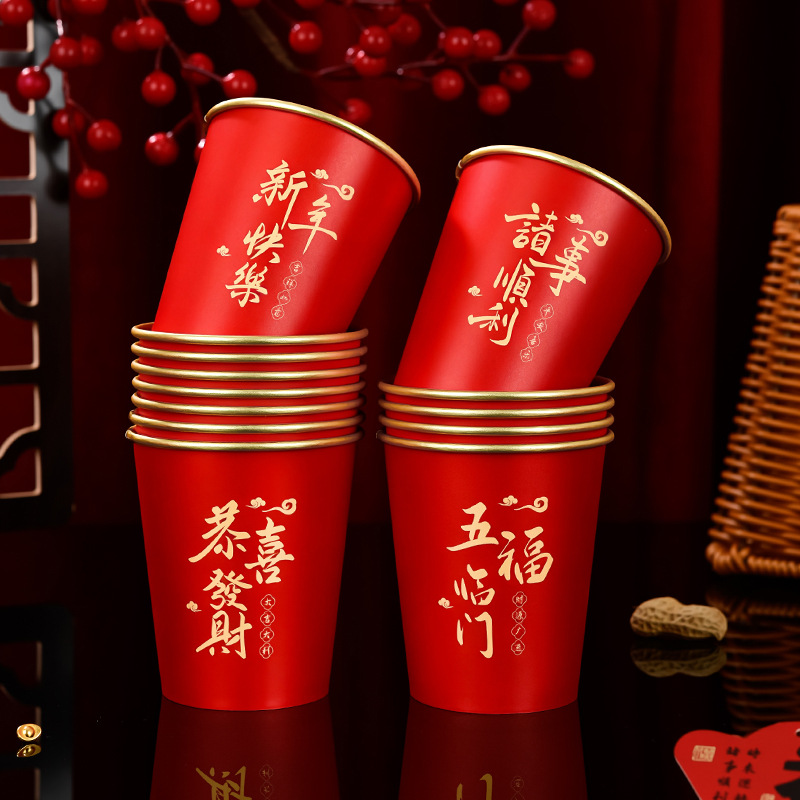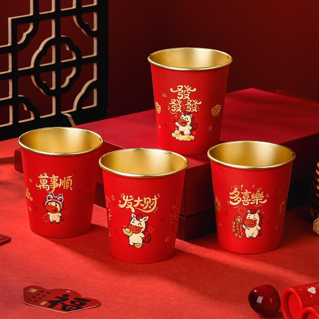 2026马年纸杯一次性杯子加厚防烫新年贺岁高档金箔水杯春节年货杯