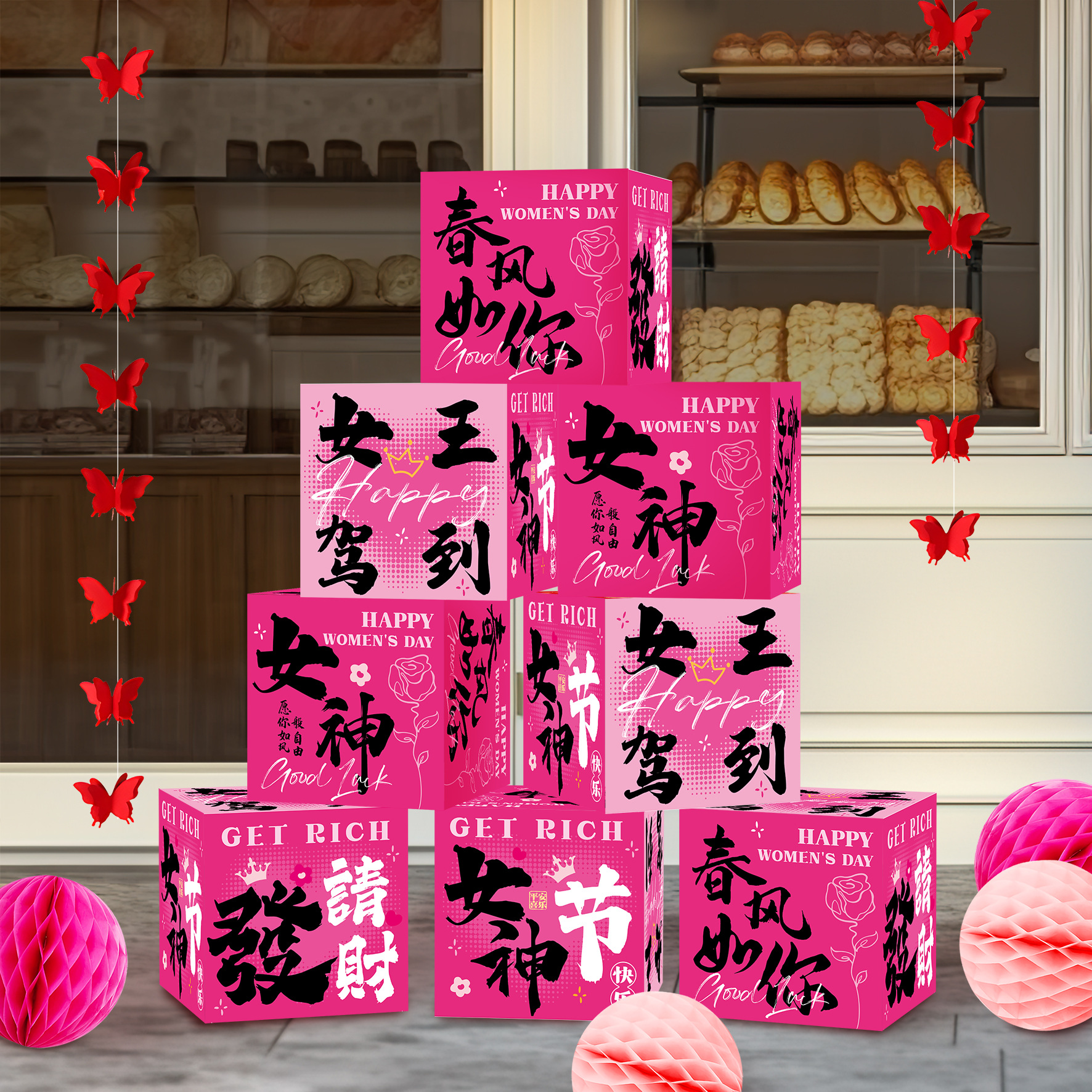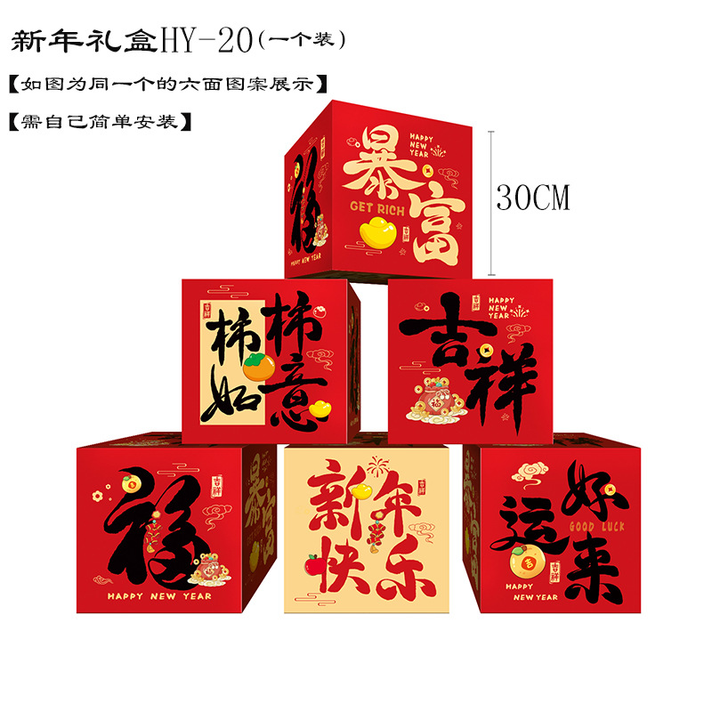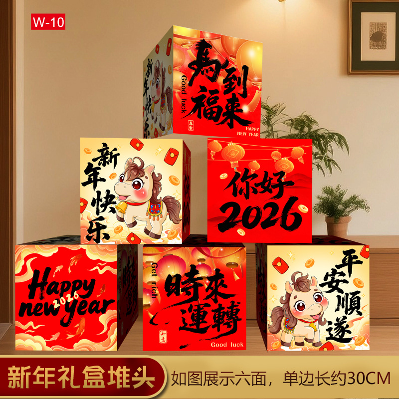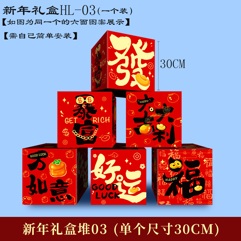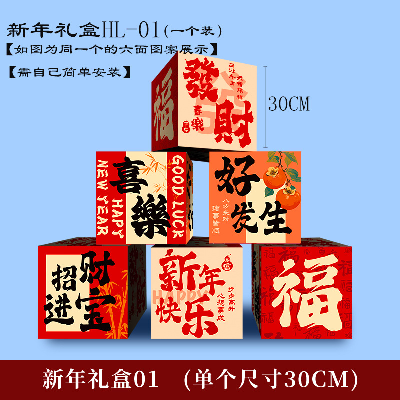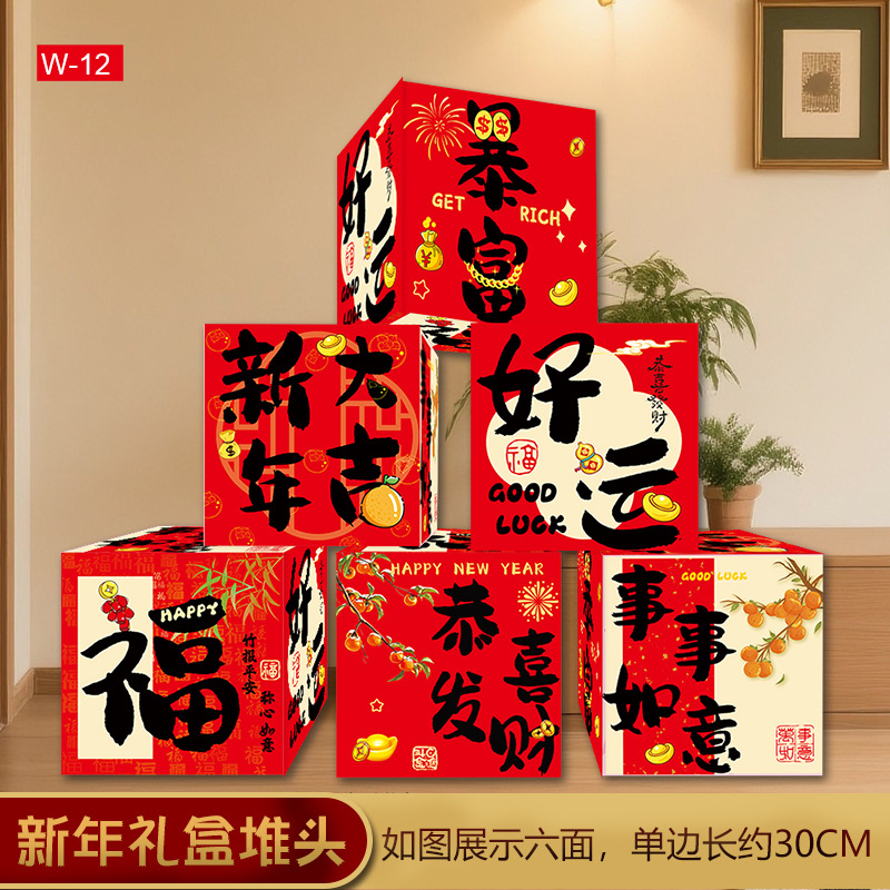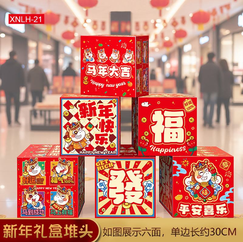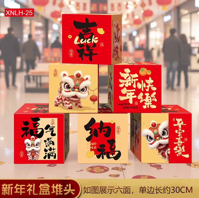 2026新年春节装饰堆头礼盒摆件盒子商场大厅节日氛围场景布置座炮