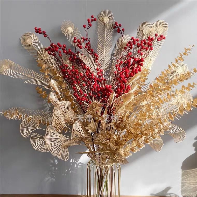 【金色系列】塑料叶材装饰福桶抱抱捅银杏扇叶木绣球尤加利春节日