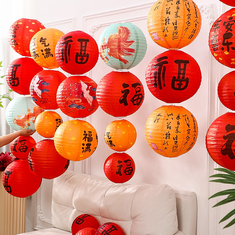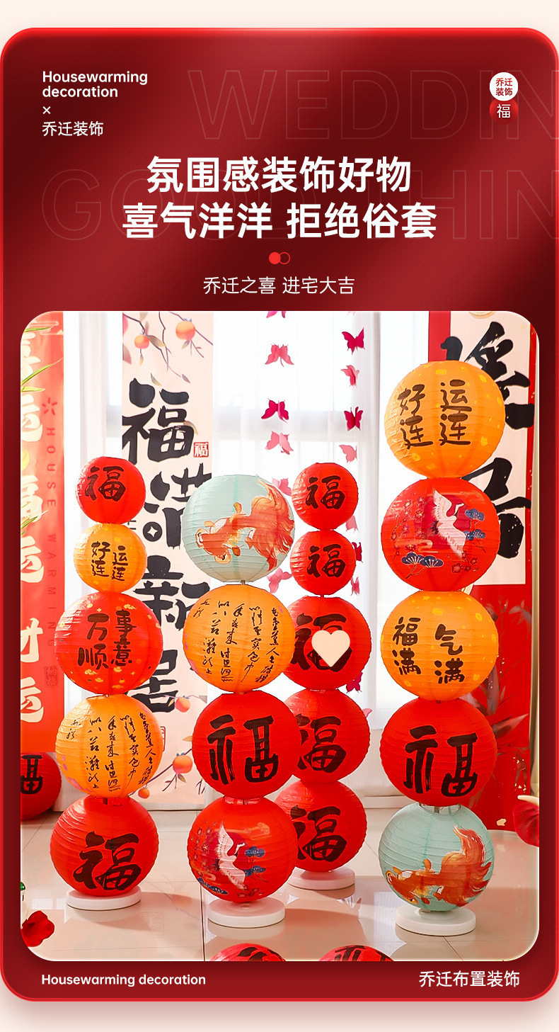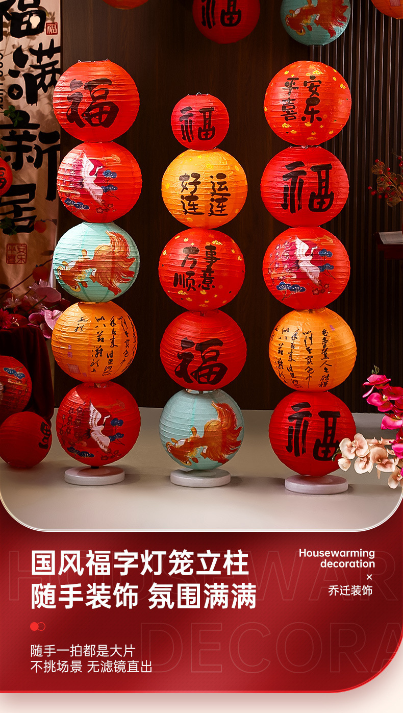 灯笼乔迁过年装饰2025新款古风摆件福字挂饰新年场景布置元旦立柱