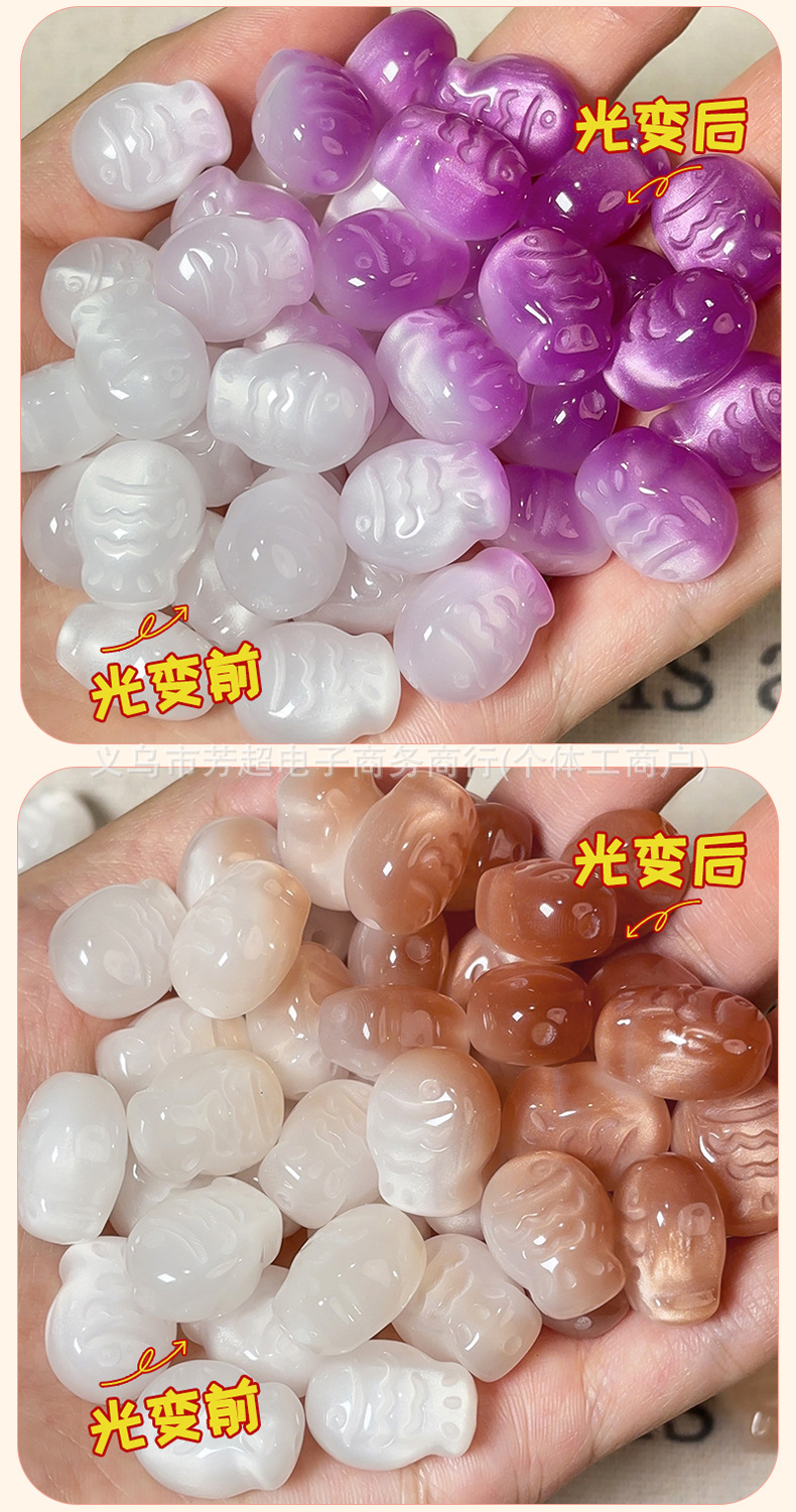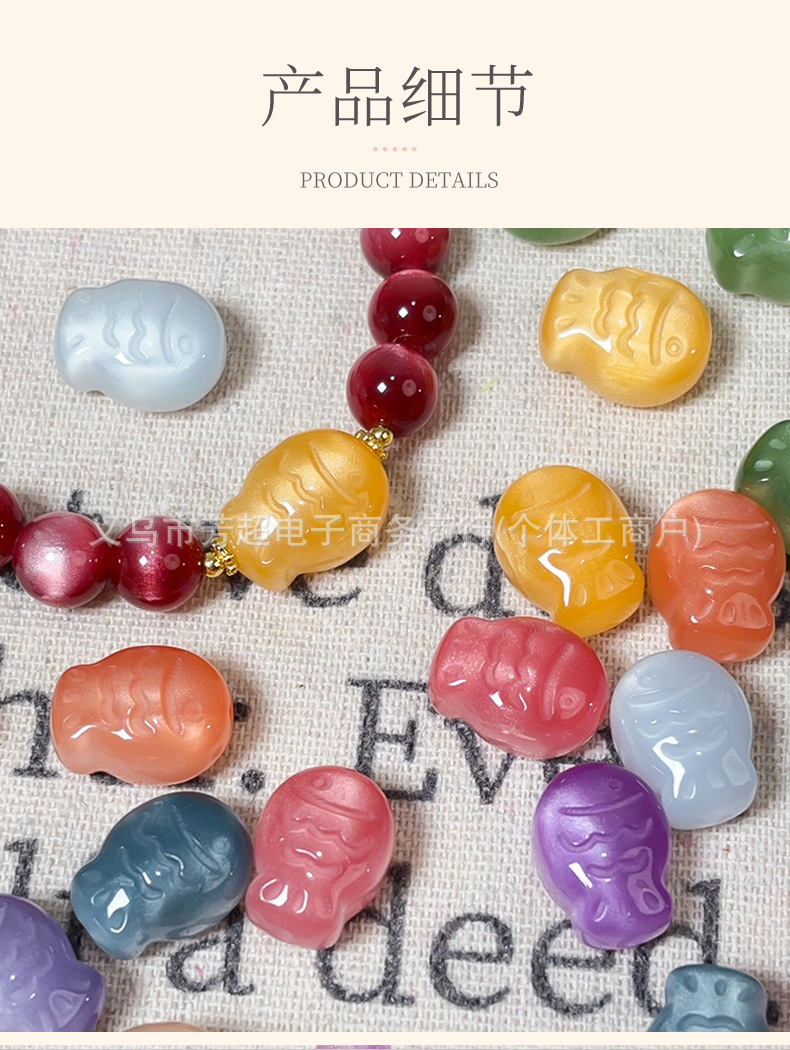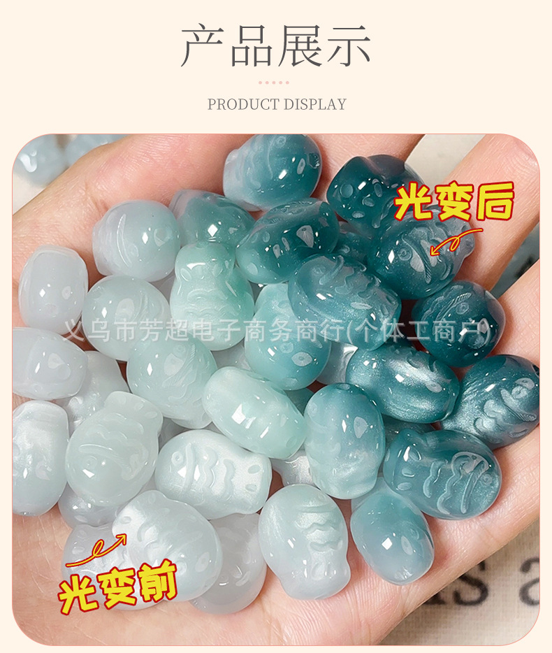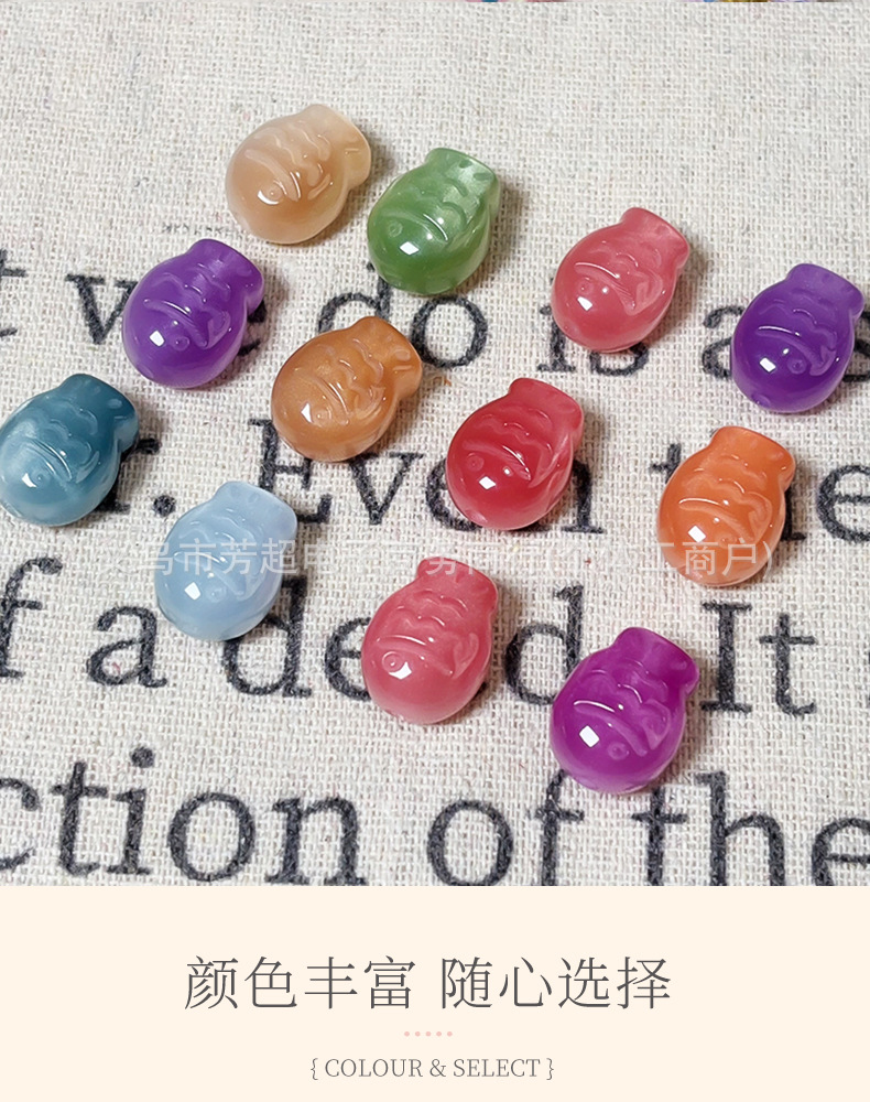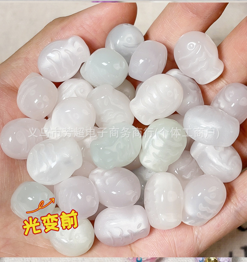 树脂精雕光变小胖鱼彩虹色直孔珠子手工diy串珠手串饰品配件散珠