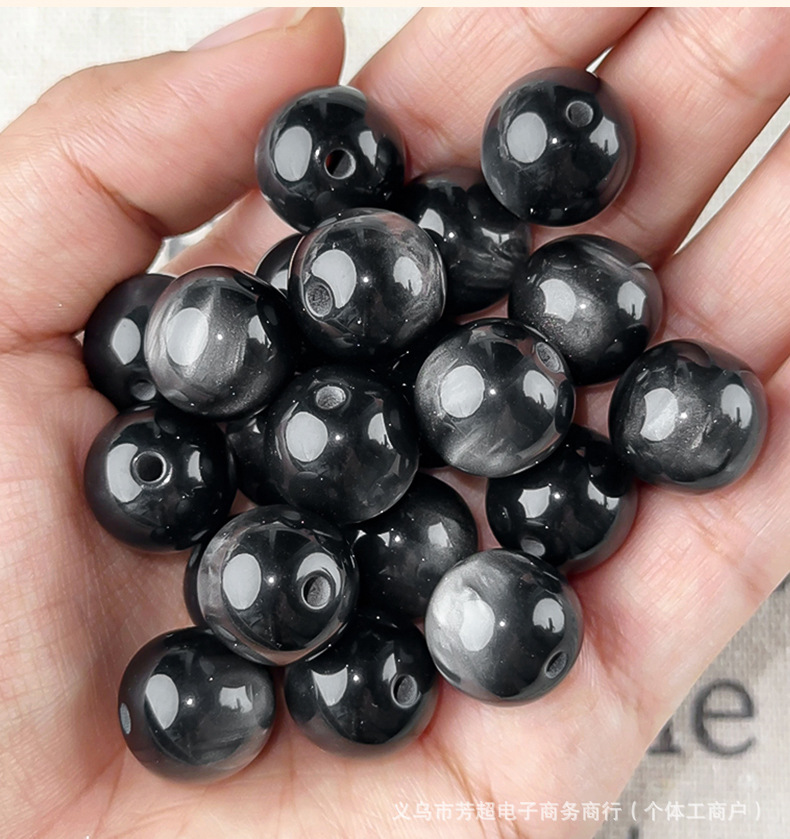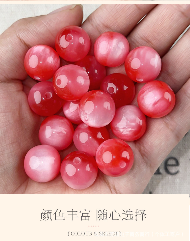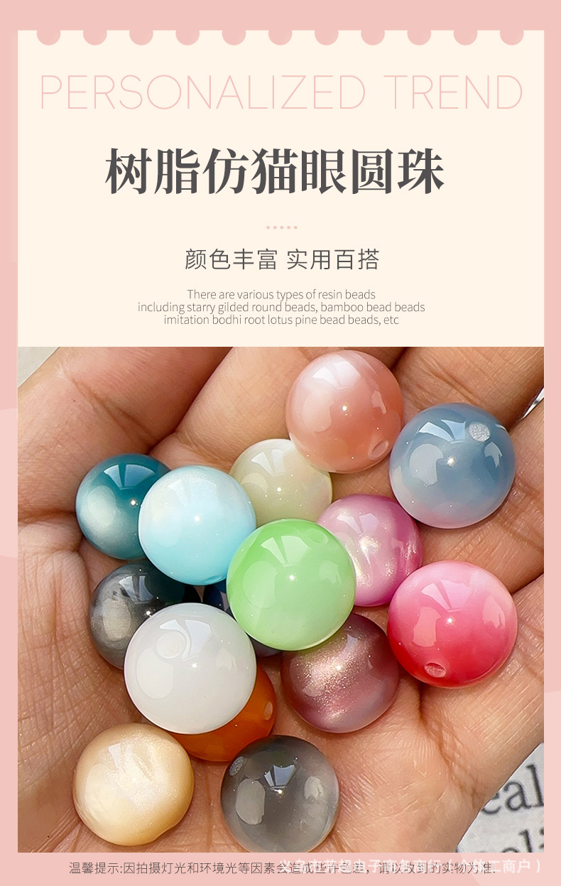 彩色16mm树脂仿猫眼圆珠散珠可批发 diy手作通孔串珠材料饰品配件