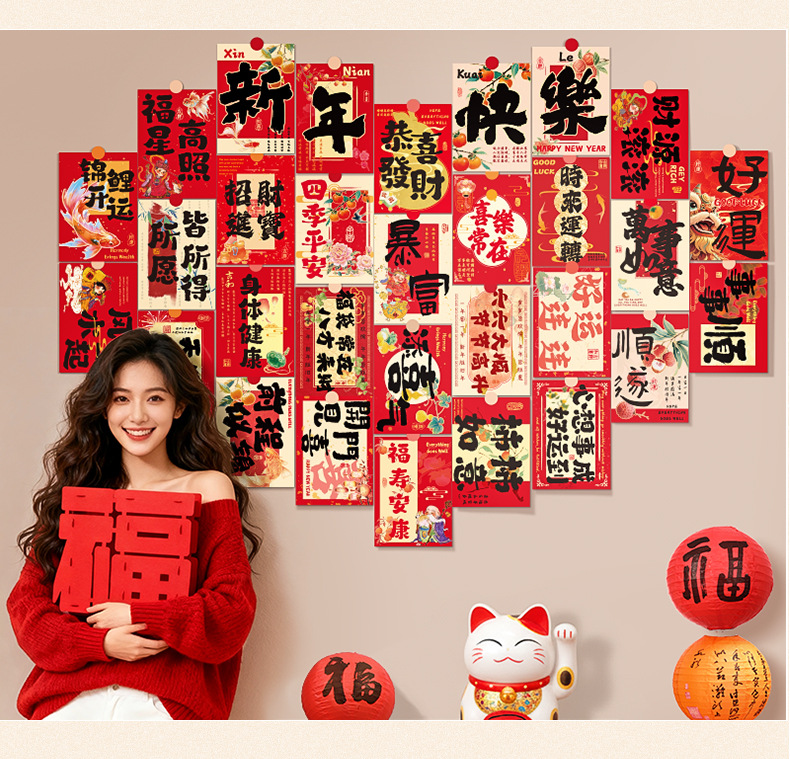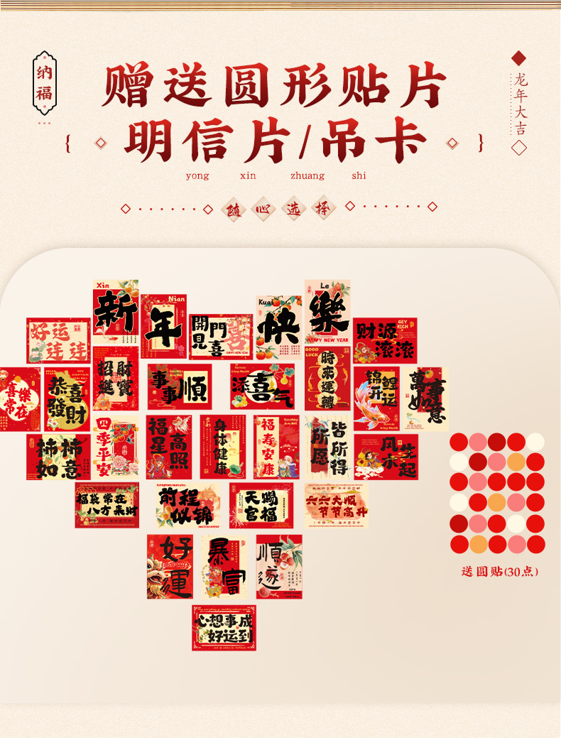 2026新年春节装饰明信片氛围场景布置创意新年快乐明信片贴纸批货