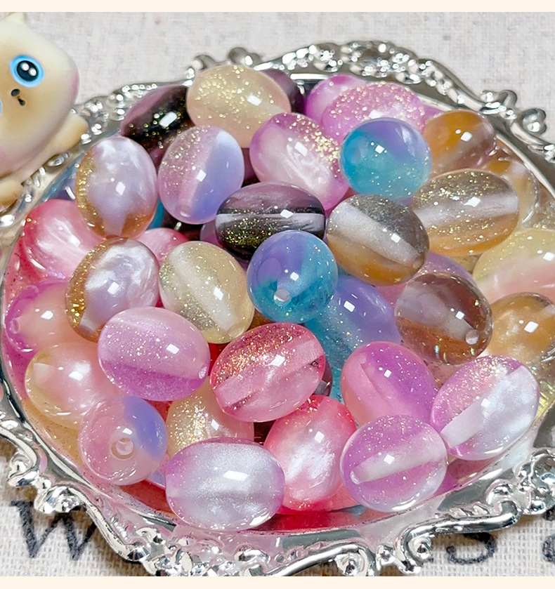 树脂细闪渐变异形月亮串珠散珠衣襟压襟车挂diy饰品配件手机链珠