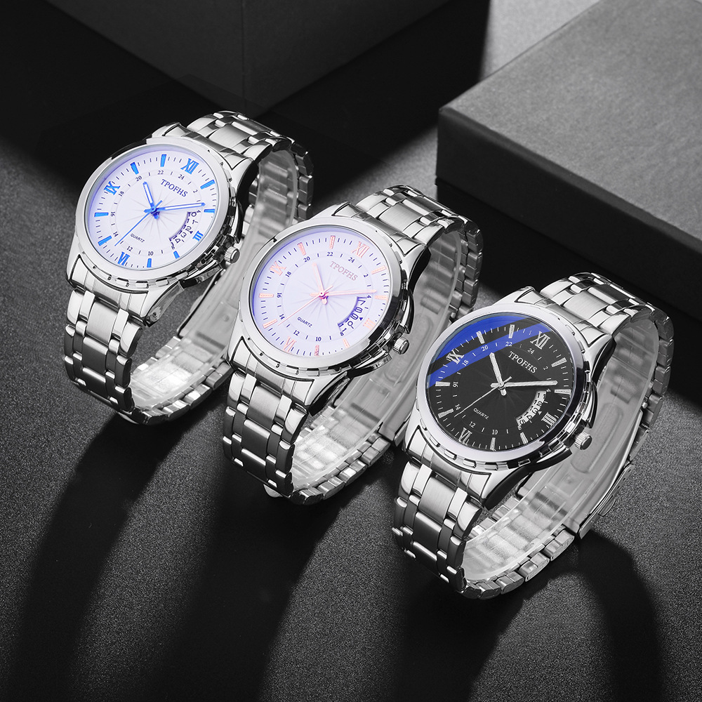 品牌新款现货watch表批发防水蓝光不锈钢带男士日历手表男高级感