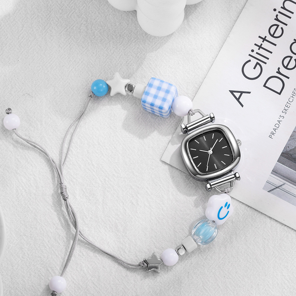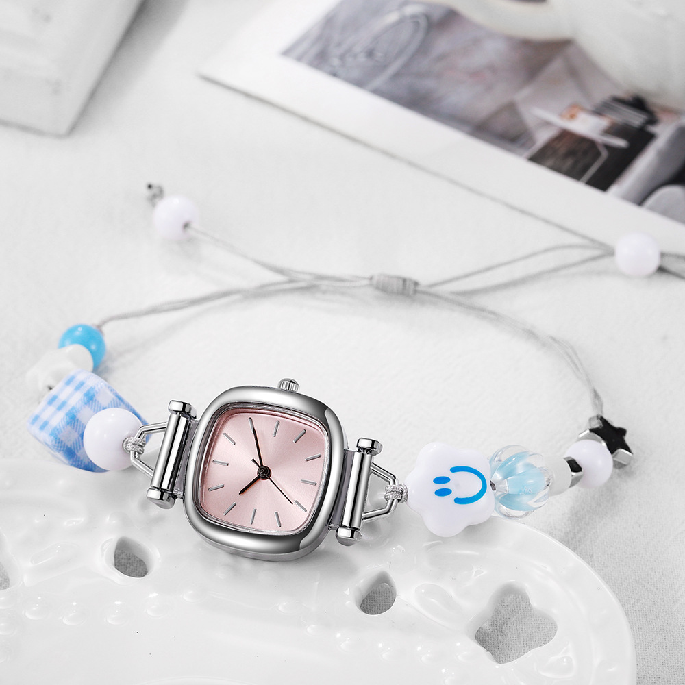 陶瓷编织串珠简约手表女批发学生抽拉带文艺风手绳学生表女士手表