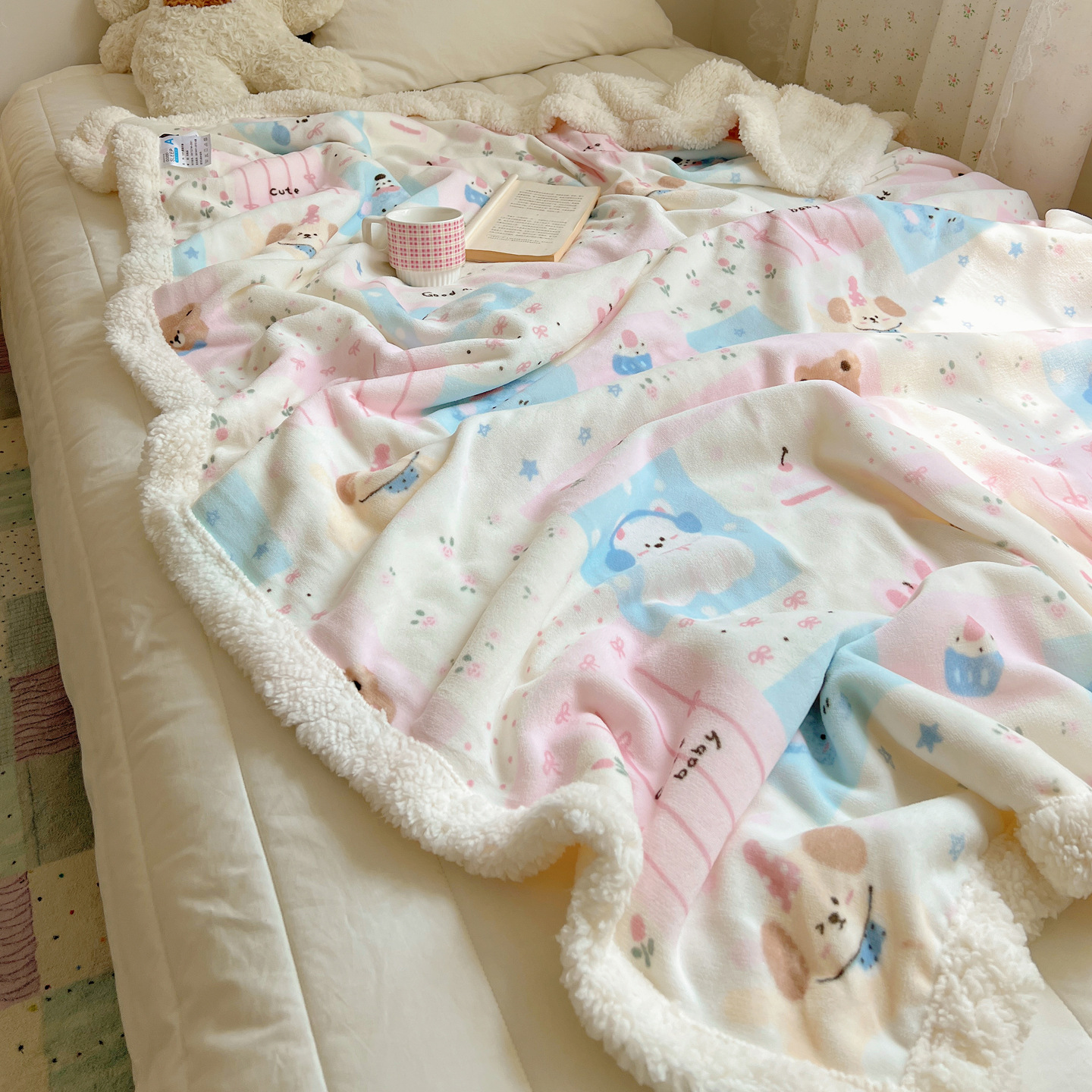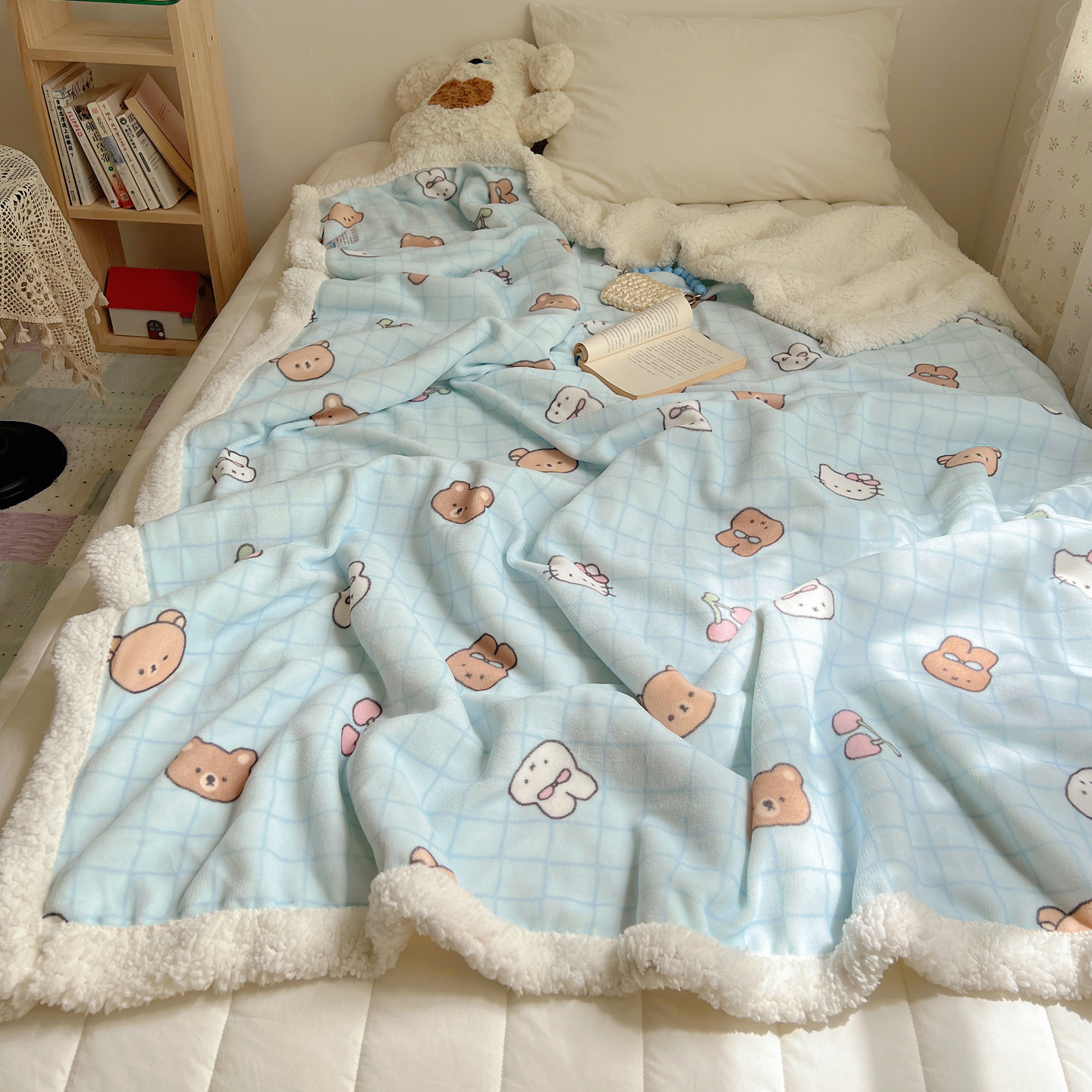 卡通可爱猫咪羊羔绒加厚休闲毯子牛奶绒毛毯珊瑚绒盖毯少女午睡毯