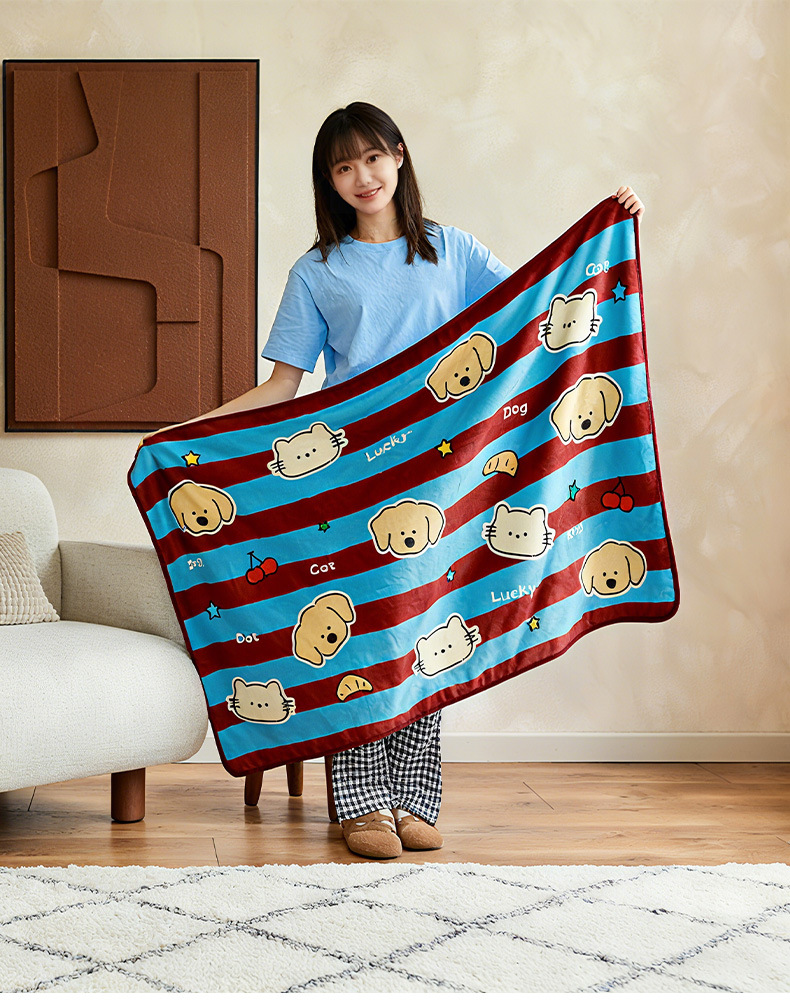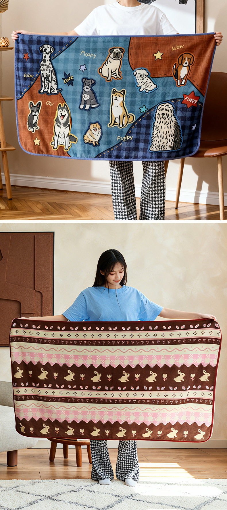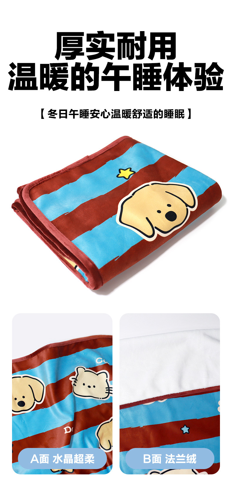 超柔法兰绒冬季加厚双层印花毛毯定制办公室沙发午睡毛毯空调盖毯