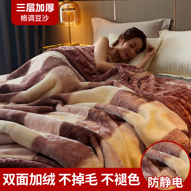 拉舍尔毛毯冬季加厚加绒午睡盖毯子床单人宿舍学生珊瑚法兰绒被子