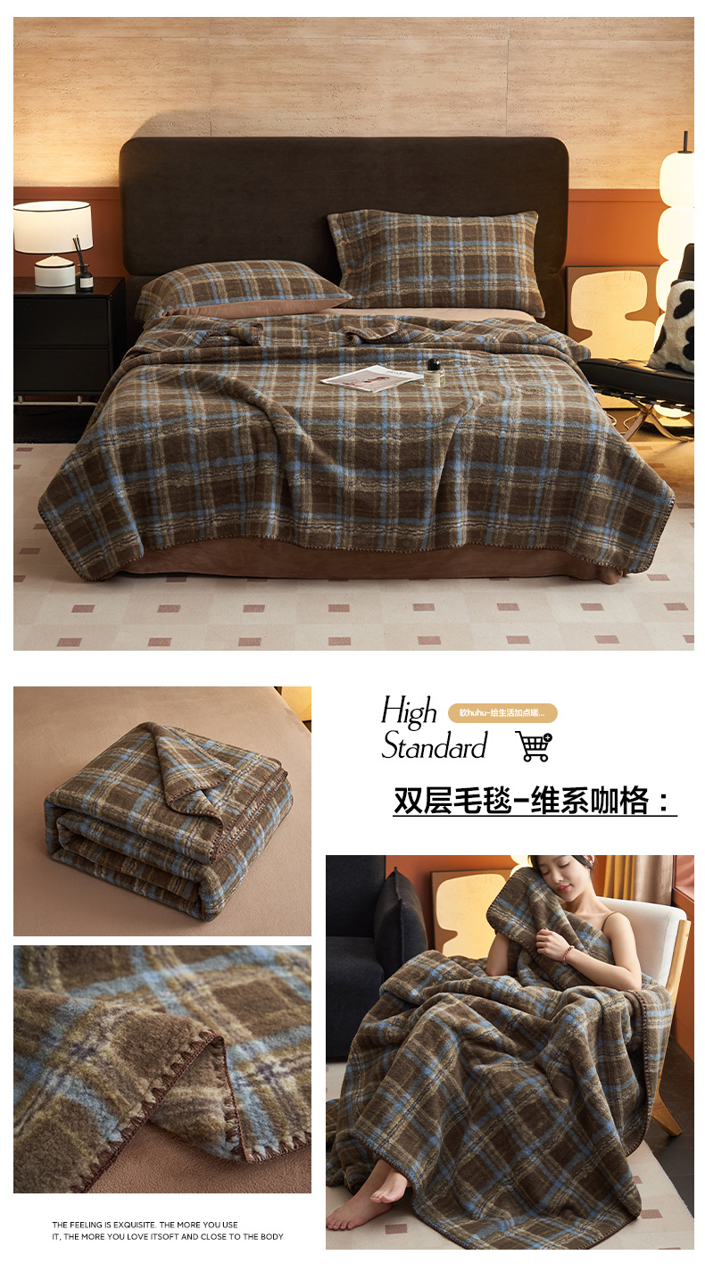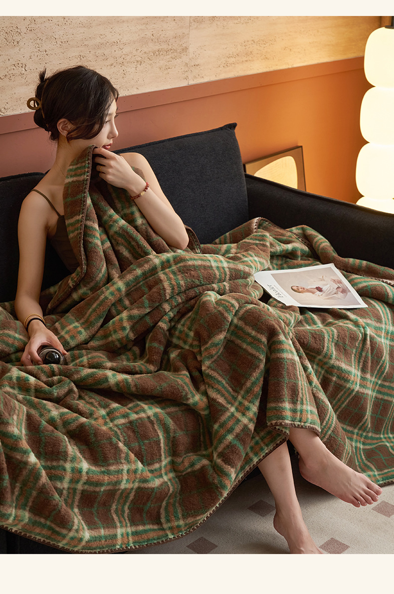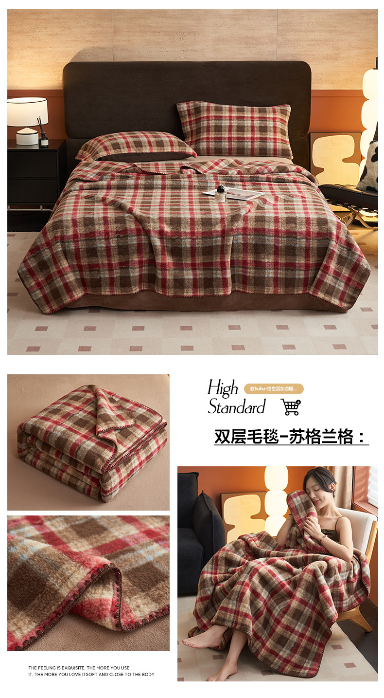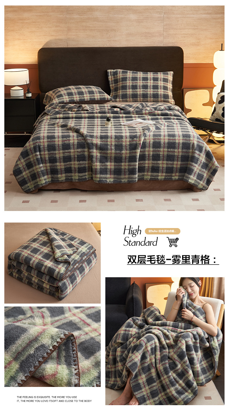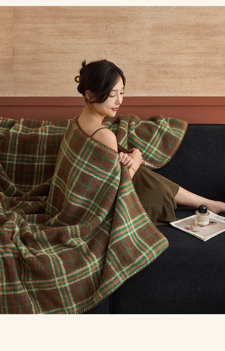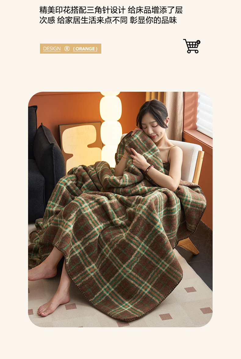 双层仿羊绒牛奶绒毛毯办公室午睡小毯子沙发空调盖毯冬季加厚保暖