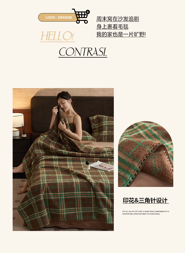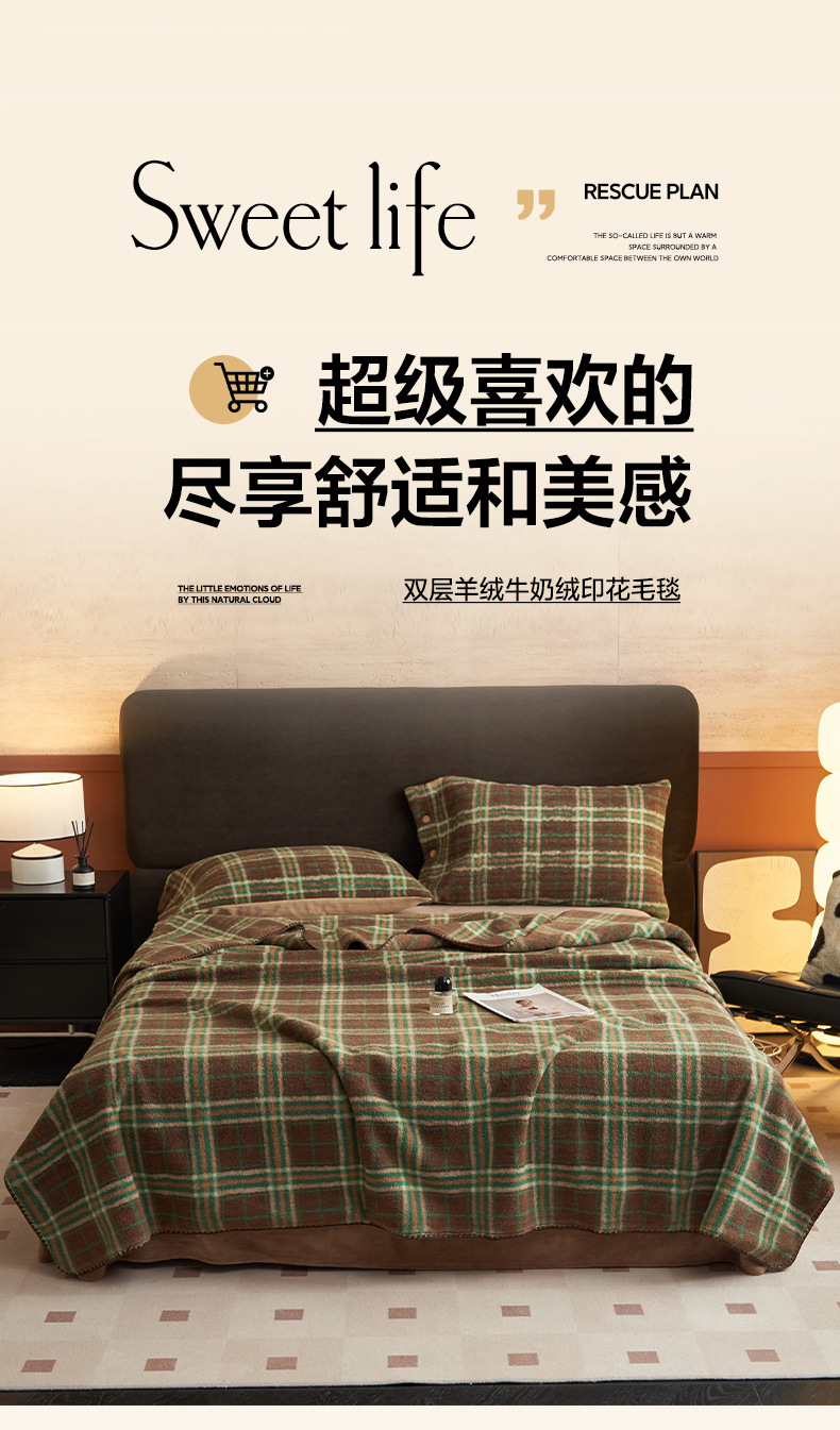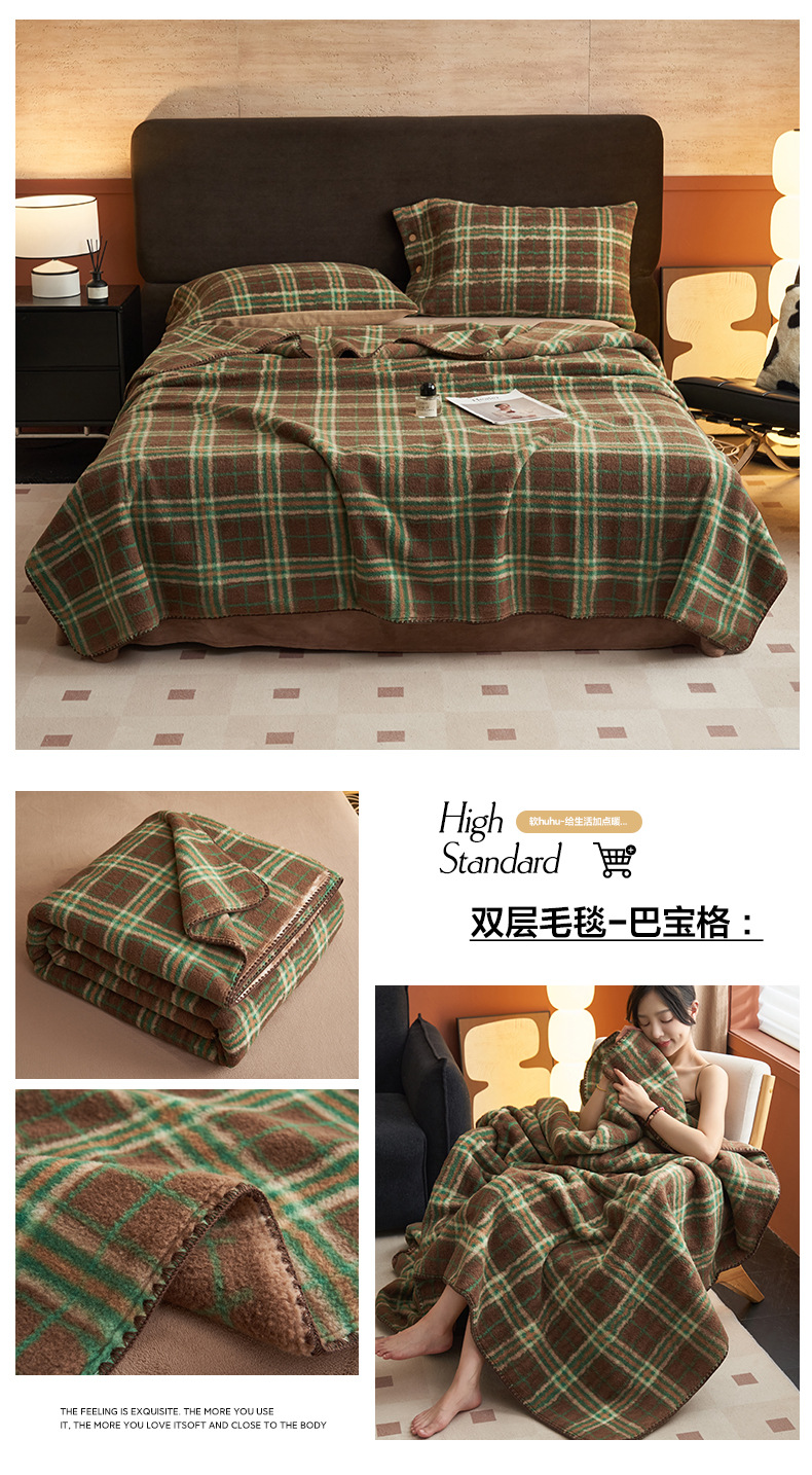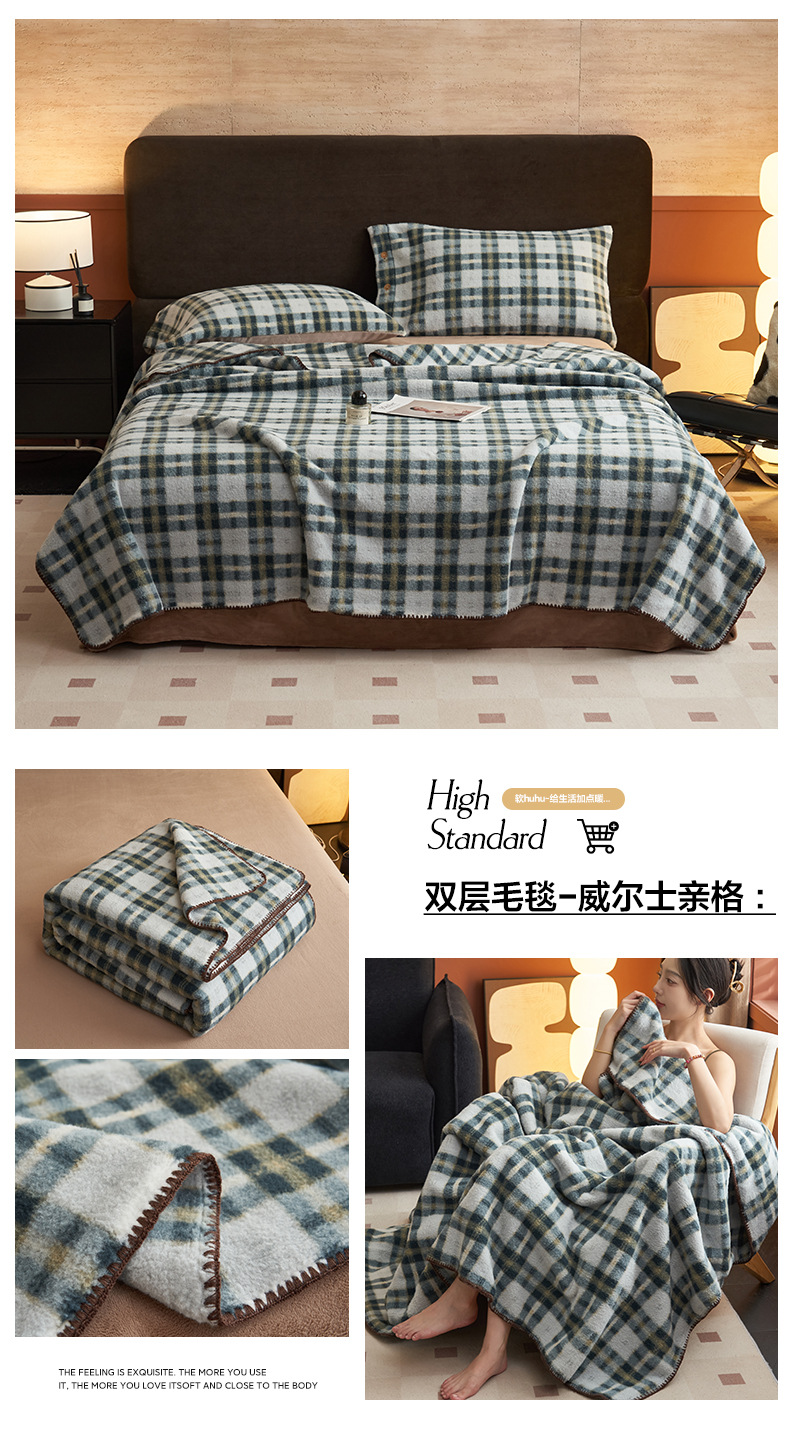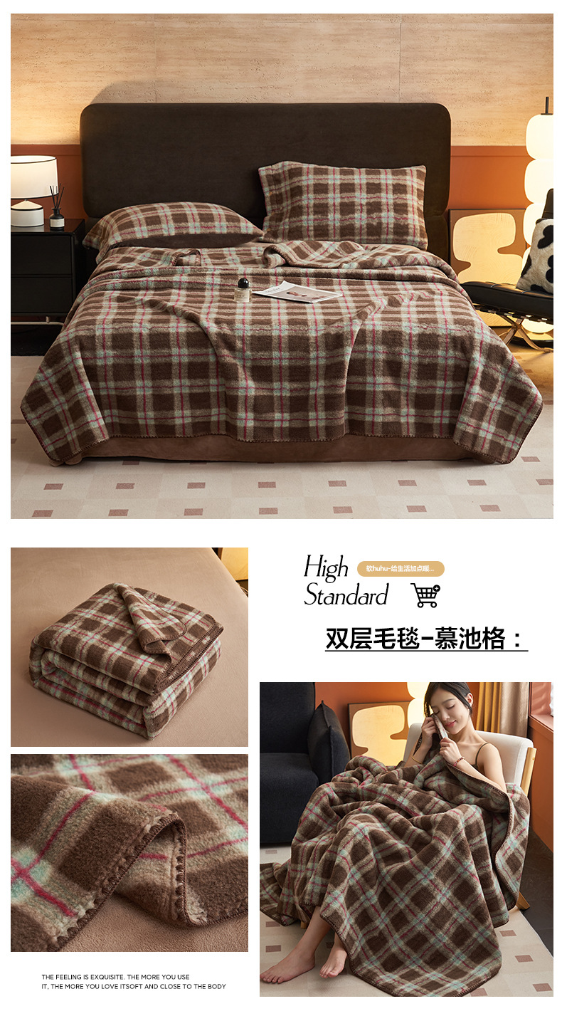 双层仿羊绒牛奶绒毛毯办公室午睡小毯子沙发空调盖毯冬季加厚保暖