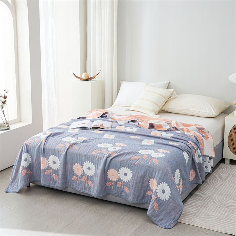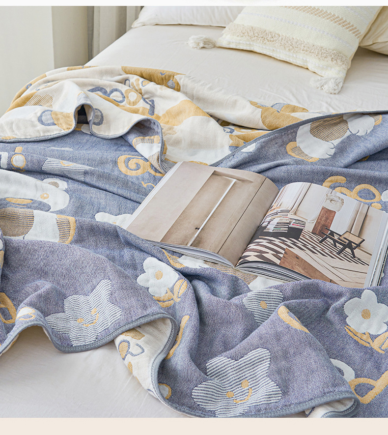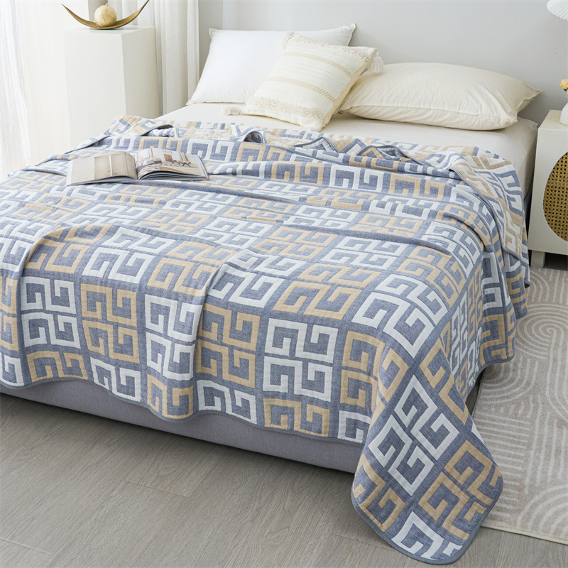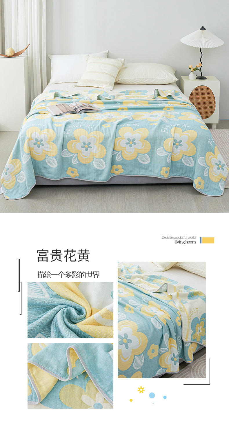 六层水洗色织纱布毯 毛巾被子盖毯纯棉棉纱盖被儿童床单成人毯子