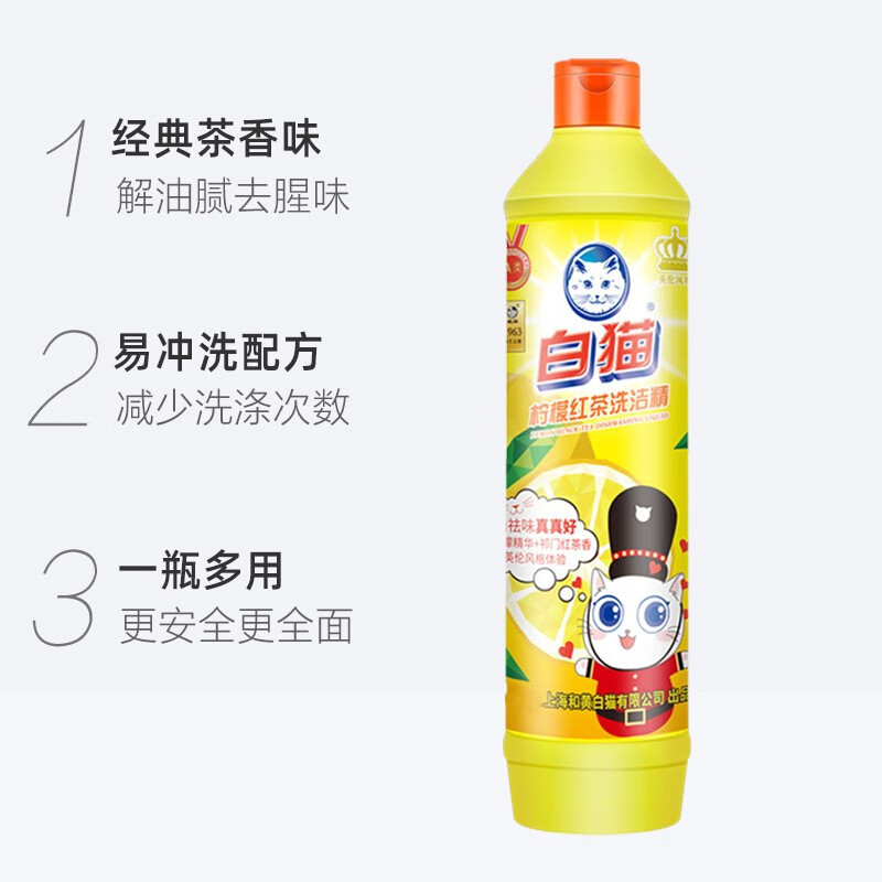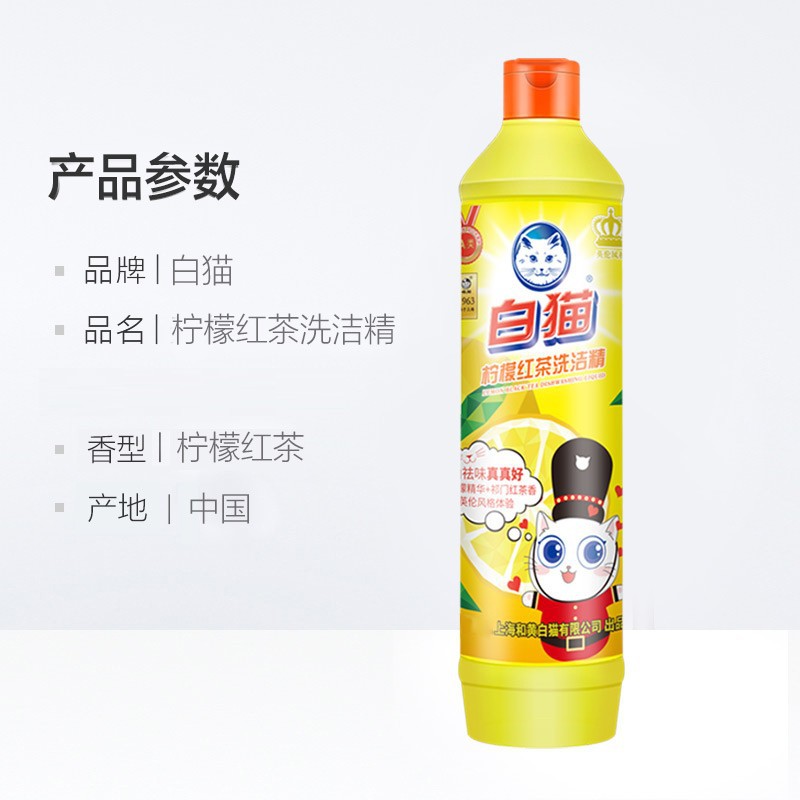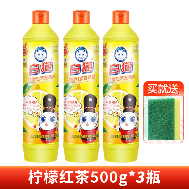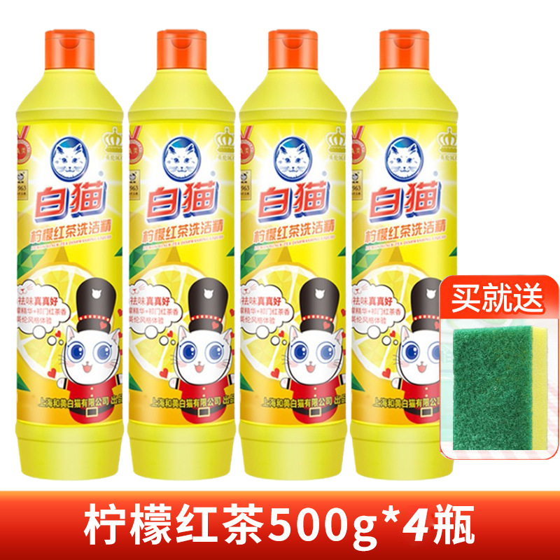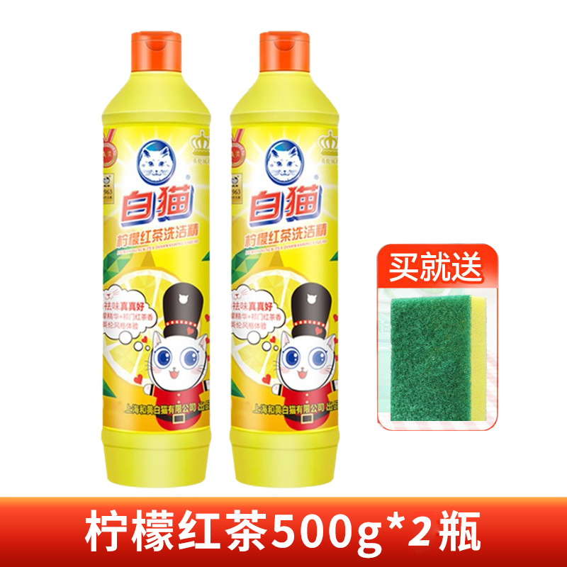 白猫柠檬红茶洗洁精500g30瓶1整箱家庭装家用实惠大桶洗涤剂正品