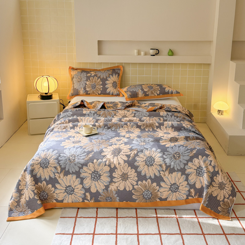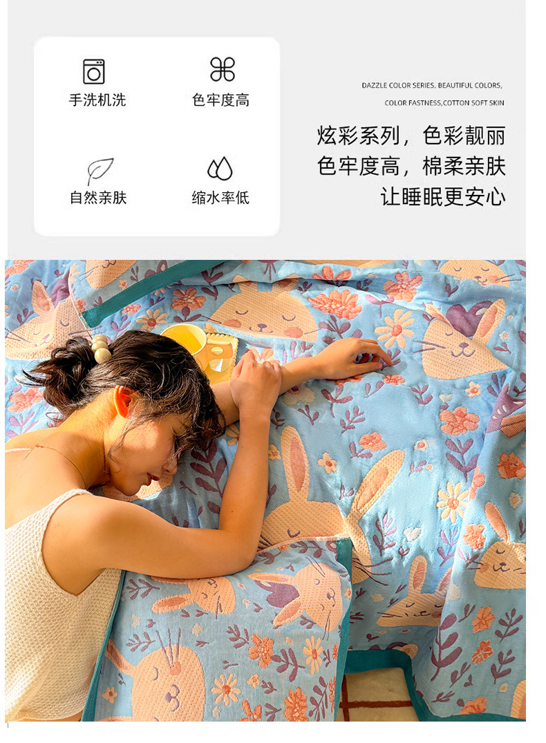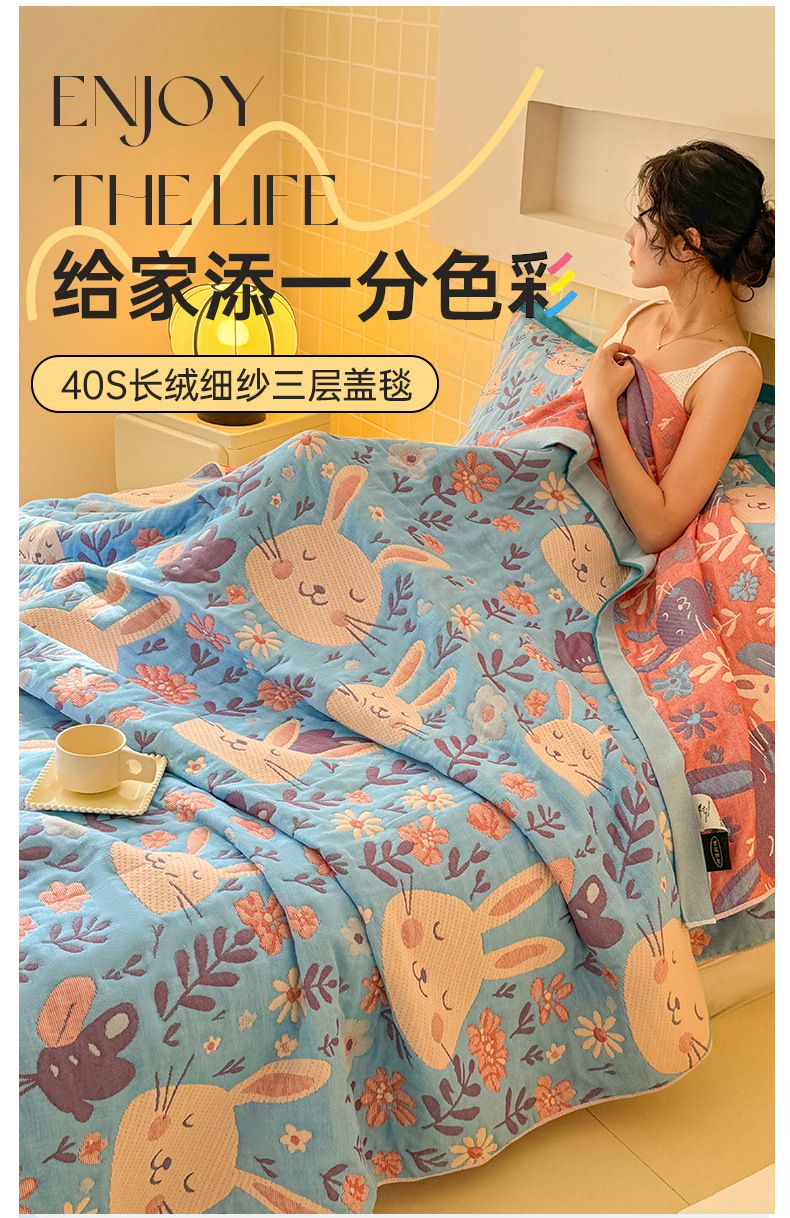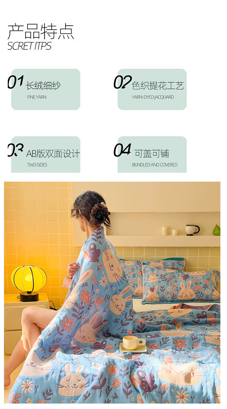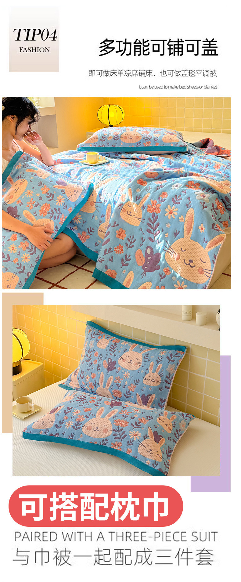 全棉三层纱布毛巾被三件套盖毯学生宿舍空调毯子沙发午睡被毯透气