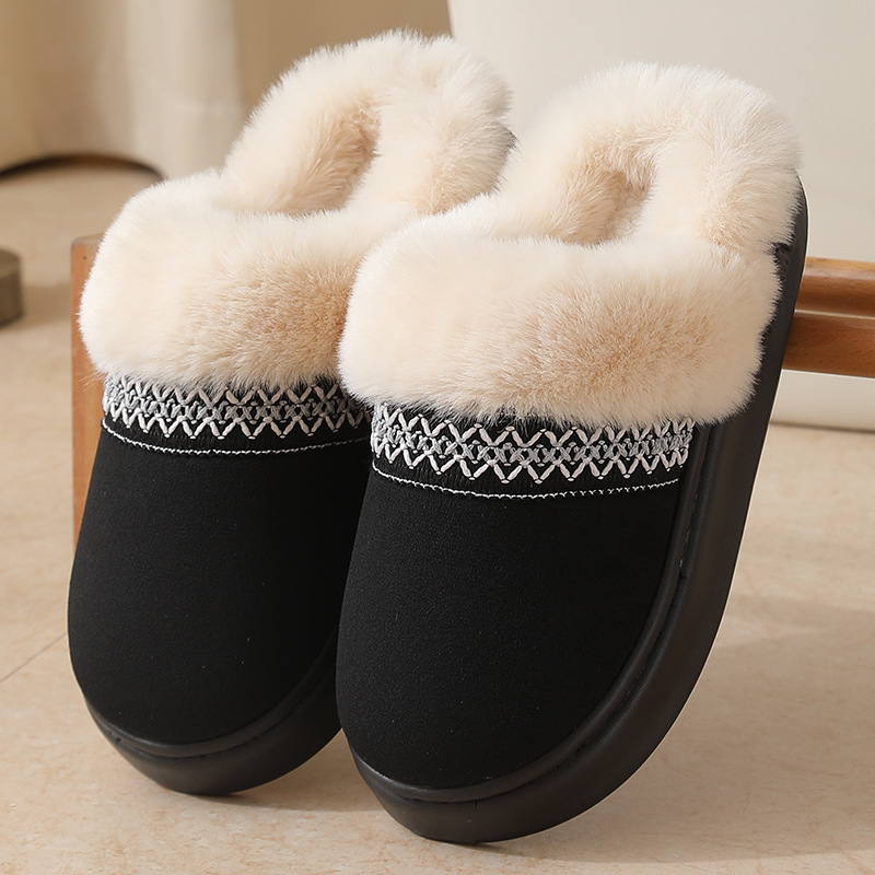 跨境新款秋冬季花边民族风时尚棉拖鞋男女情侣款室内外保暖棉拖鞋