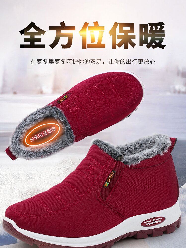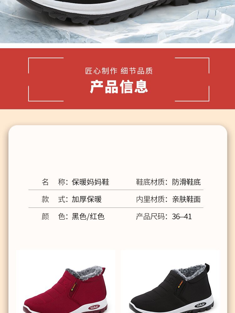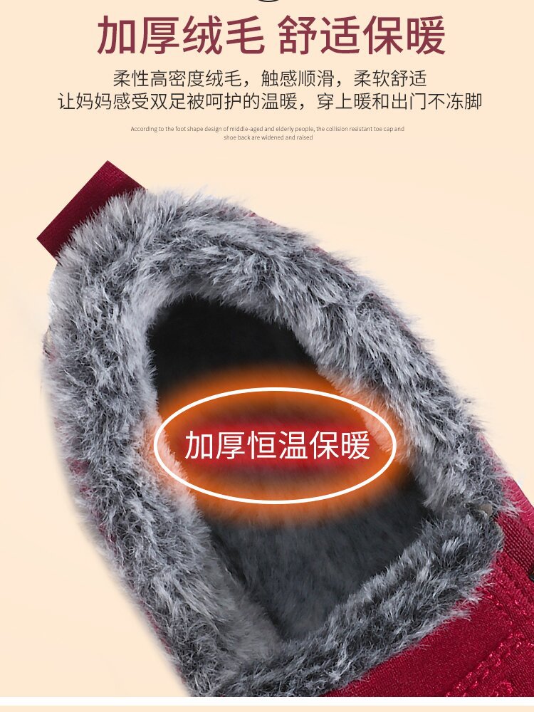 冬季加绒加厚棉鞋舒适保暖中老年妈妈鞋厚底高帮雪地棉大棉鞋子女