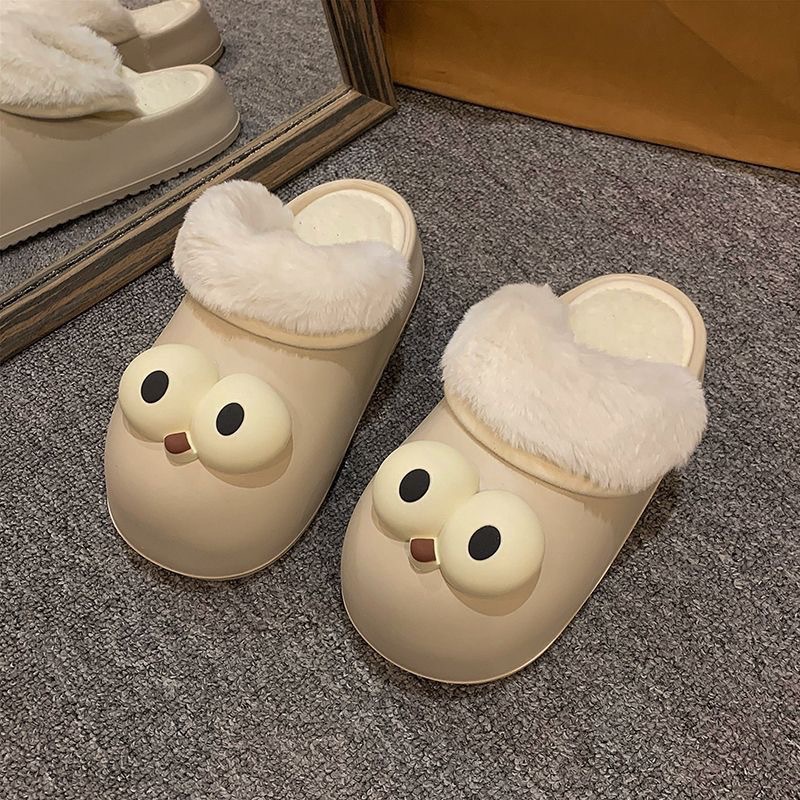 可拆卸冬季保暖防风纯色简约可拆洗厚底包头外穿居家加绒棉拖批发